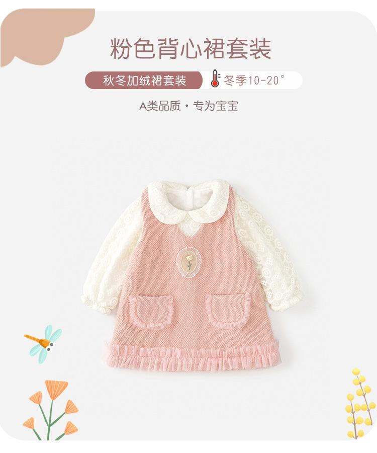 Traje para Niñas Ropa de Otoño e Invierno 2025 Nuevo Estilo Bebé Niña de 1 a 3 Años Camiseta Básica Vestido Chaleco Conjunto de Dos Piezas Ropa para Niña