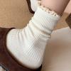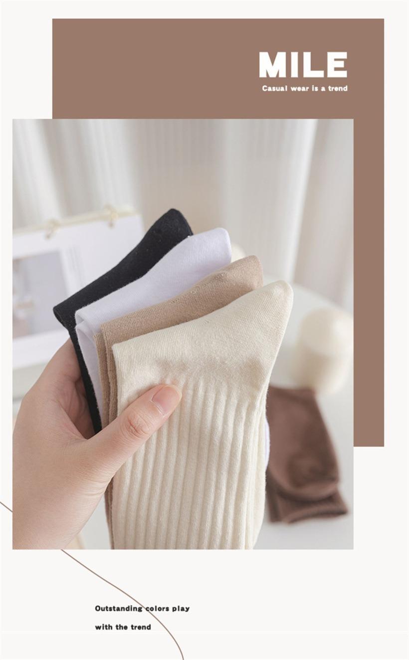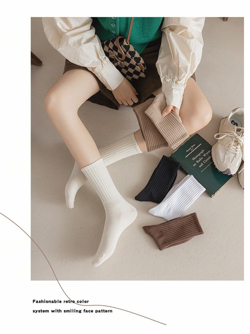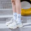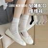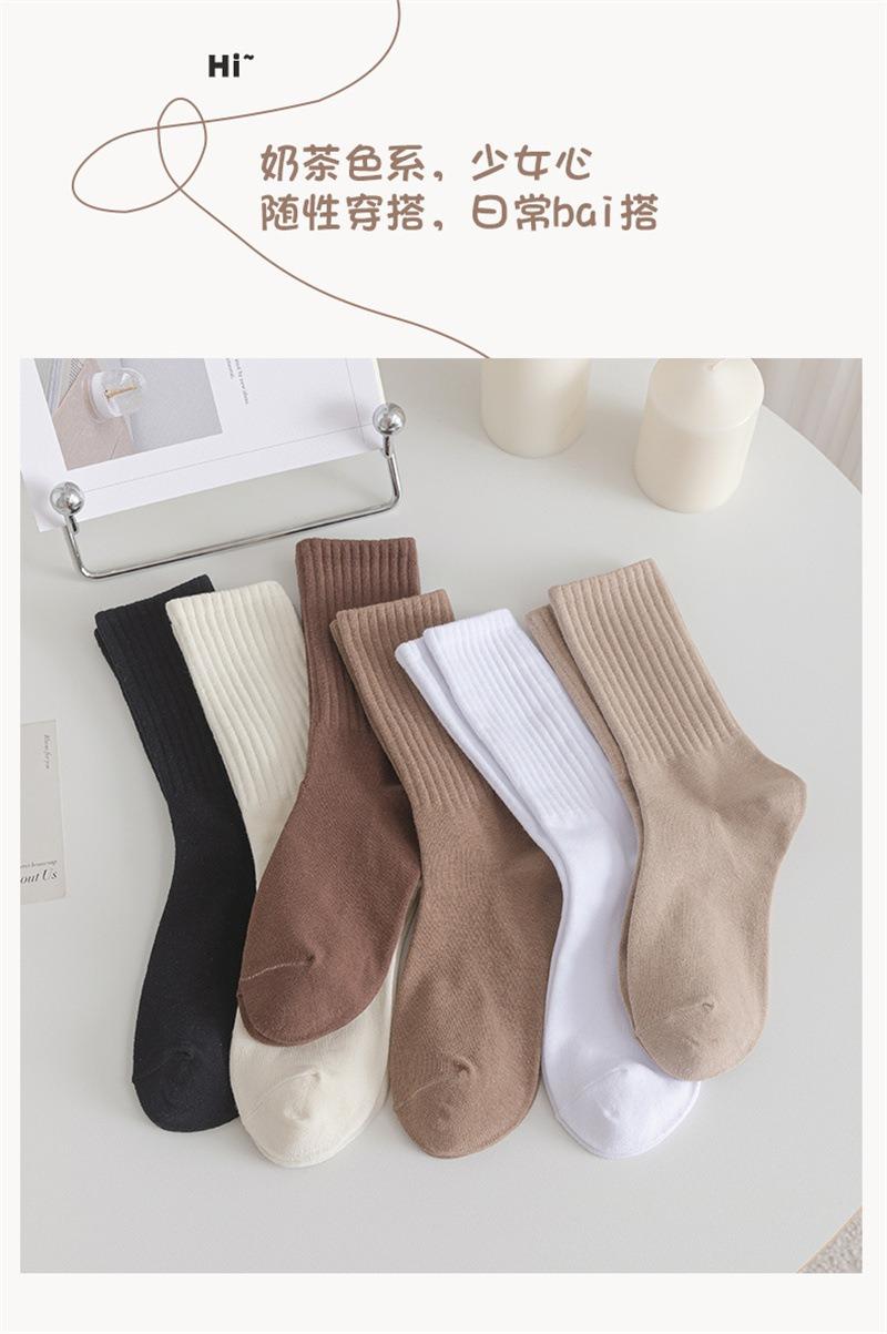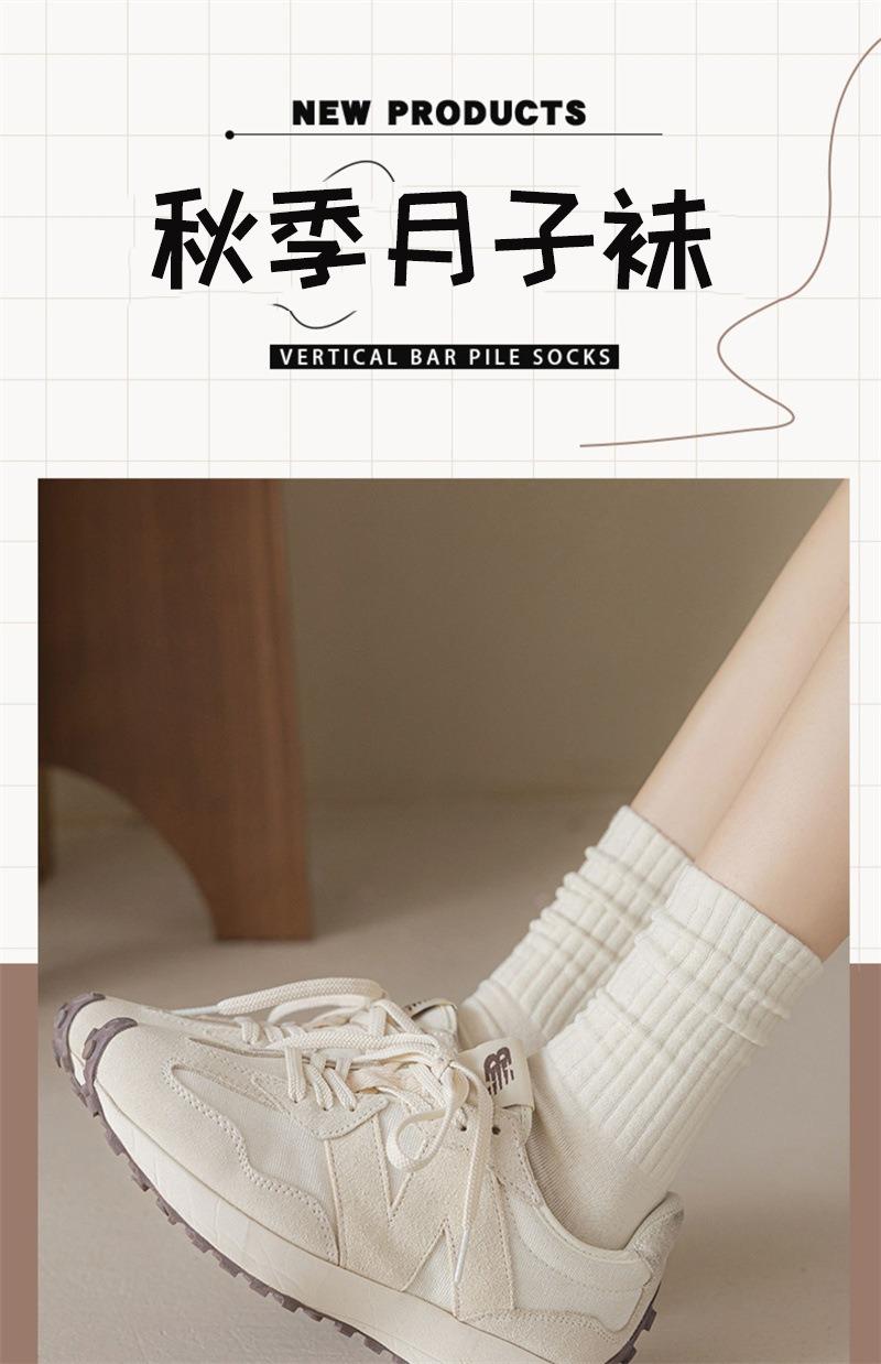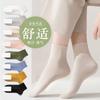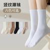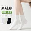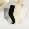 Calcetines deportivos blancos apilados Zhuji para estudiantes, calcetines lunares, transpirables, antifricción, de tubo medio, de color liso para niños.