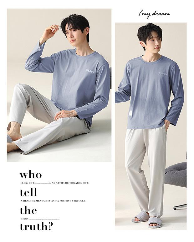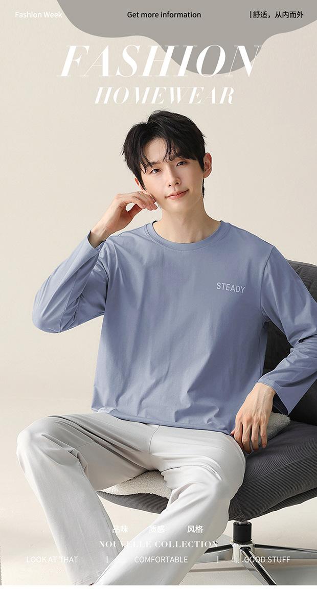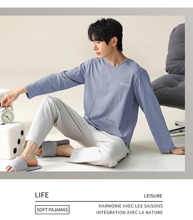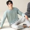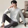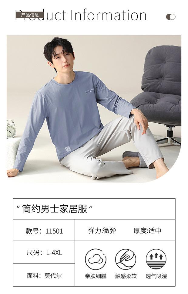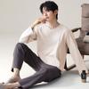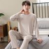 Pijamas de modal para hombre, primavera y otoño, manga larga, color liso, informal, talla grande, ropa de casa, traje, novedad 2025