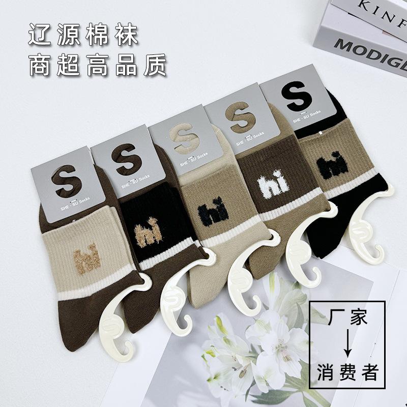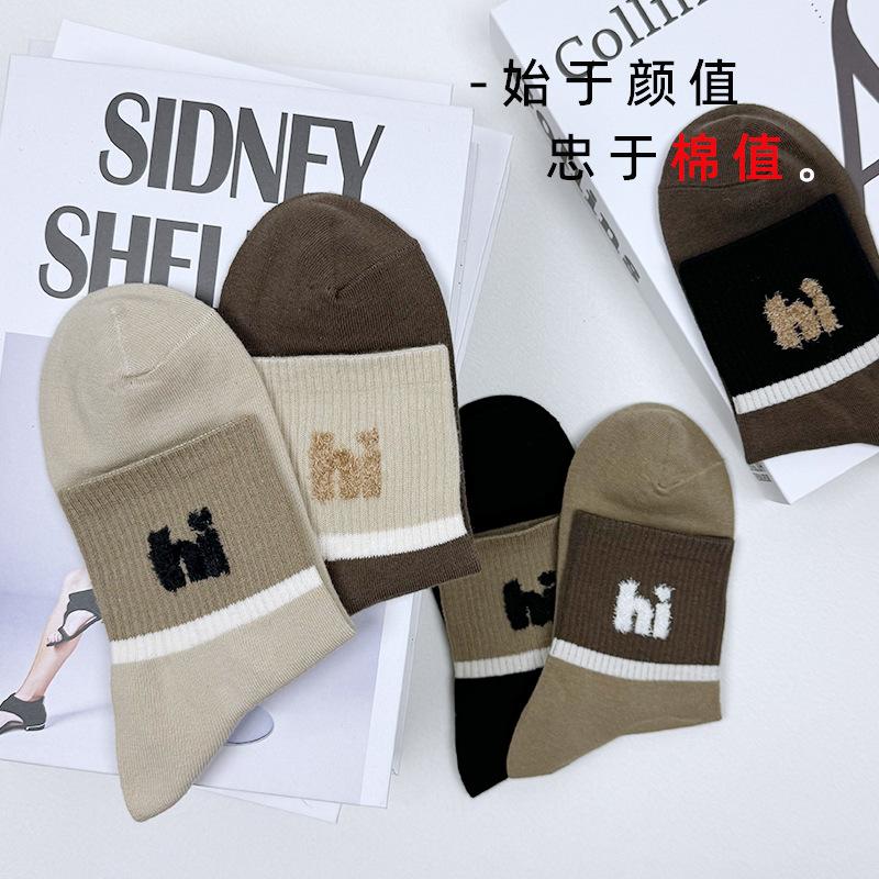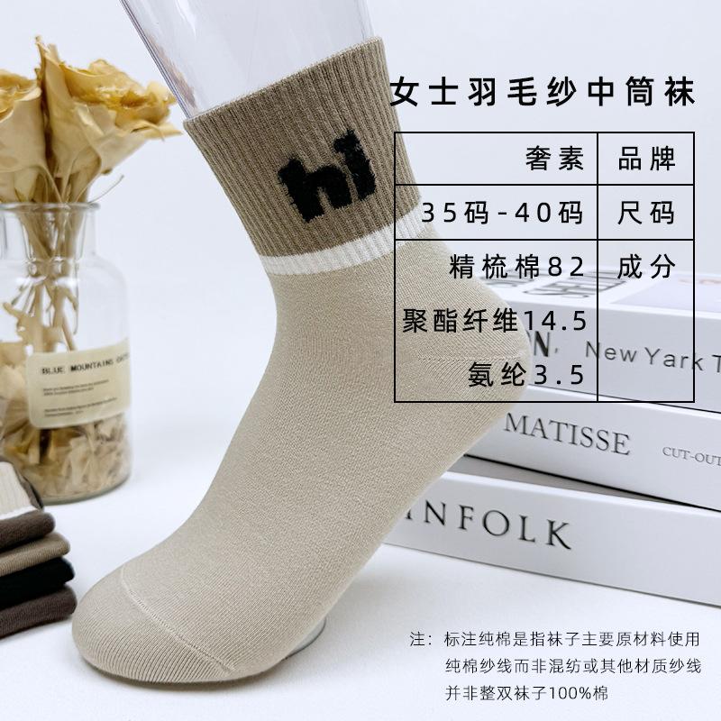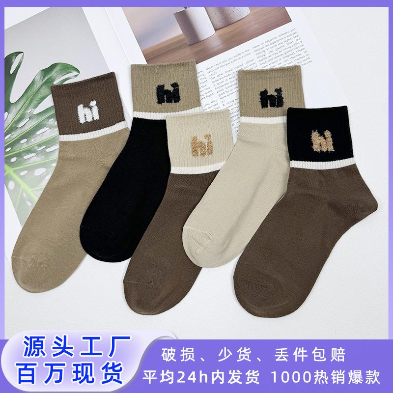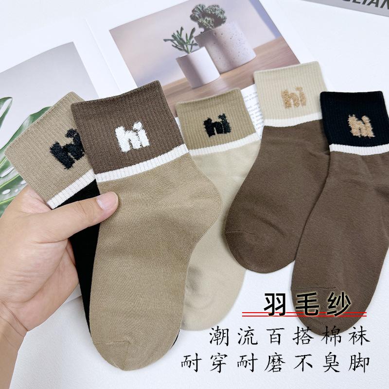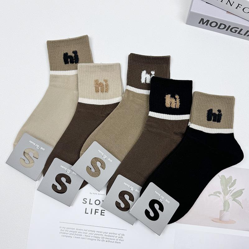 Calcetines de Media Caña de Verano para Mujer Ins Calcetines de Algodón de Moda Estilo Japonés con Bloques de Color Absorbentes del Sudor Transpirables Calcetines para Mujer Hilo de Pluma Color Café Versátil