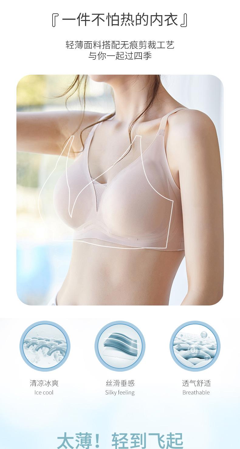 | Ropa interior fina de verano con copa fija sin costuras para mujer, camisola sin aros, chaleco de pecho grande, sujetador pequeño, transpirable y cómodo |