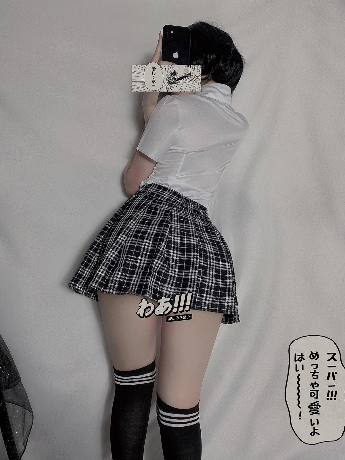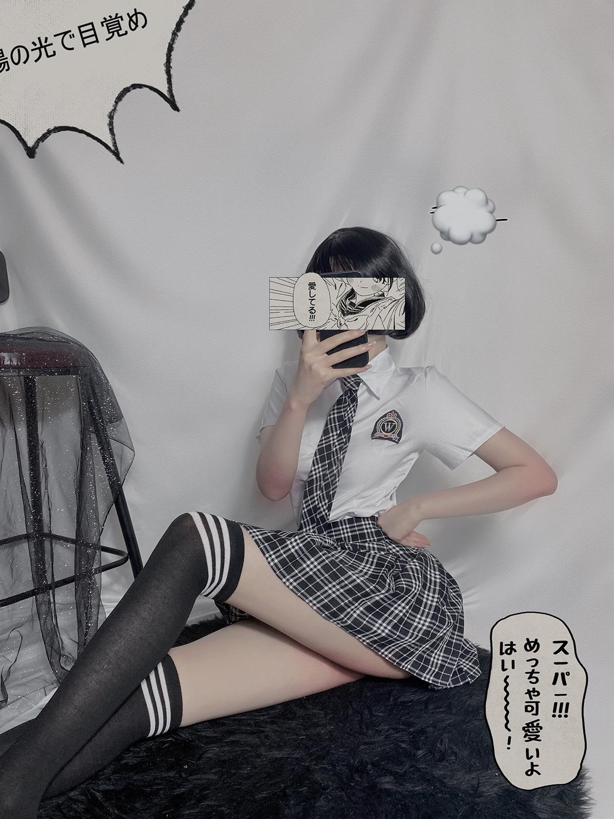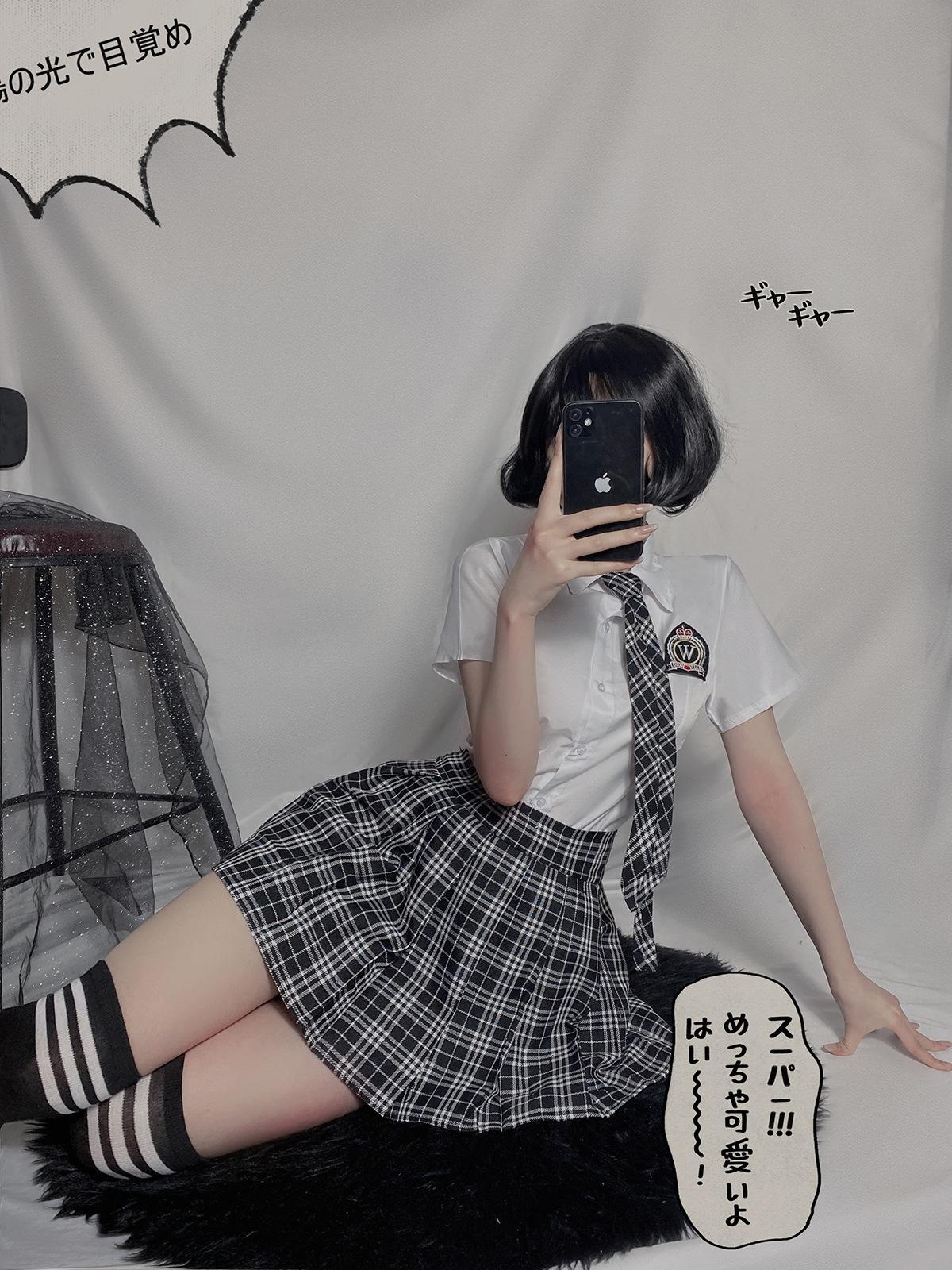 [Shirt + skirt + tie + student socks]]