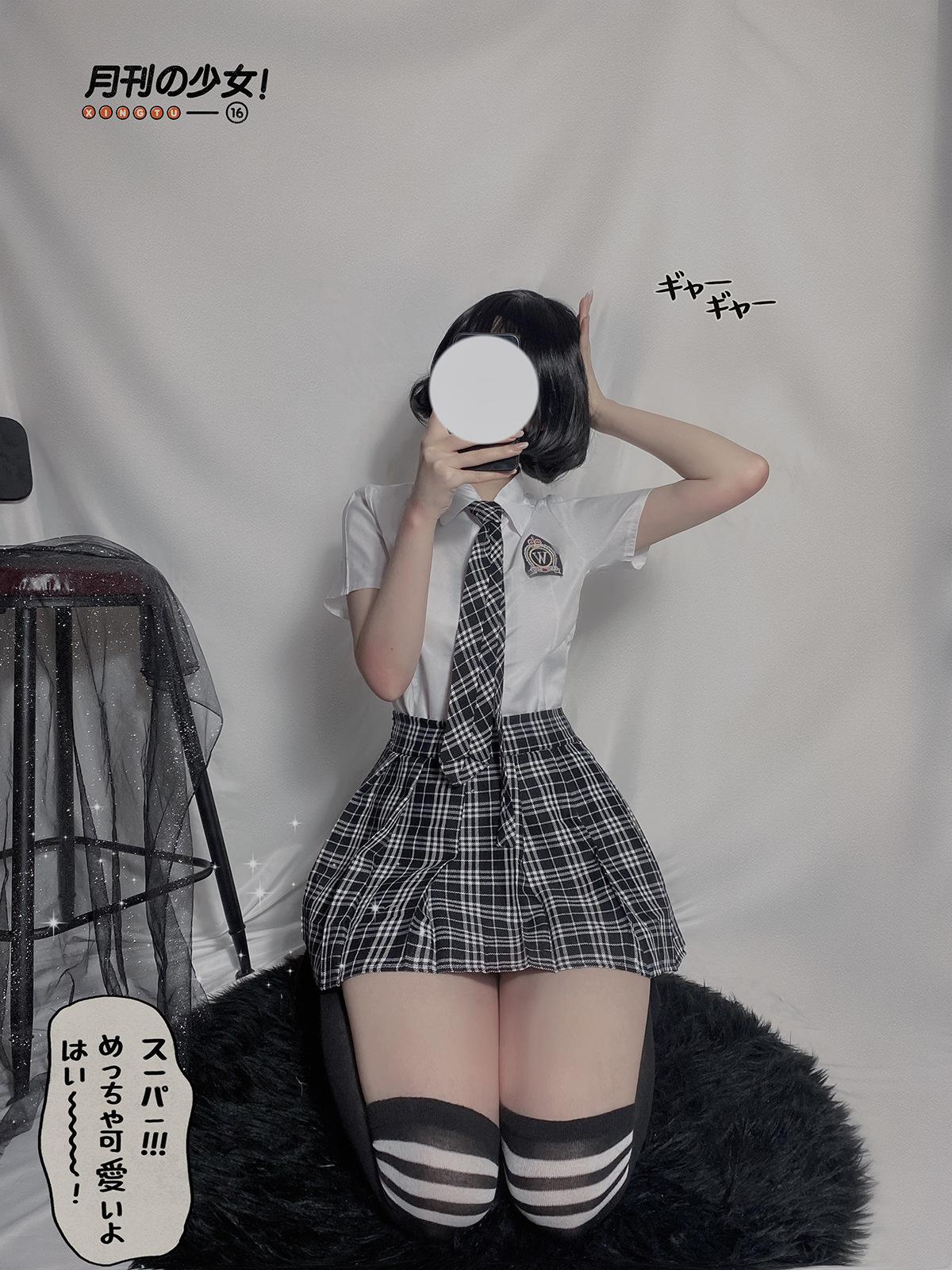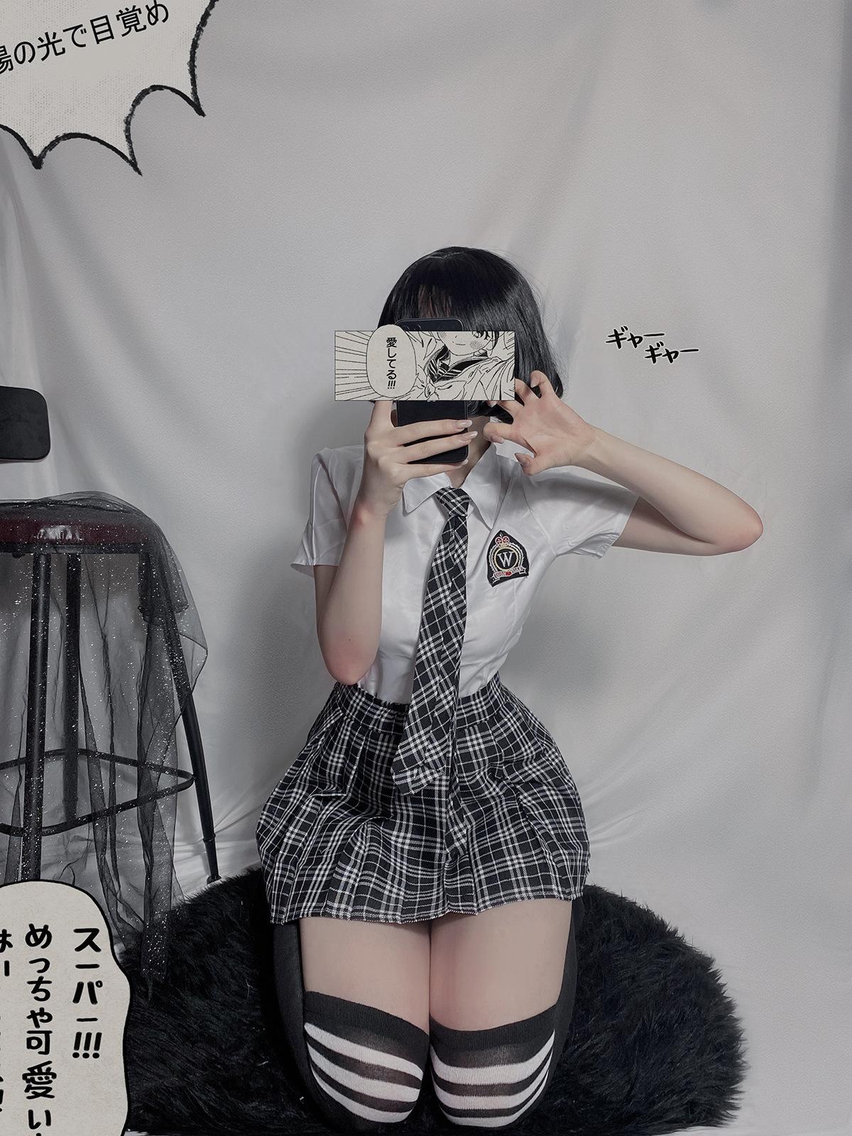 [Shirt + skirt + tie]], [Shirt + skirt + tie + student socks]]