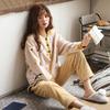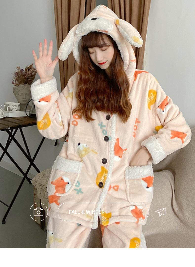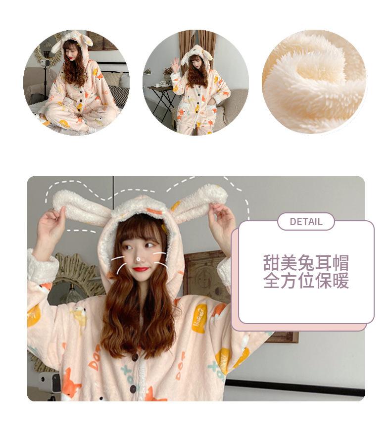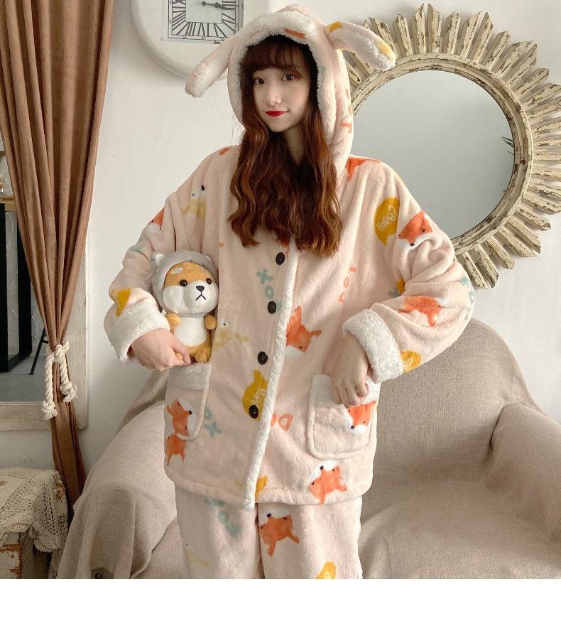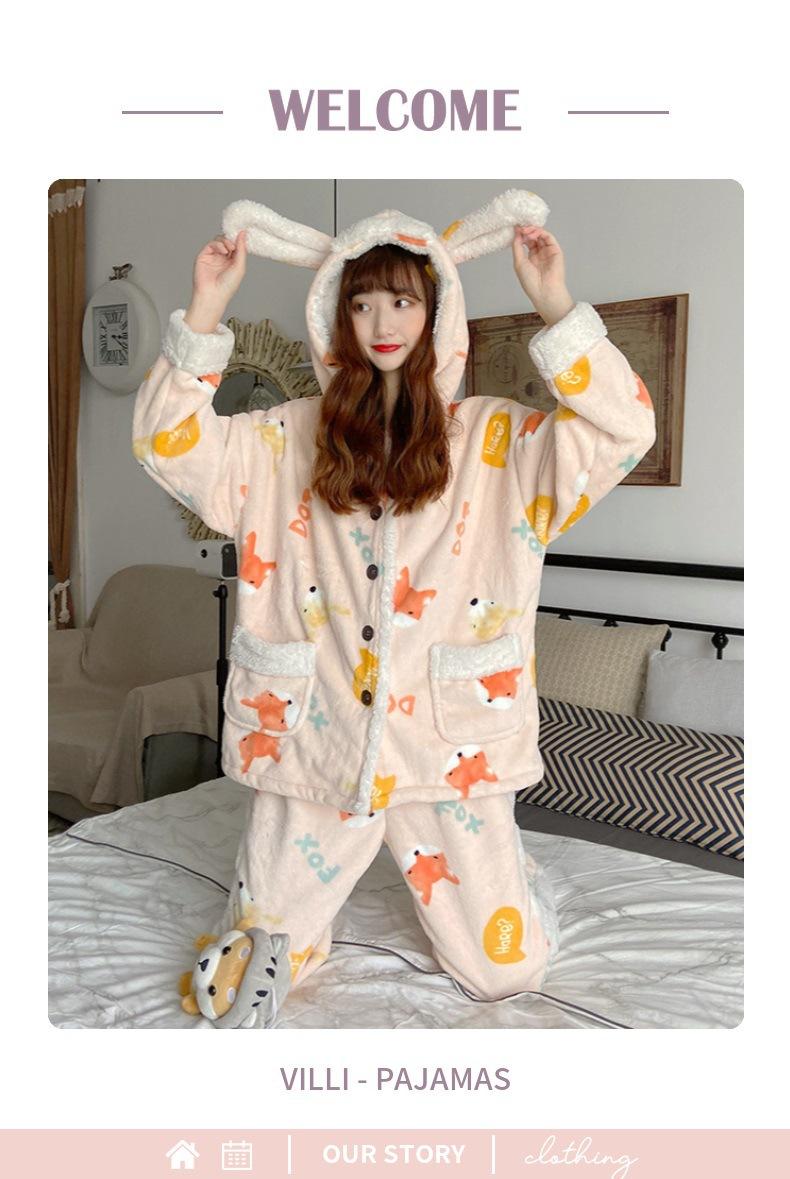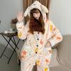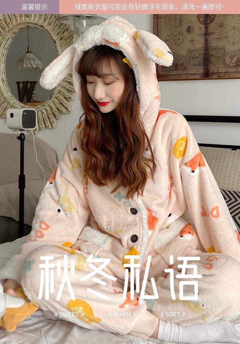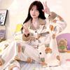 Pijama de lana coral de invierno para mujer, otoño e invierno, forro polar grueso, dibujos animados, lindo estudiante, franela, ropa de casa, traje de dos piezas