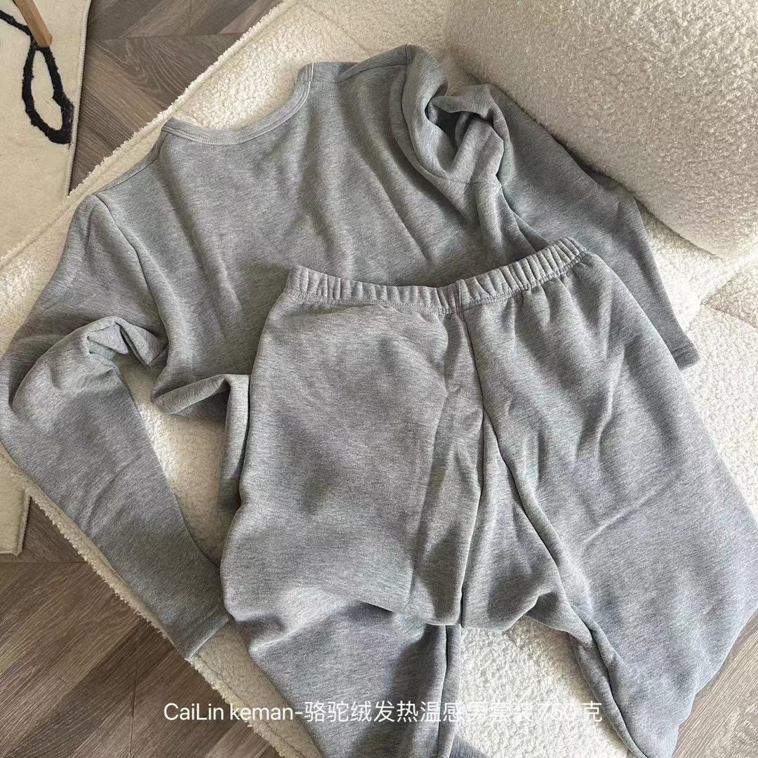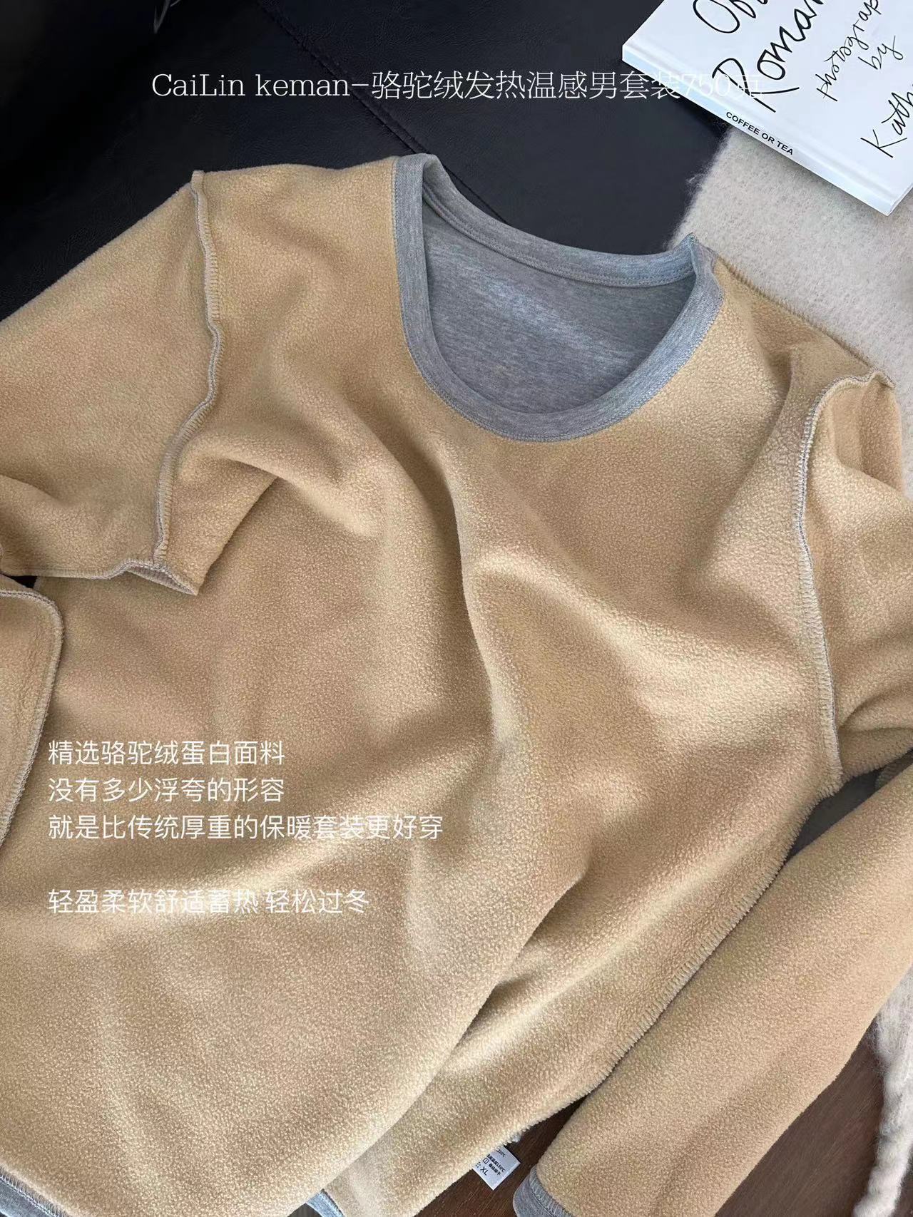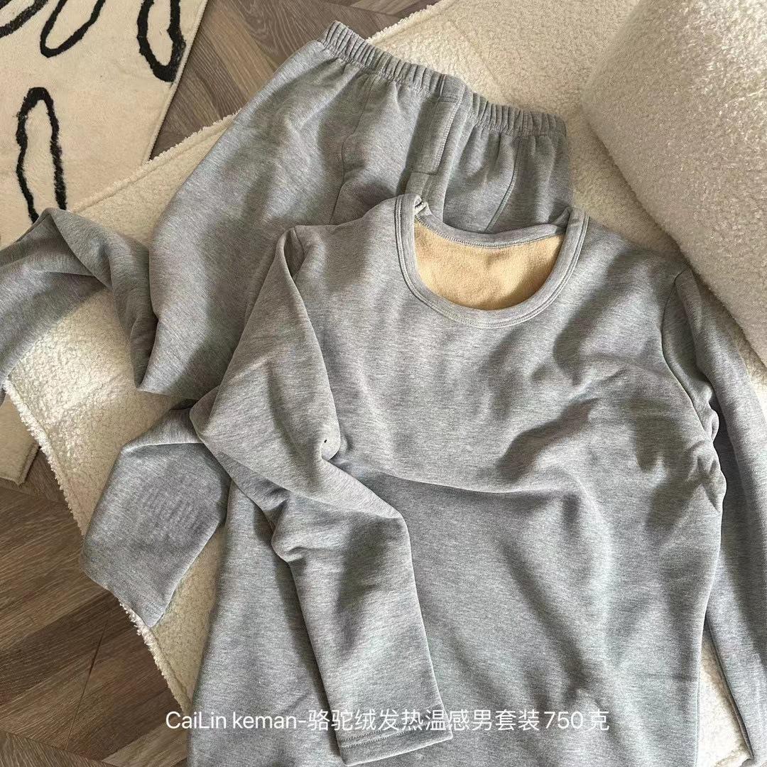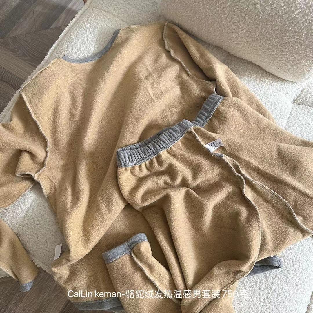 Traje cálido de terciopelo camel para hombre, resistente al frío, con forro polar, grueso y ajustado, ropa de otoño, pantalones largos, traje cálido para hombre