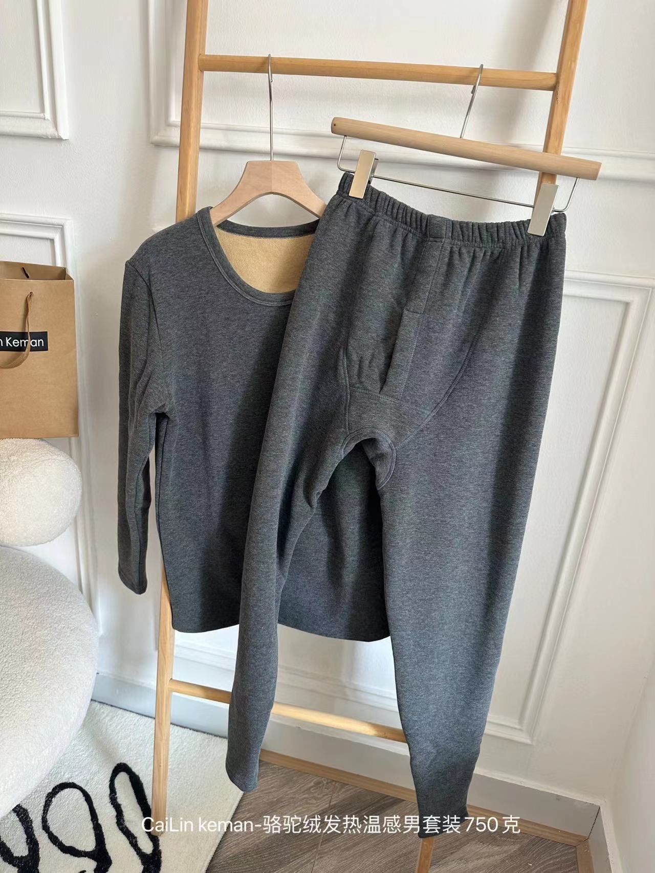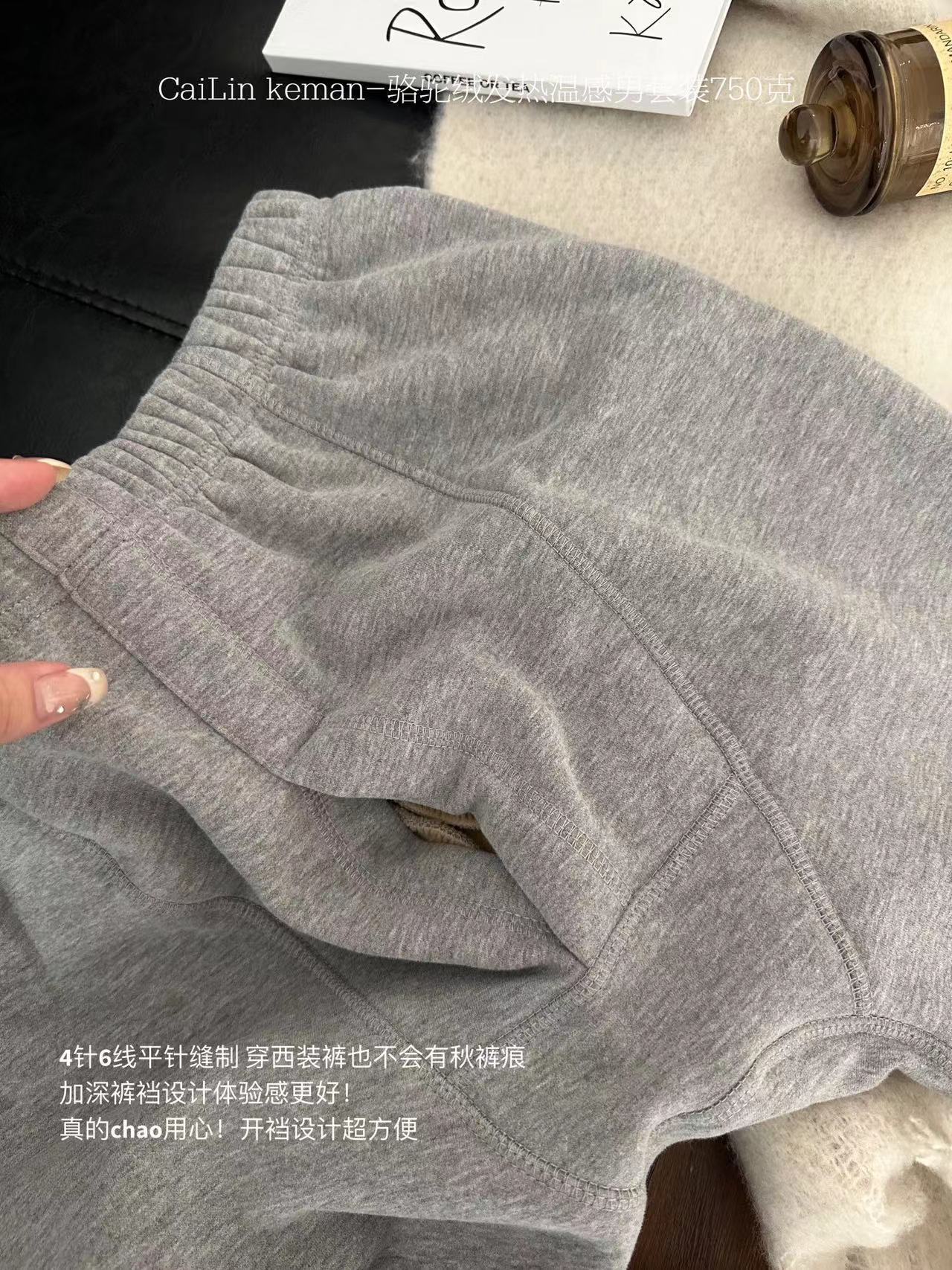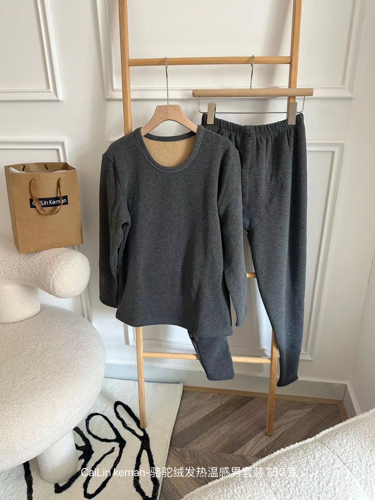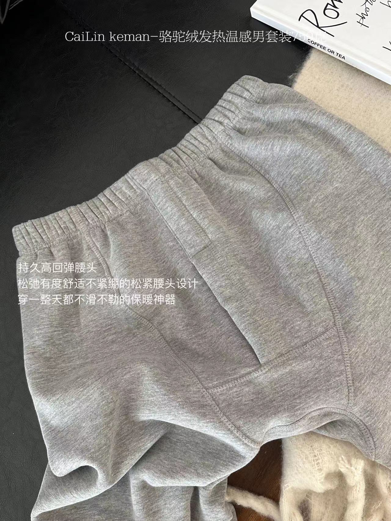 Traje cálido de terciopelo camel para hombre, resistente al frío, con forro polar, grueso y ajustado, ropa de otoño, pantalones largos, traje cálido para hombre