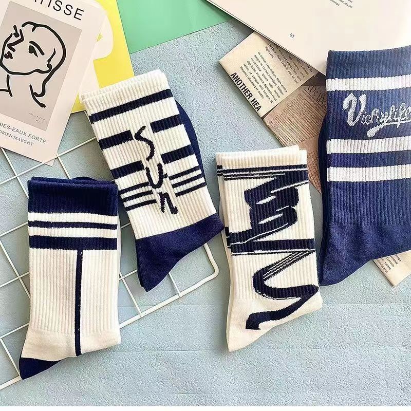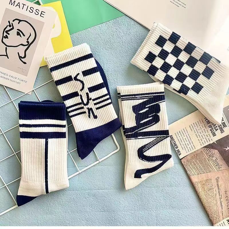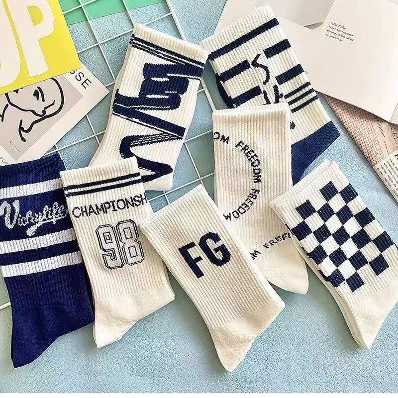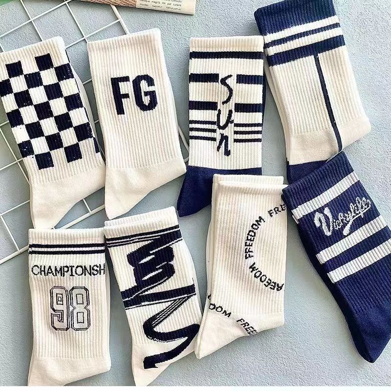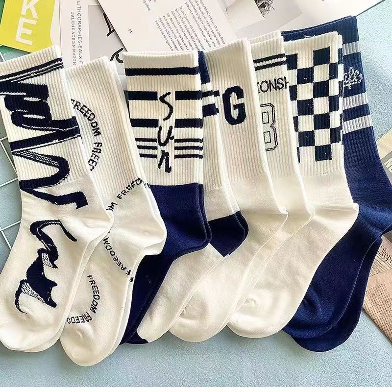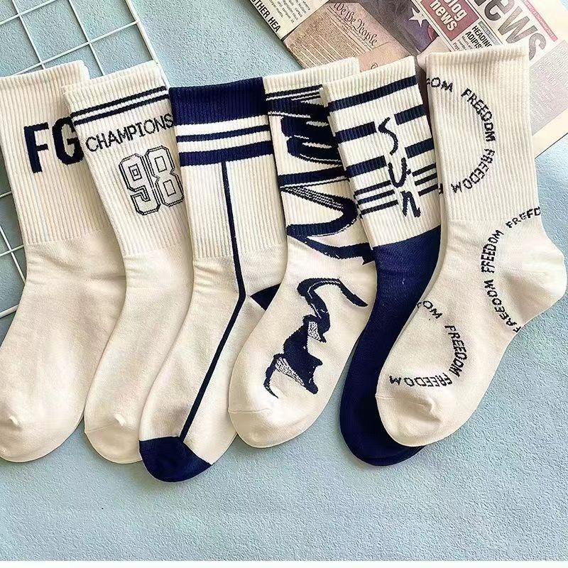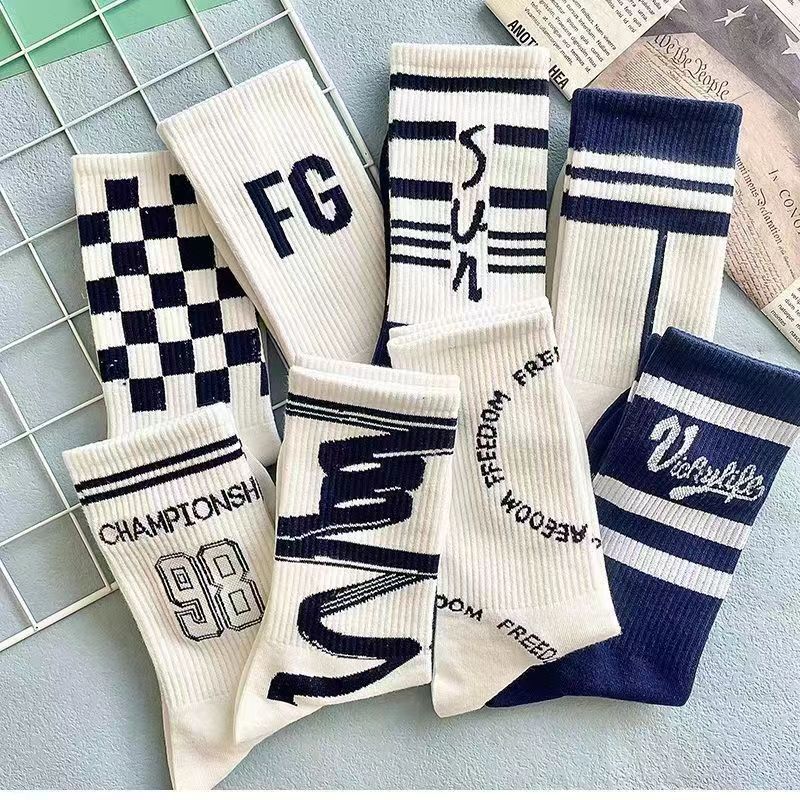 Calcetines de Media Caña para Hombre Ins Trendy Versátiles Deportivos de Baloncesto Calcetines para Hombre Otoño e Invierno Calcetines Largos Calcetines de Pareja Mujer