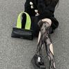 Irregular ripped mesh socks-Black