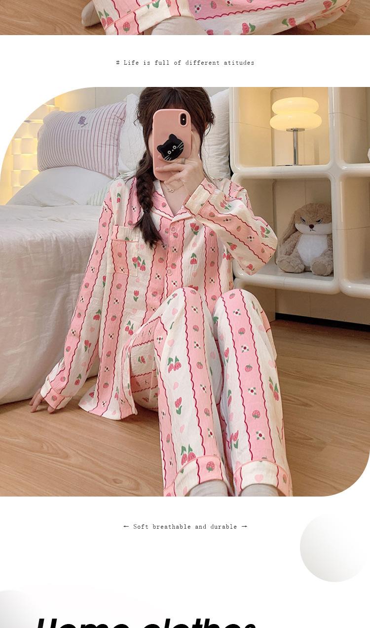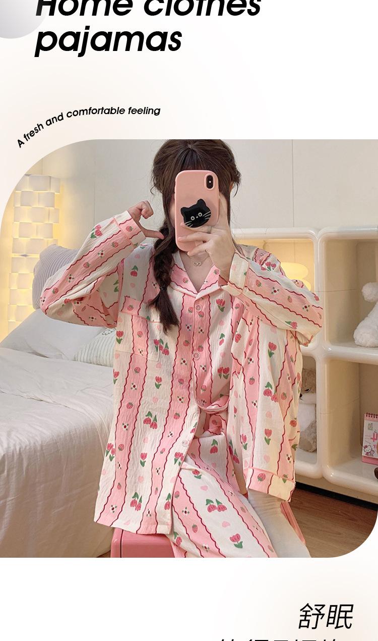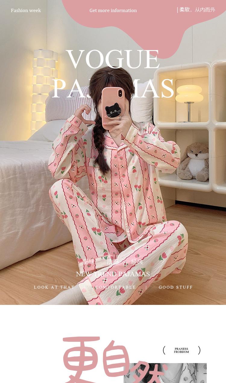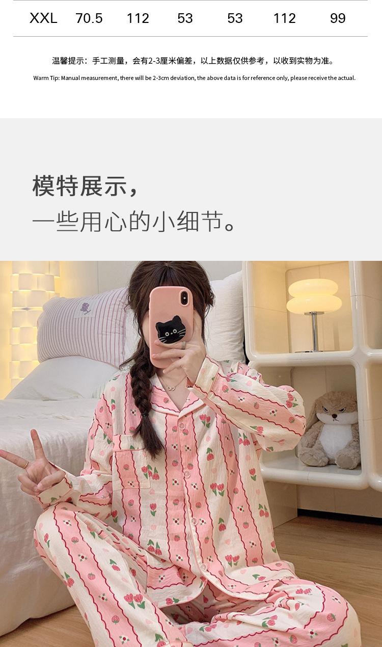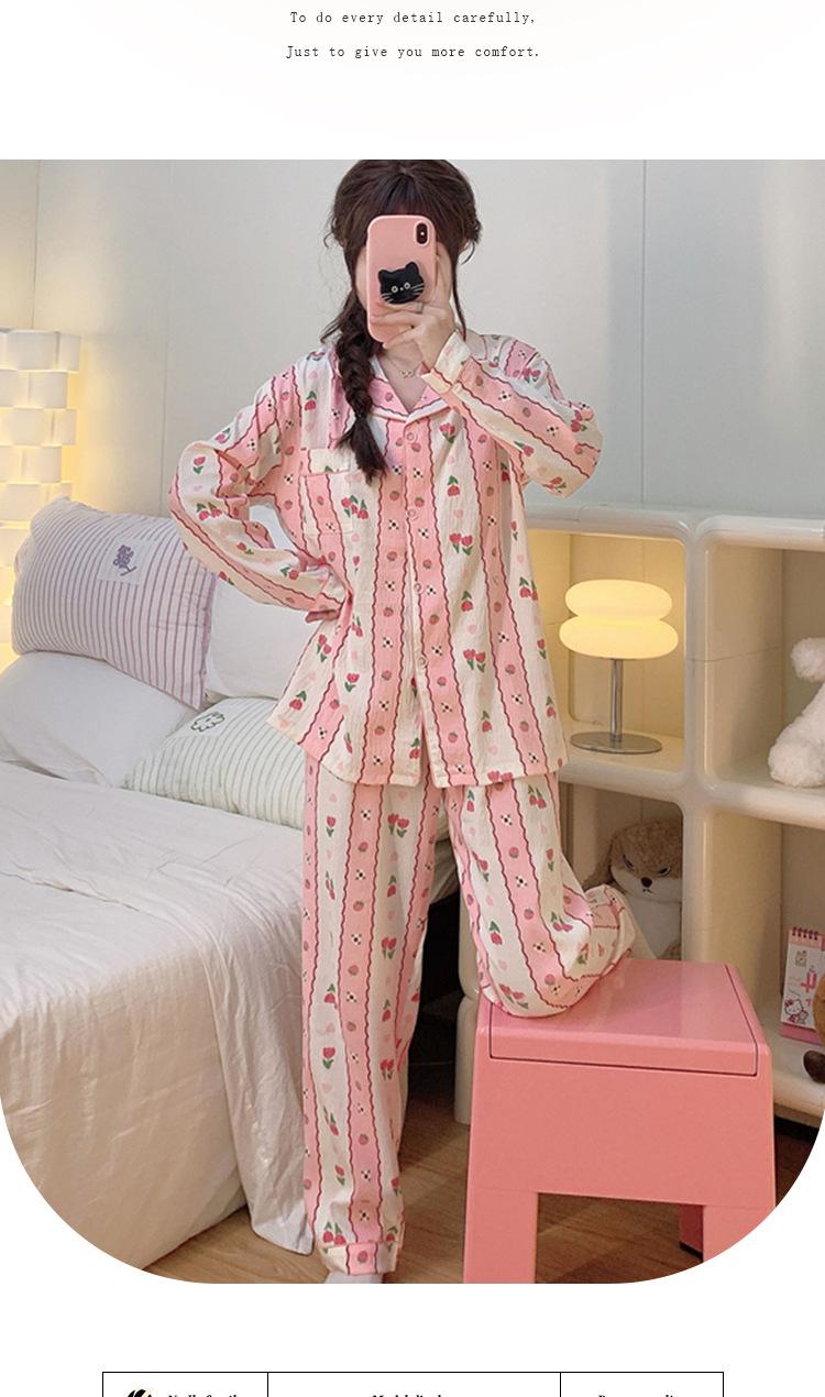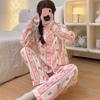 Pijama para Mujer Primavera y Otoño Nubes Algodón Manga Larga Pantalones Nuevo Tulipán Rosa Rayado Cárdigan Traje Ropa de Casa Venta al por Mayor