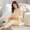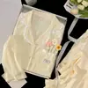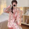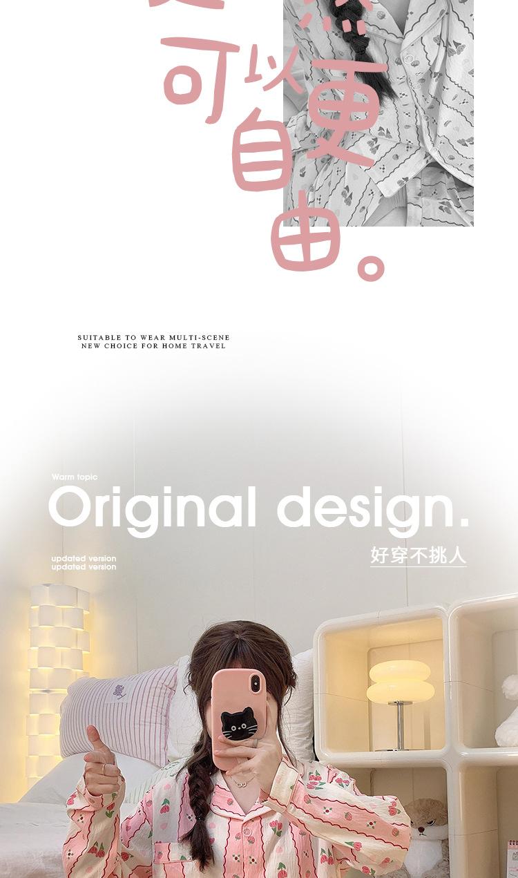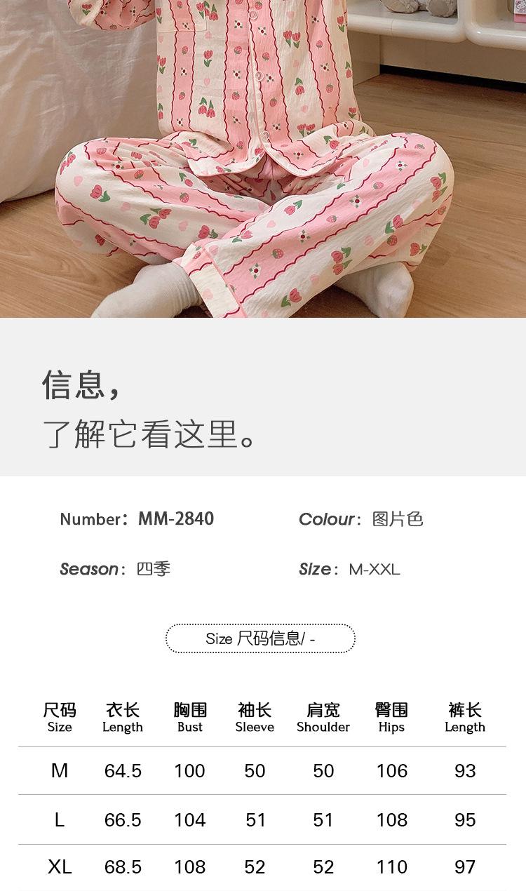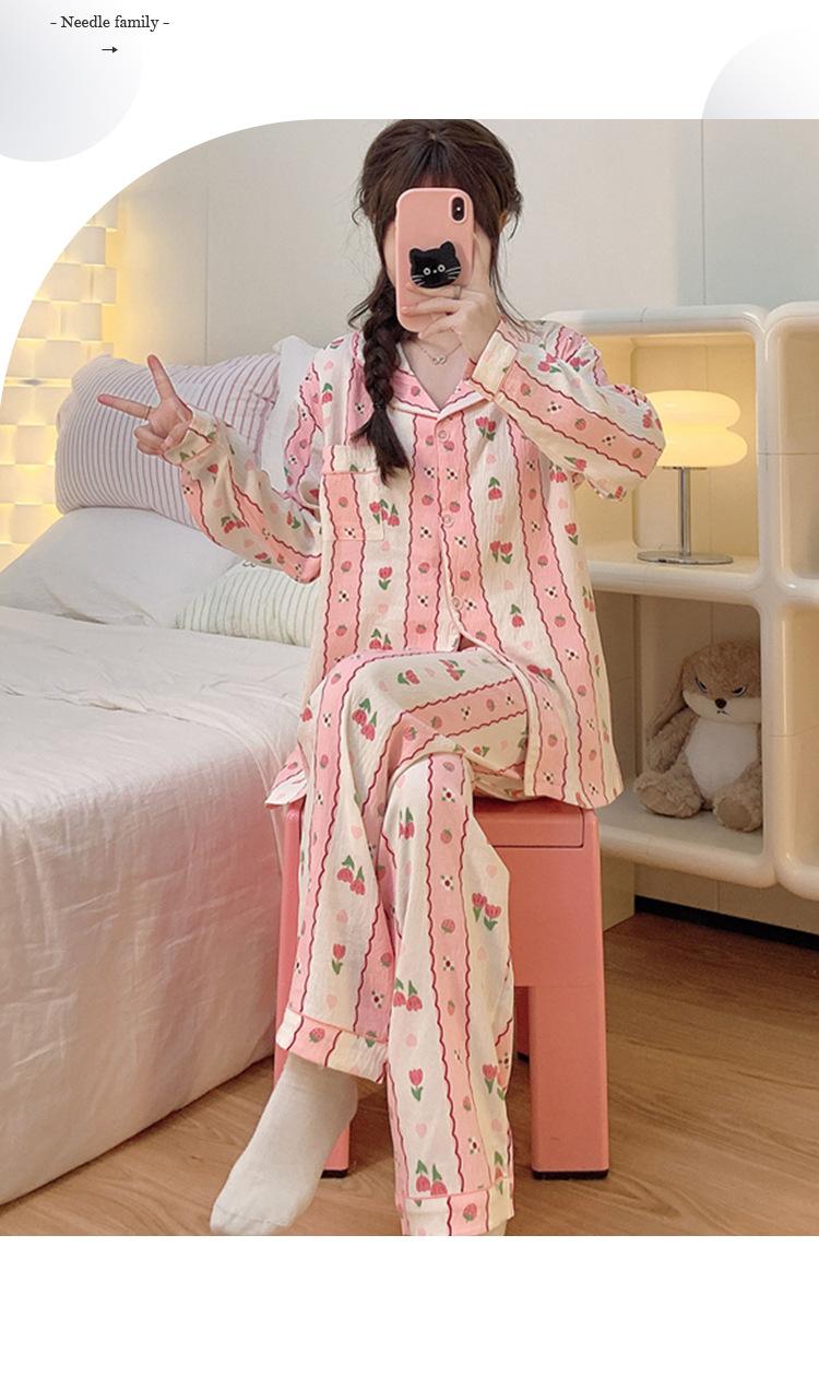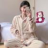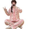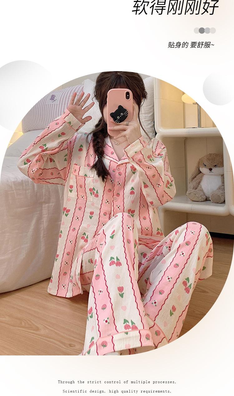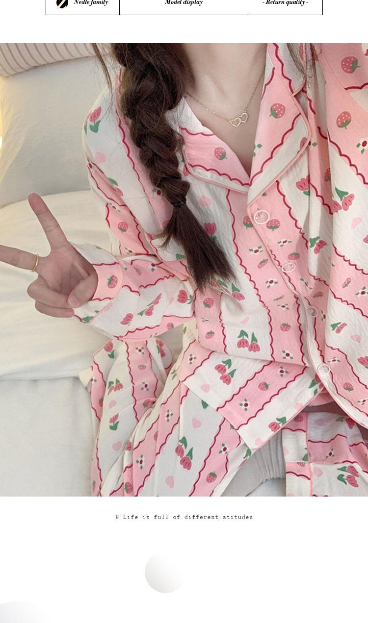 Pijama para Mujer Primavera y Otoño Nubes Algodón Manga Larga Pantalones Nuevo Tulipán Rosa Rayado Cárdigan Traje Ropa de Casa Venta al por Mayor