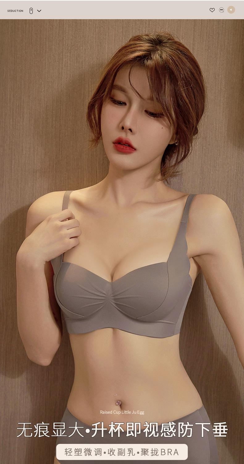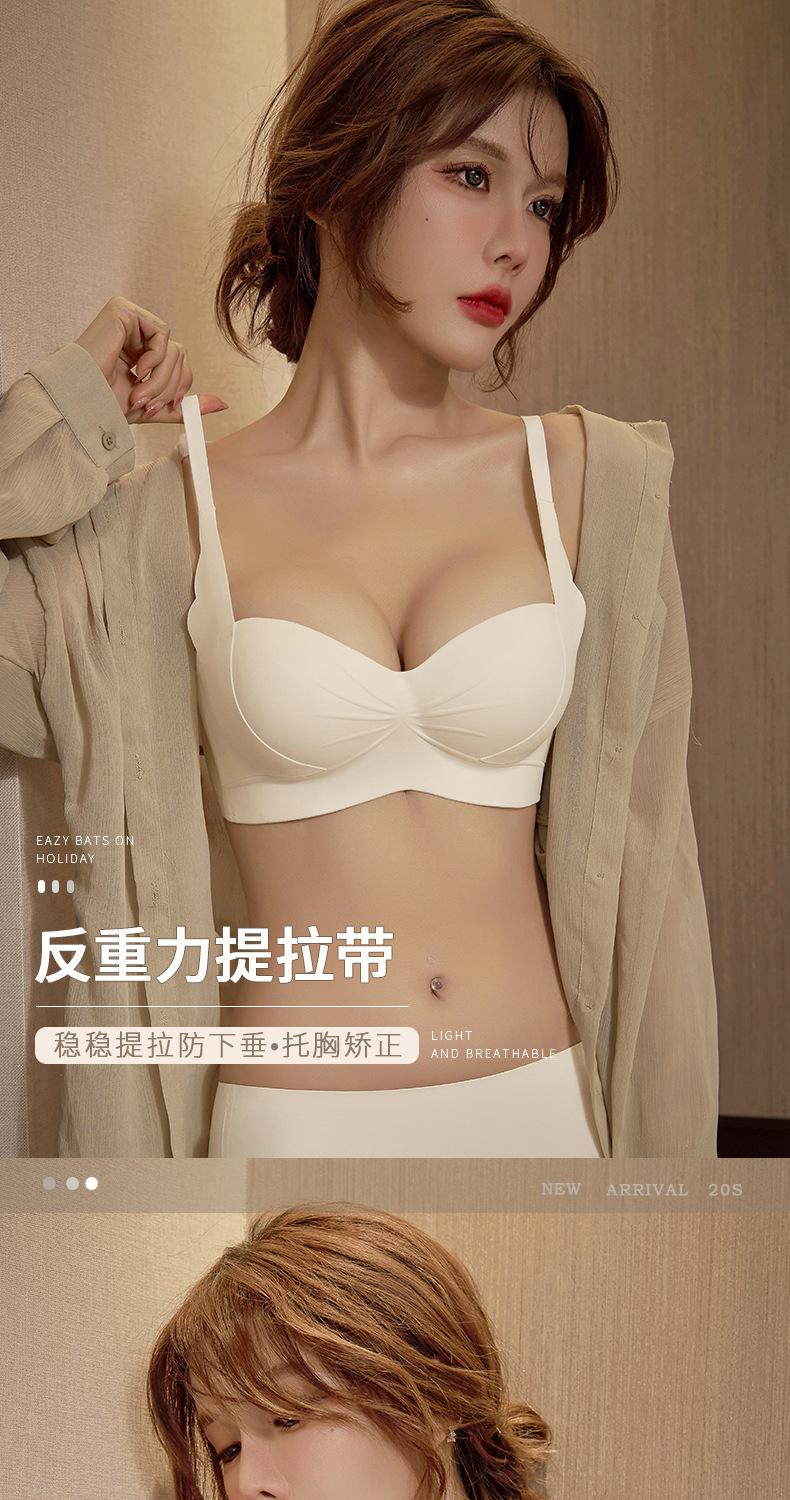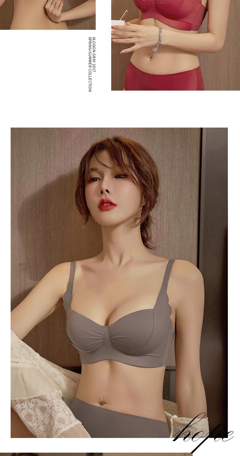 Sujetador C21 con realce de melocotón, brillante, plisado, sin costuras, cómodo, inalámbrico, con pecho pequeño fruncido, sexy