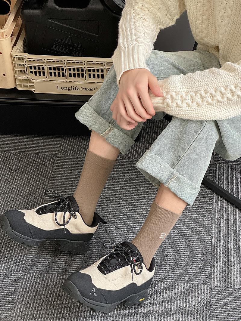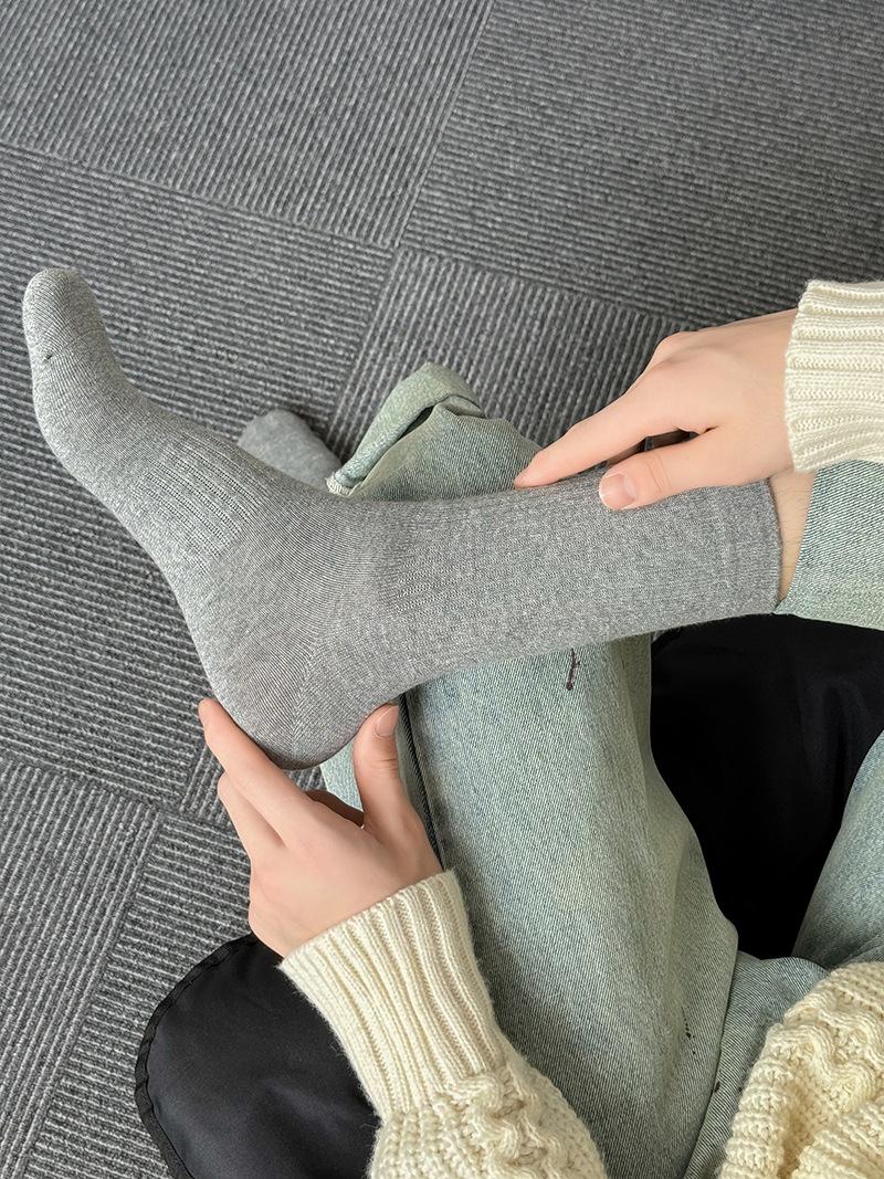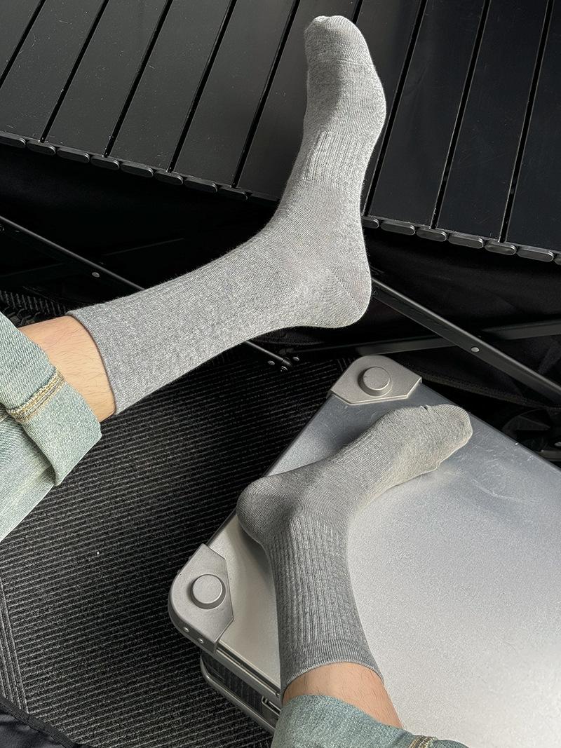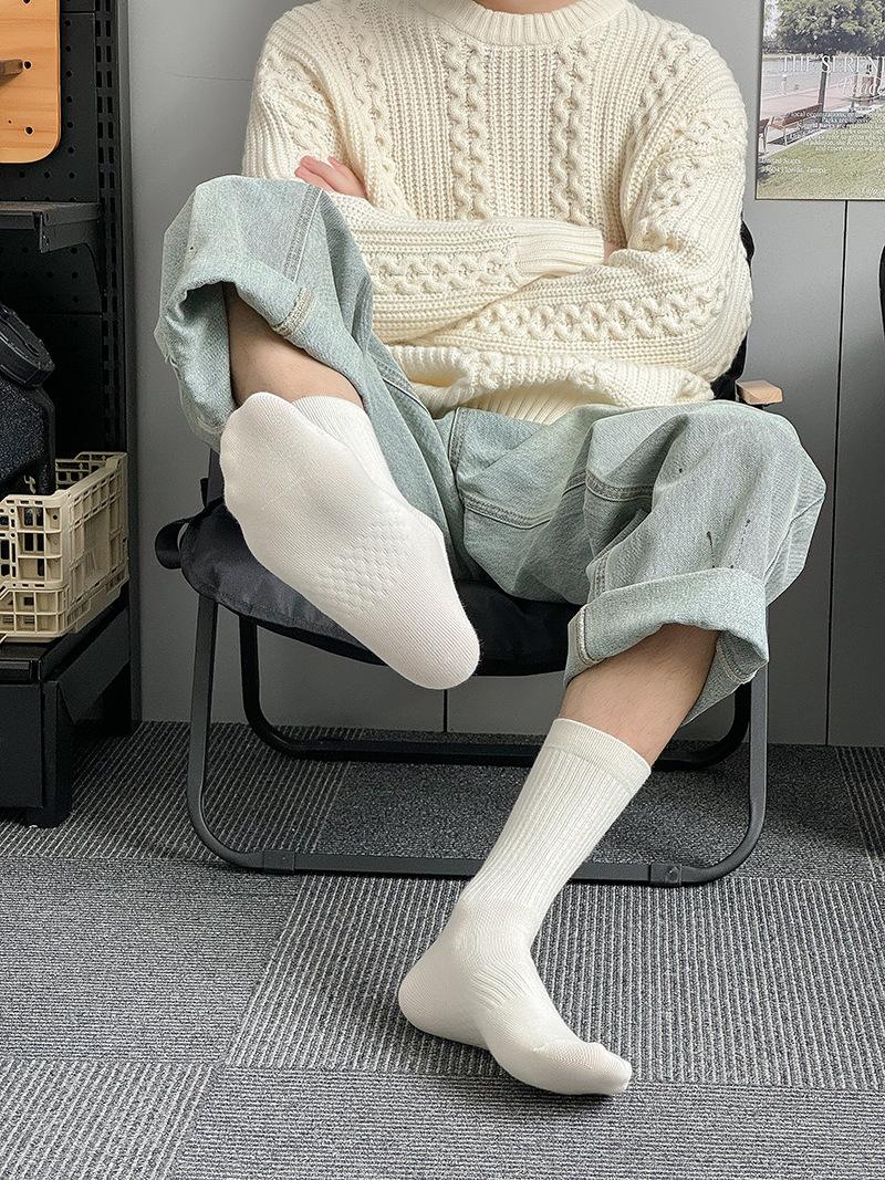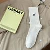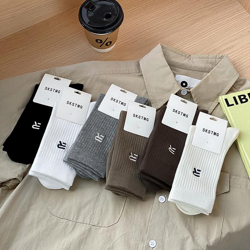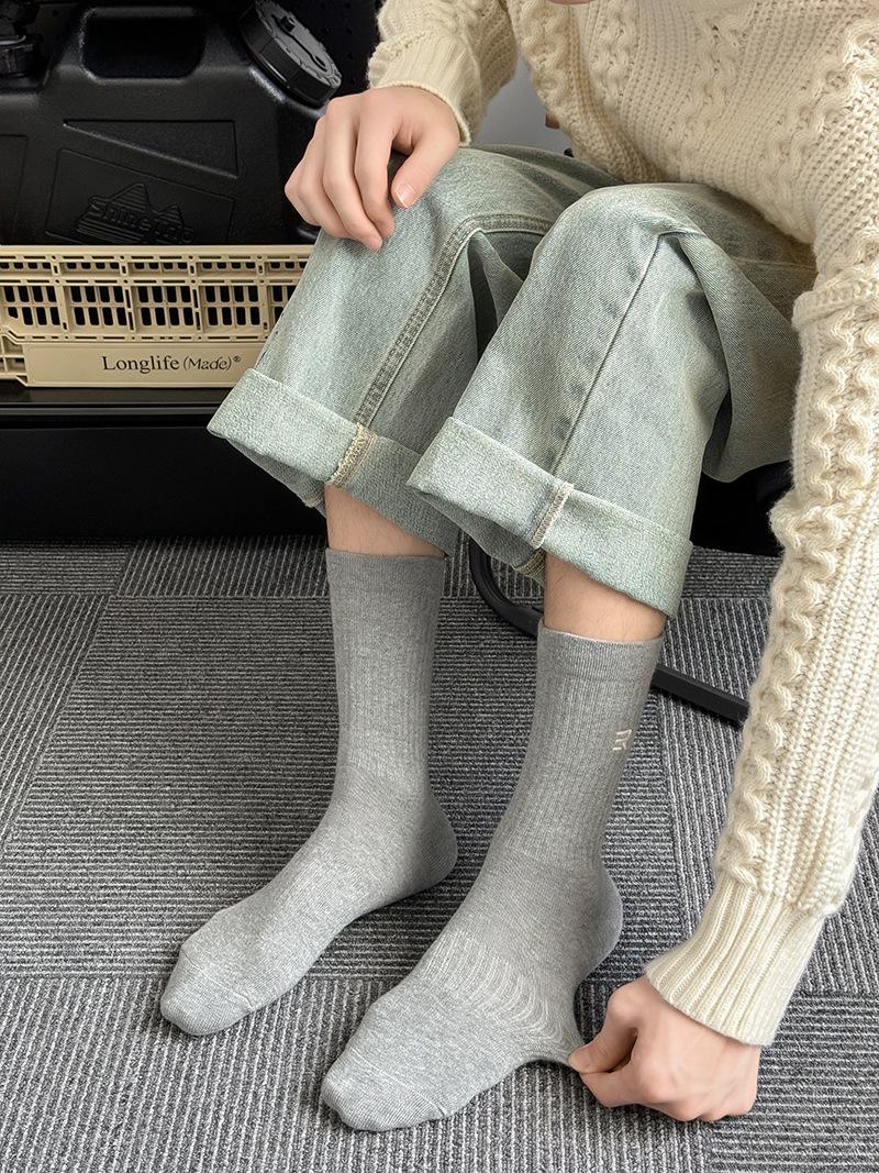 Calcetines deportivos de tubo medio con bordado de cintura R para hombre, calcetines altos blancos y negros para hombre, calcetines de algodón desodorante absorbentes de sudor para otoño e invierno.