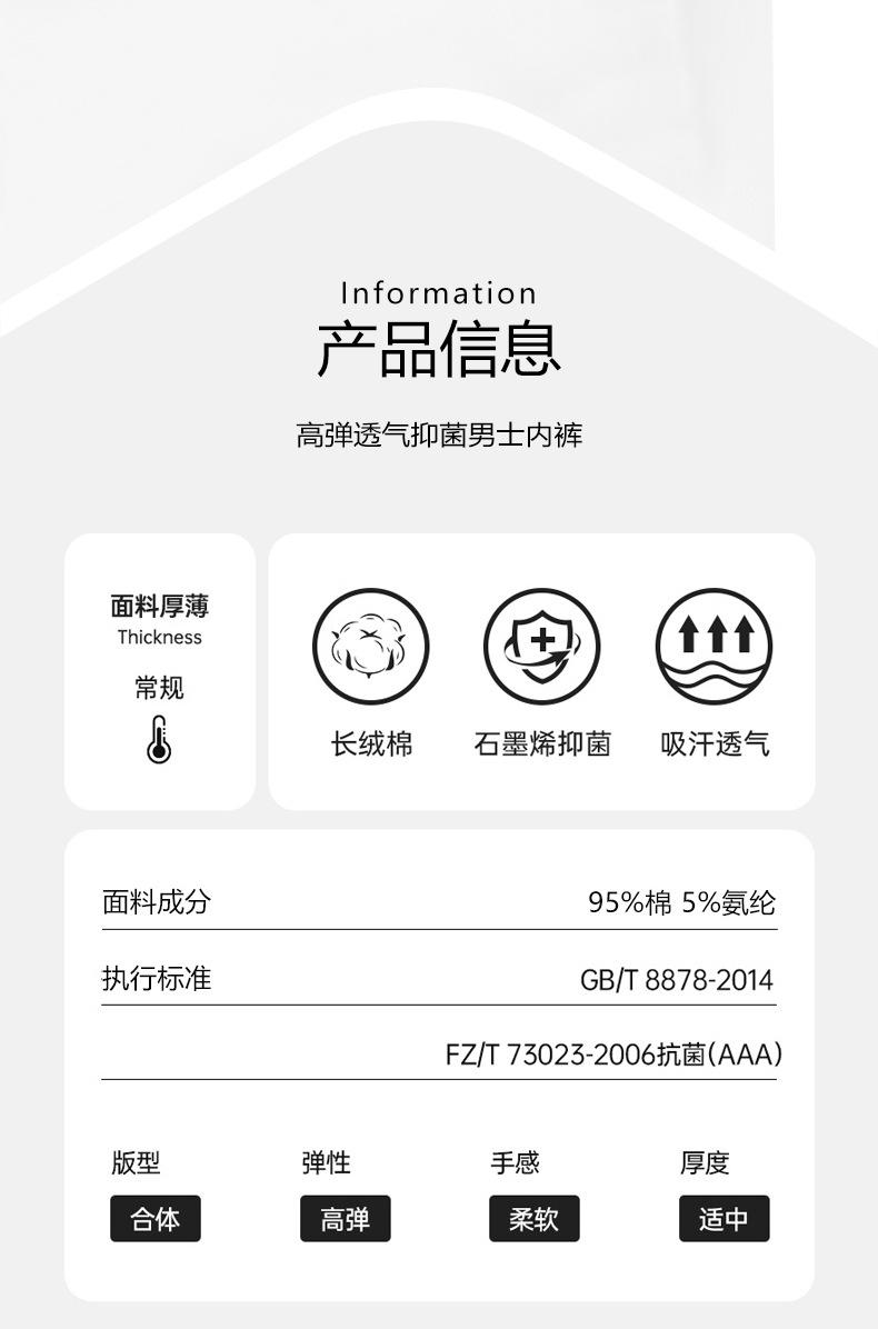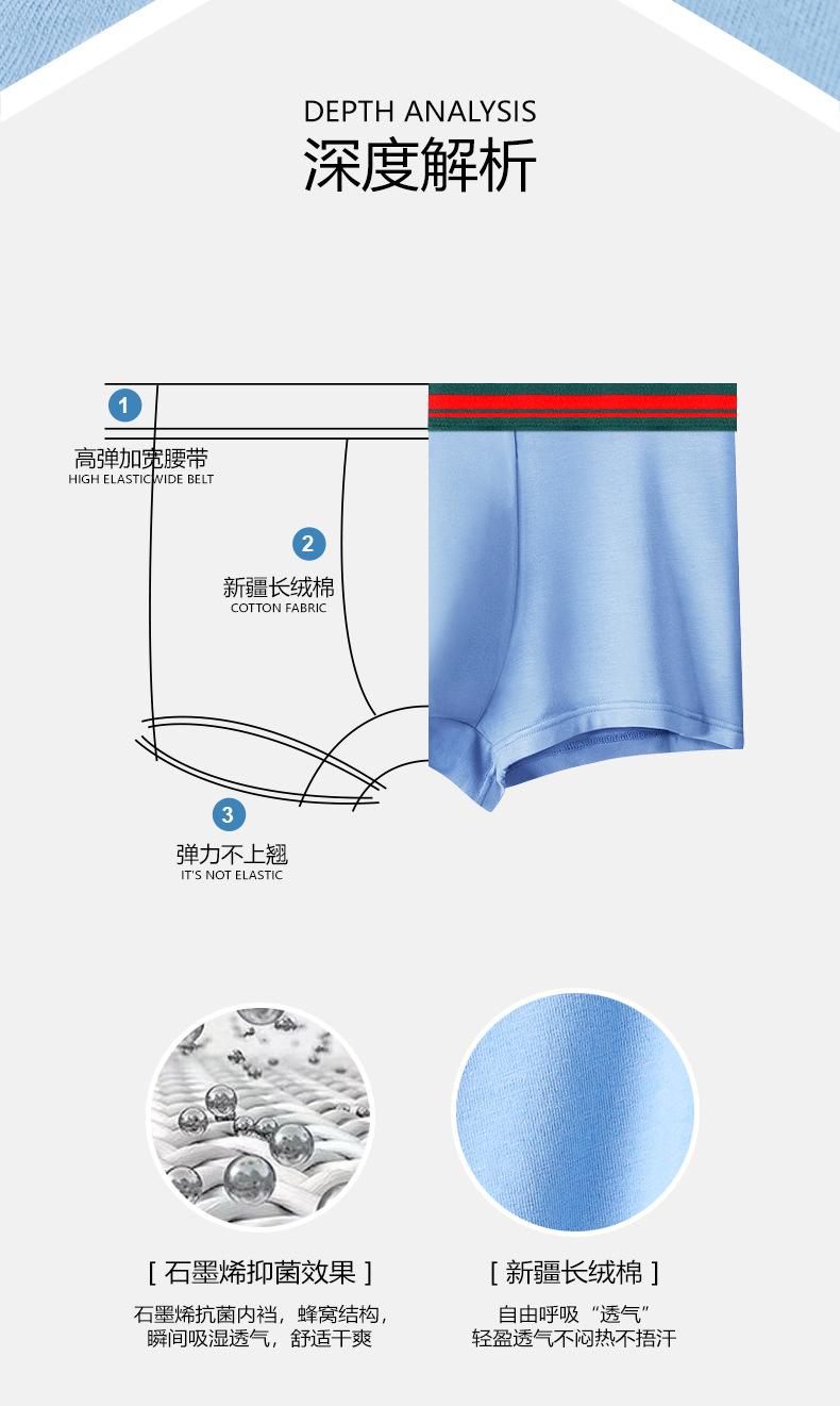 Ropa interior para hombre de algodón de fibra larga de Xinjiang, capa interior antibacteriana de grafeno, bóxers de tiro medio, calzoncillos bóxer, saludables y antibacterianos