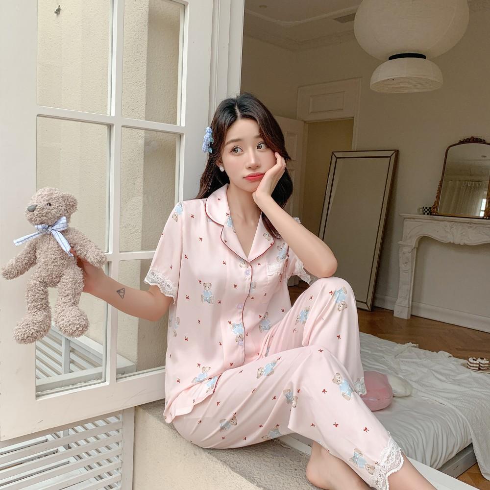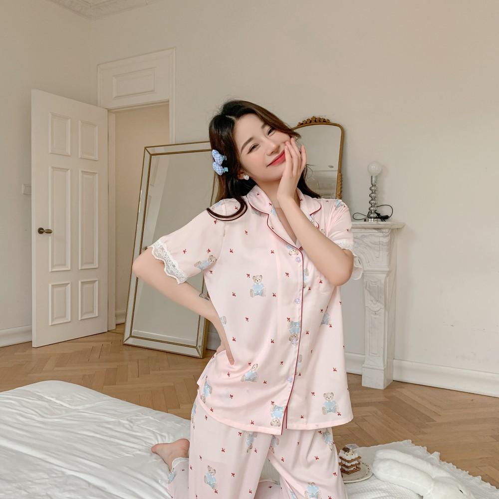 Light pink bear three-piece set, Short Sleeve Trousers, Short Sleeve Shorts