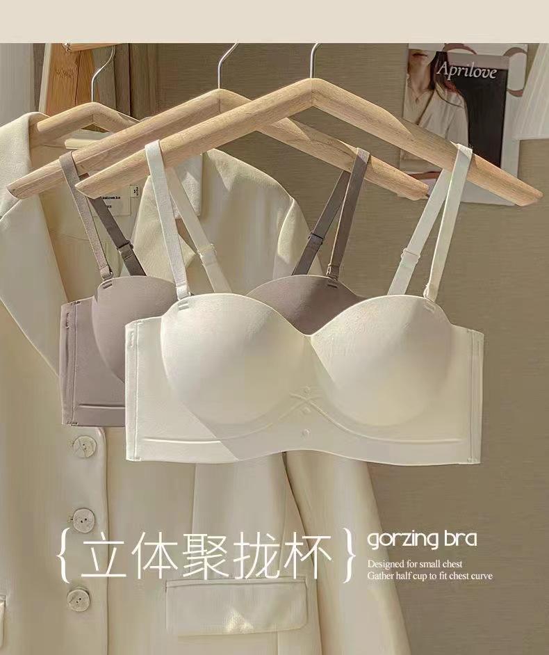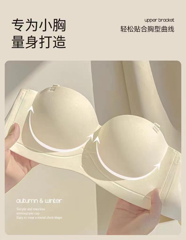 Nueva ropa interior de media copa para mujer, sujetador push-up de pecho pequeño, sin tirantes, sin tirantes, con copa fija, sin aros ni costuras.