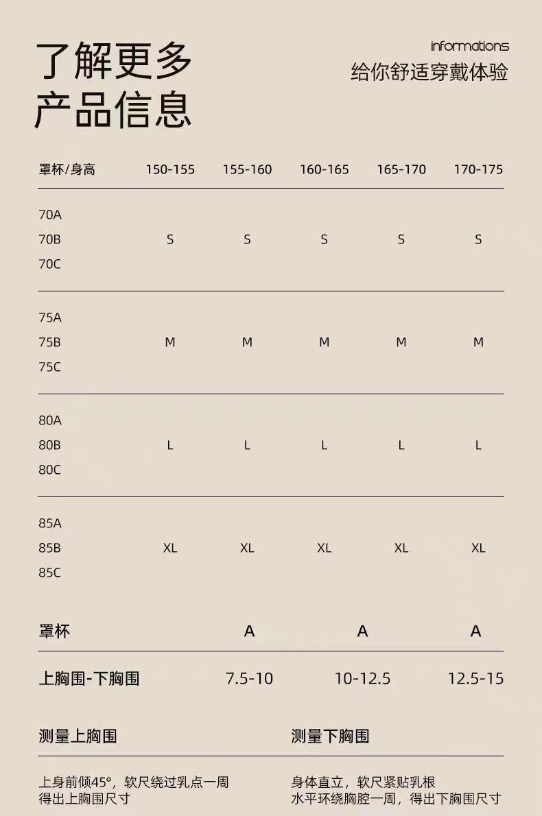 S 32/70ABC, M 34/75ABC, L 36/80ABC, XL 38/85ABC