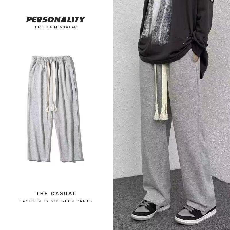 Pantalones casuales de talla grande para hombre para primavera y otoño, estilo americano, pantalones de chándal de pierna recta, pantalones holgados hasta el suelo de alta calle, estilo coreano, modernos