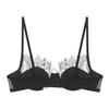 Conjunto de sujetador de media copa, sexy, de encaje, ultrafino, transparente, sin relleno