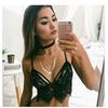 Ropa interior sexy de comercio exterior europeo y americano con estampado de amor hueco, estilo bikini, vestido con perspectiva de tentación sexy para mujer