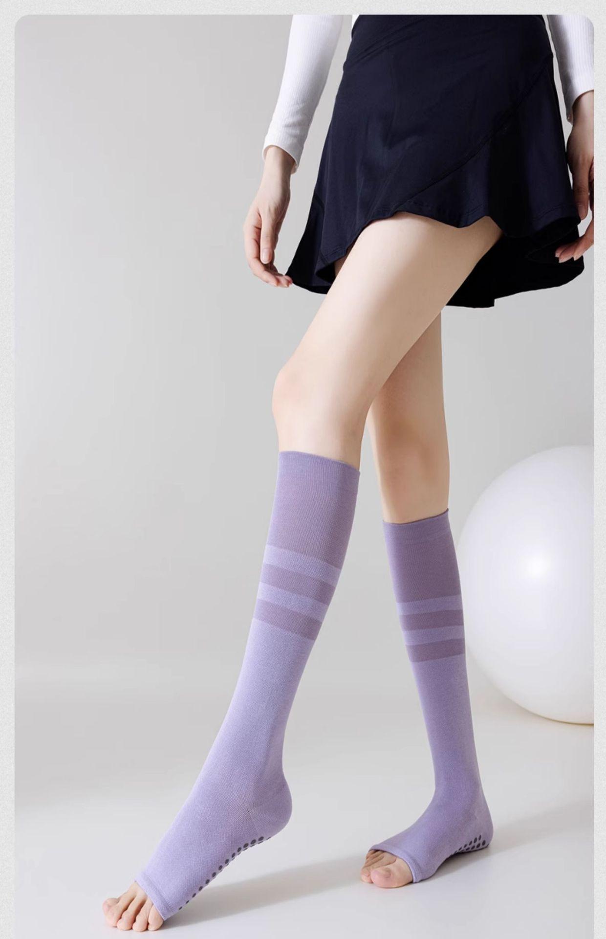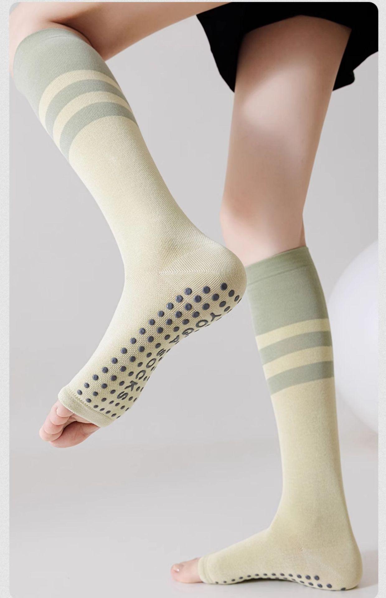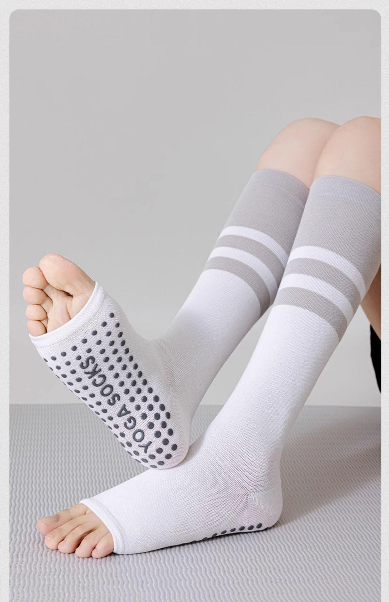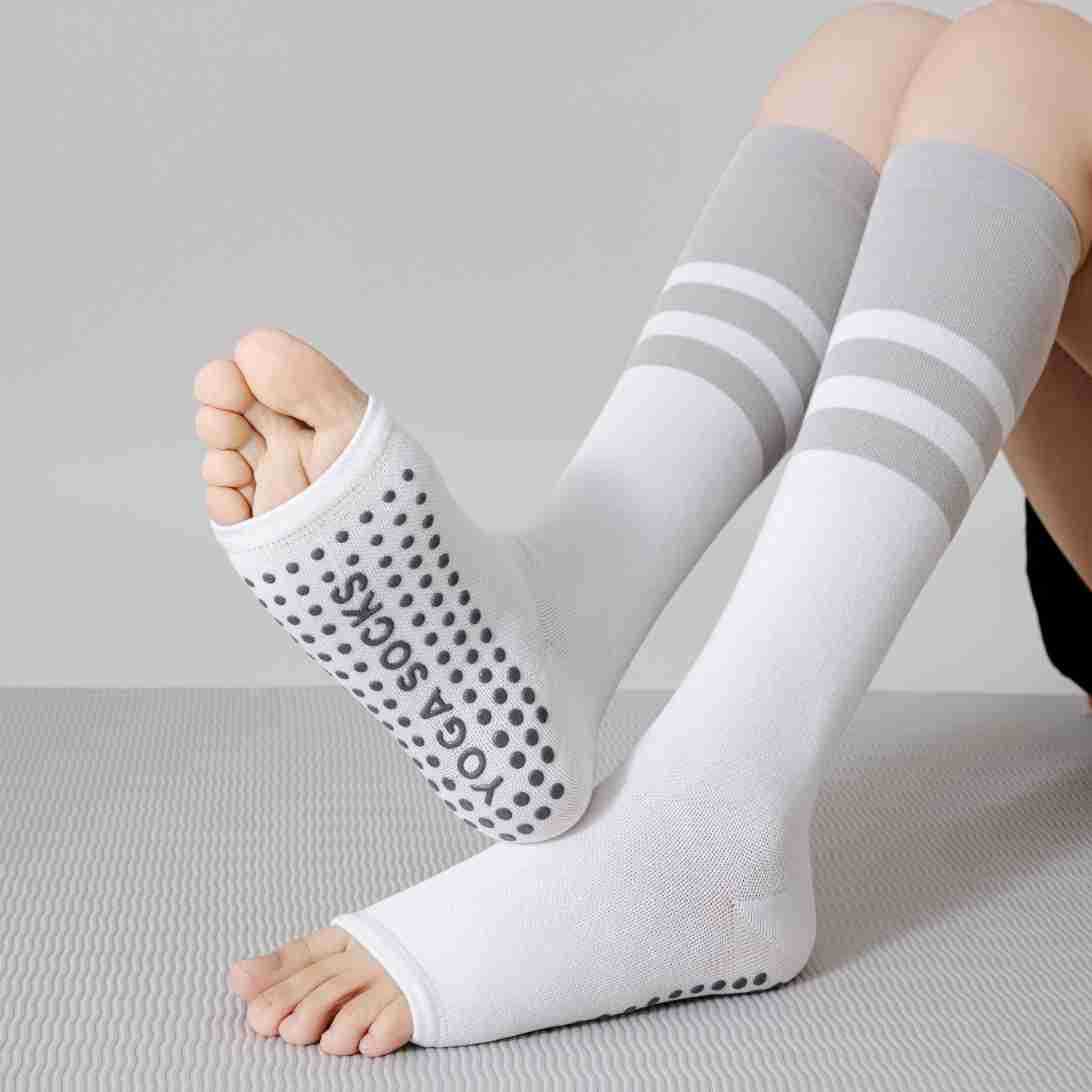 Calcetines de yoga antideslizantes profesionales para mujer, calcetines de verano para pilates, calcetines de pantorrilla con punta abierta, calcetines deportivos para correr y fitness.