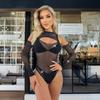 Bikini de seda negra con diseño geométrico cuadrado y diamantes de imitación para mujer, ropa interior sexy de red de pesca, uniforme de tentación con diamantes brillantes