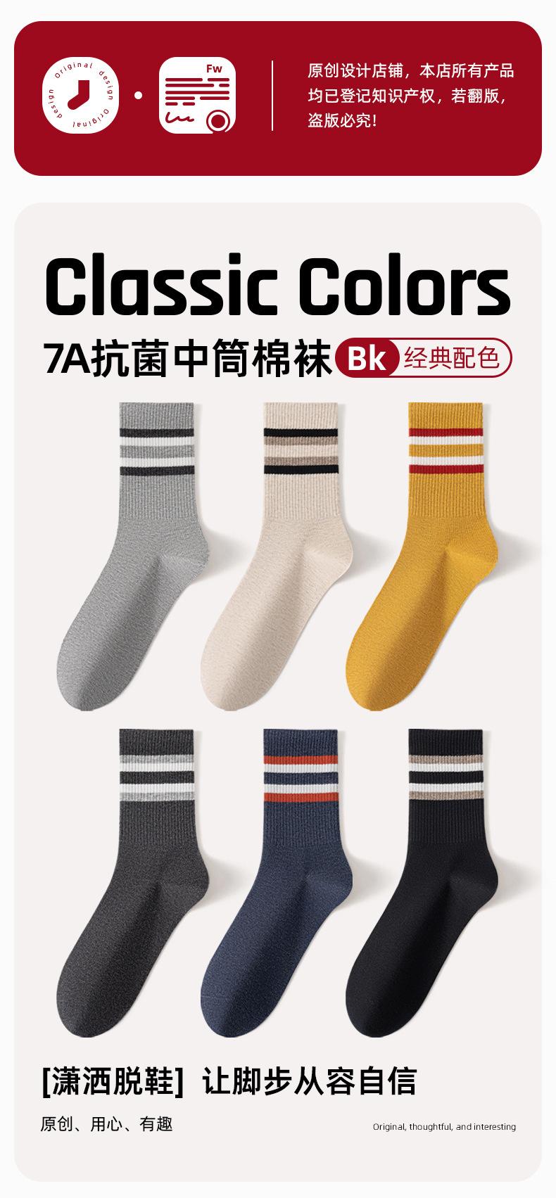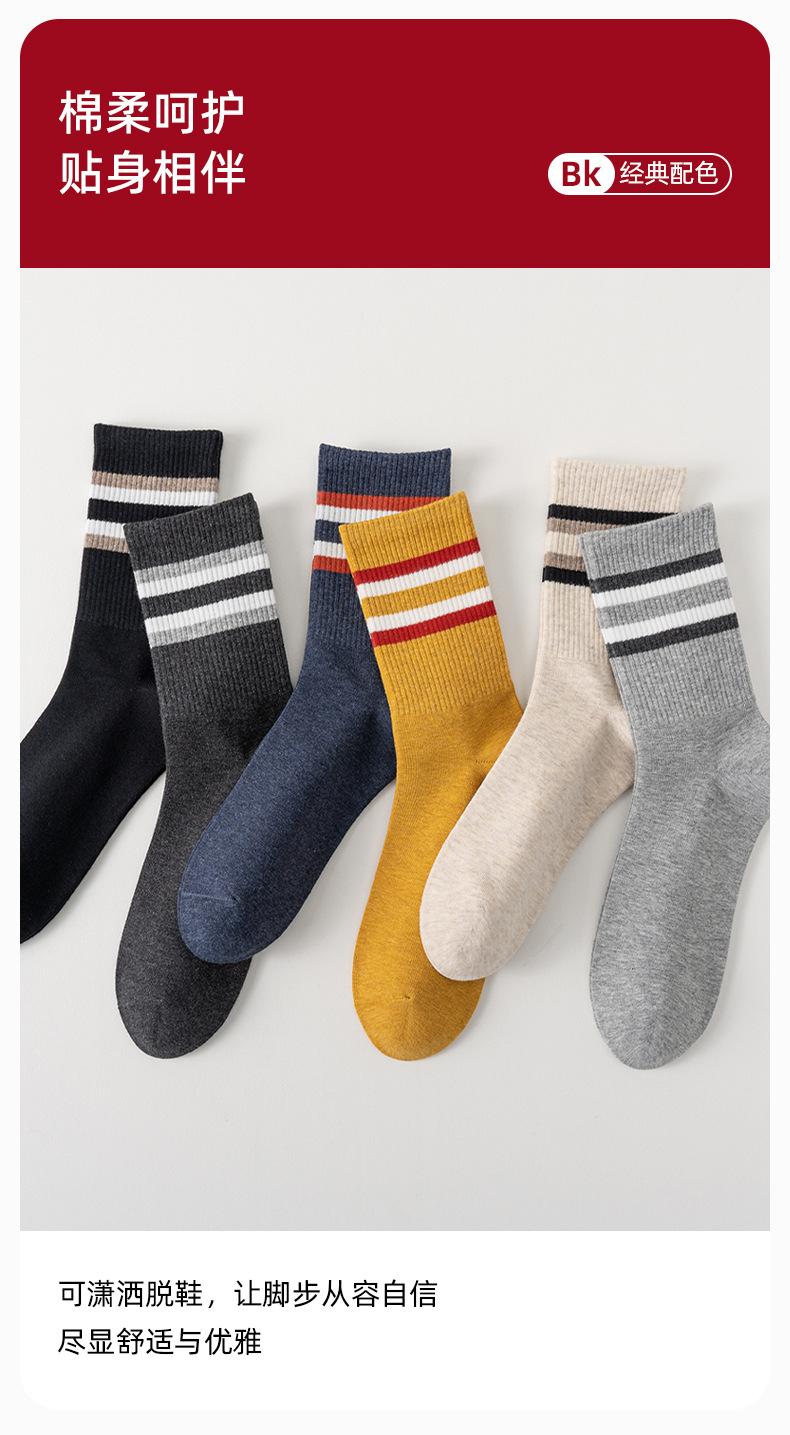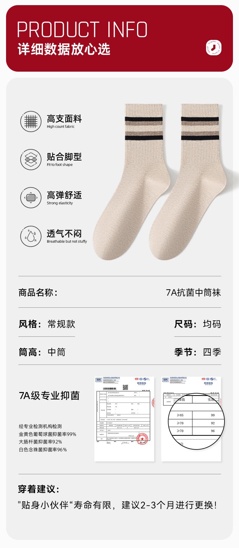 Calcetines para Hombre 7A Antibacteriales y Desodorantes Otoño e Invierno Calcetines Altos de Media Caña de Tres Barras Calcetines Altos Calcetines Deportivos Versátiles para Hombre Calcetines Zhuji