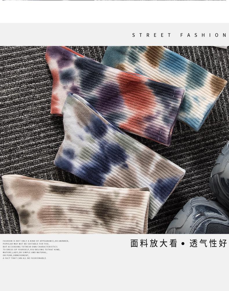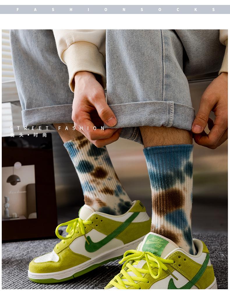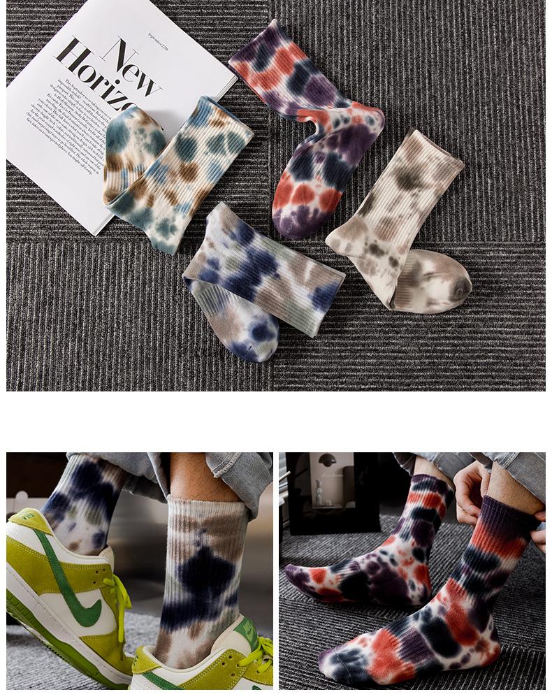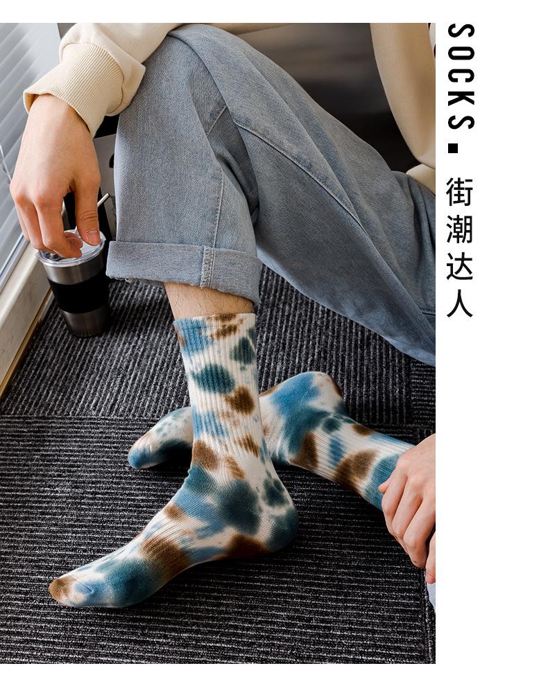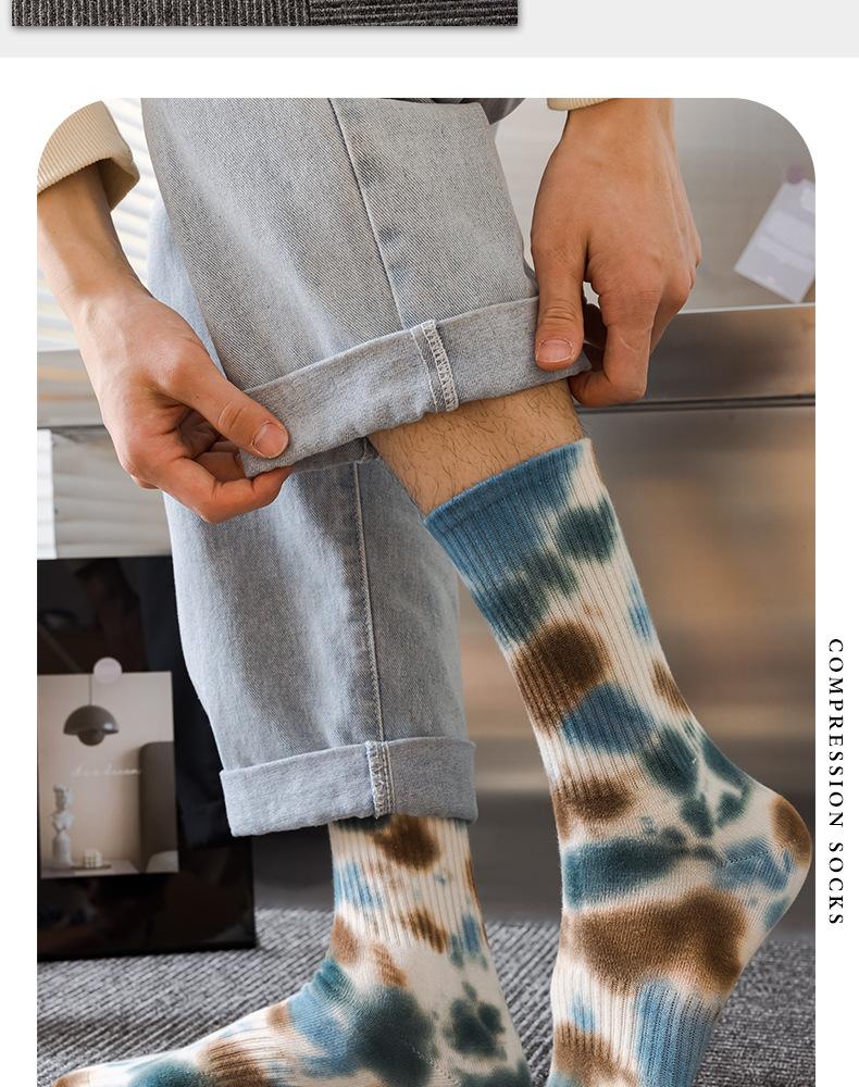 Compra Calcetines de otoño e invierno para hombre, nuevos calcetines de longitud media con efecto tie-dye, moda europea y americana, calcetines altos deportivos de calle de algodón con puntos ondulados, transpirables. al por mayor en Joom.pro