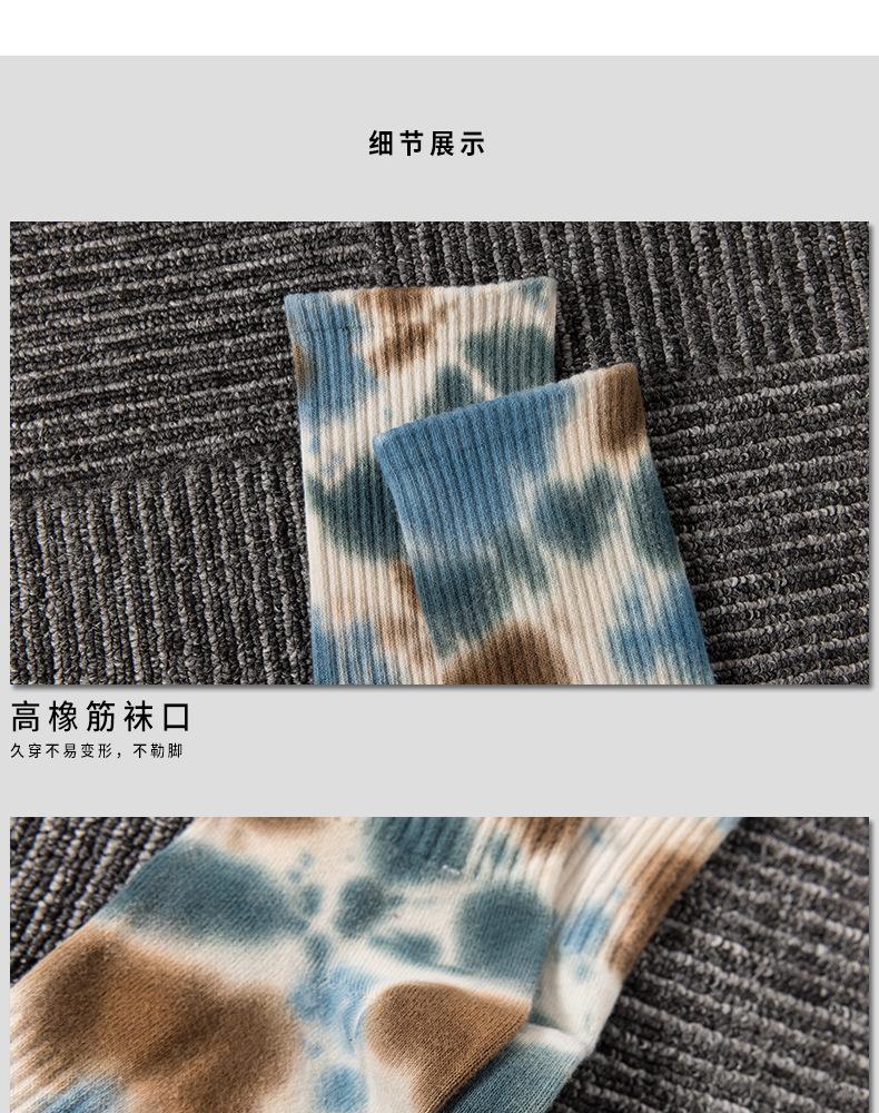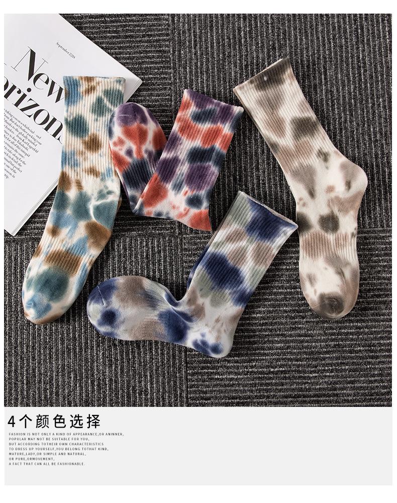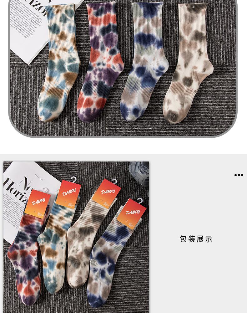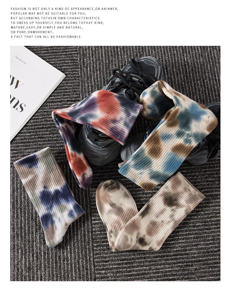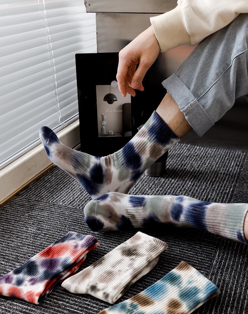 Compra Calcetines de otoño e invierno para hombre, nuevos calcetines de longitud media con efecto tie-dye, moda europea y americana, calcetines altos deportivos de calle de algodón con puntos ondulados, transpirables. al por mayor en Joom.pro