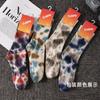 Calcetines de otoño e invierno para hombre, nuevos calcetines de longitud media con efecto tie-dye, moda europea y americana, calcetines altos deportivos de calle de algodón con puntos ondulados, transpirables.