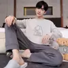 Pijamas de Primavera y Otoño de Manga Larga para Hombre y Mujer Holgados Ropa de Casa Conjunto de Pantalón para DIY