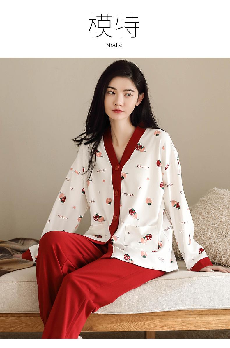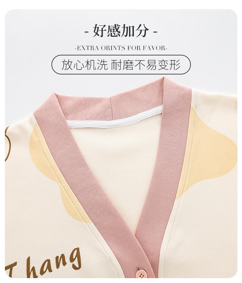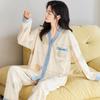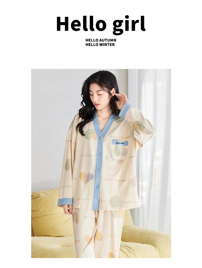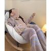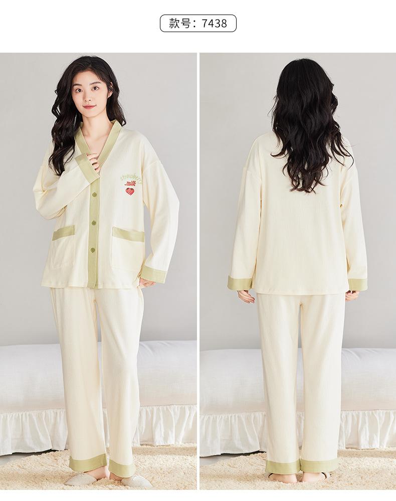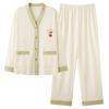 Pijamas de Algodón Puro para Mujer Primavera y Otoño Gruesos de Manga Larga Pantalones Sencillos Casuales Cuello Kimono Cárdigan Otoño e Invierno Ropa de Casa para Mujer