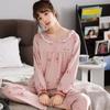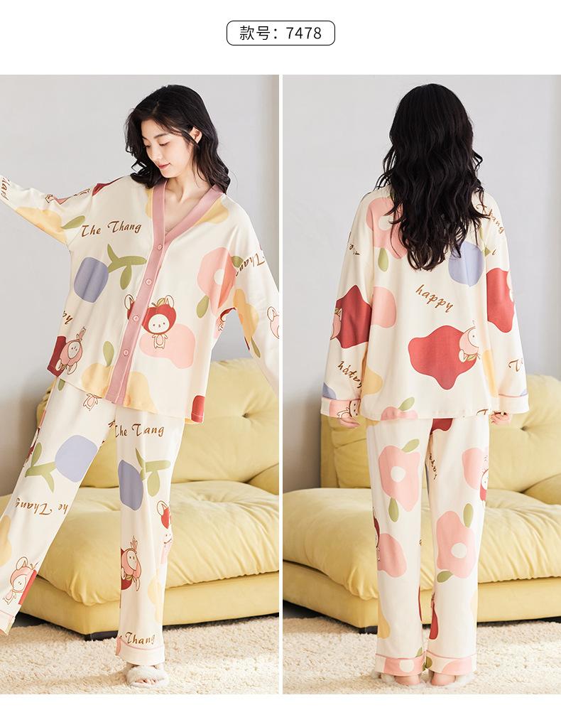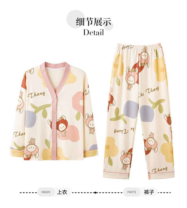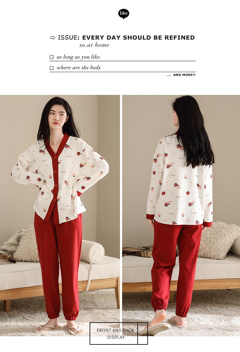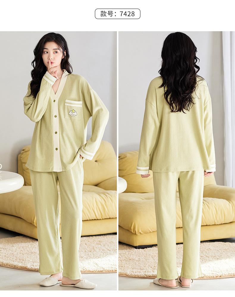 Pijamas de Algodón Puro para Mujer Primavera y Otoño Gruesos de Manga Larga Pantalones Sencillos Casuales Cuello Kimono Cárdigan Otoño e Invierno Ropa de Casa para Mujer