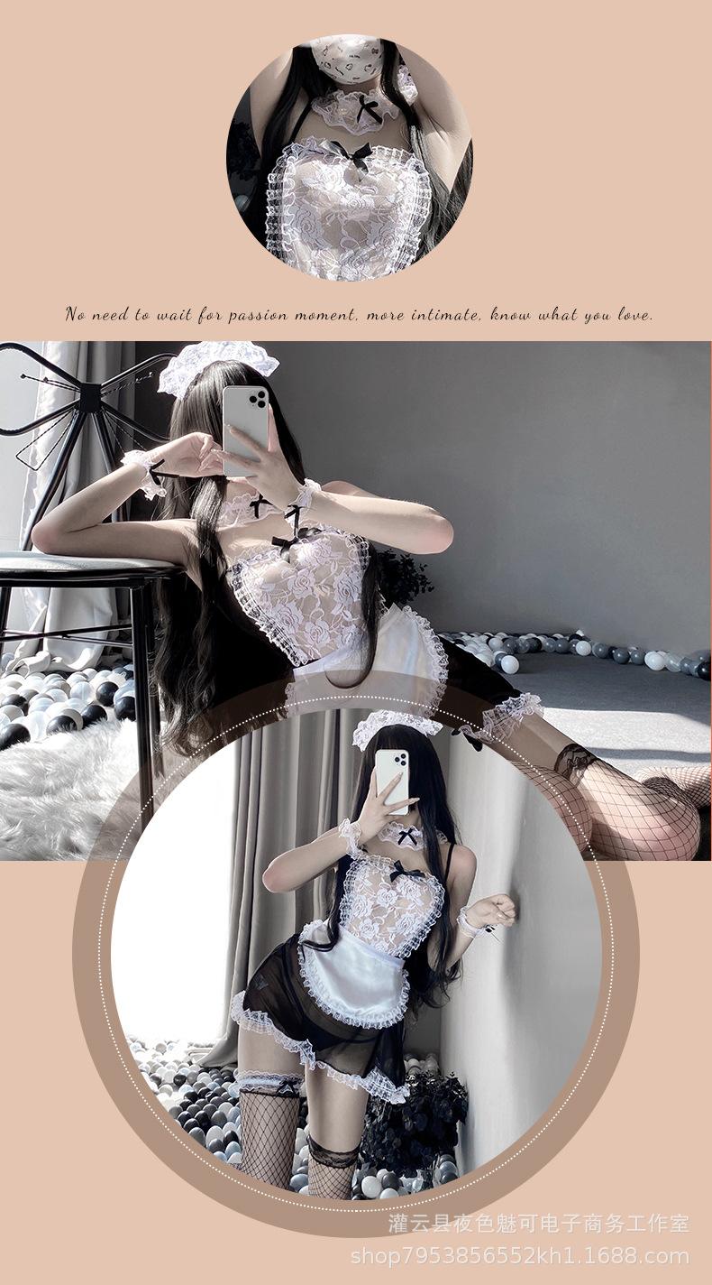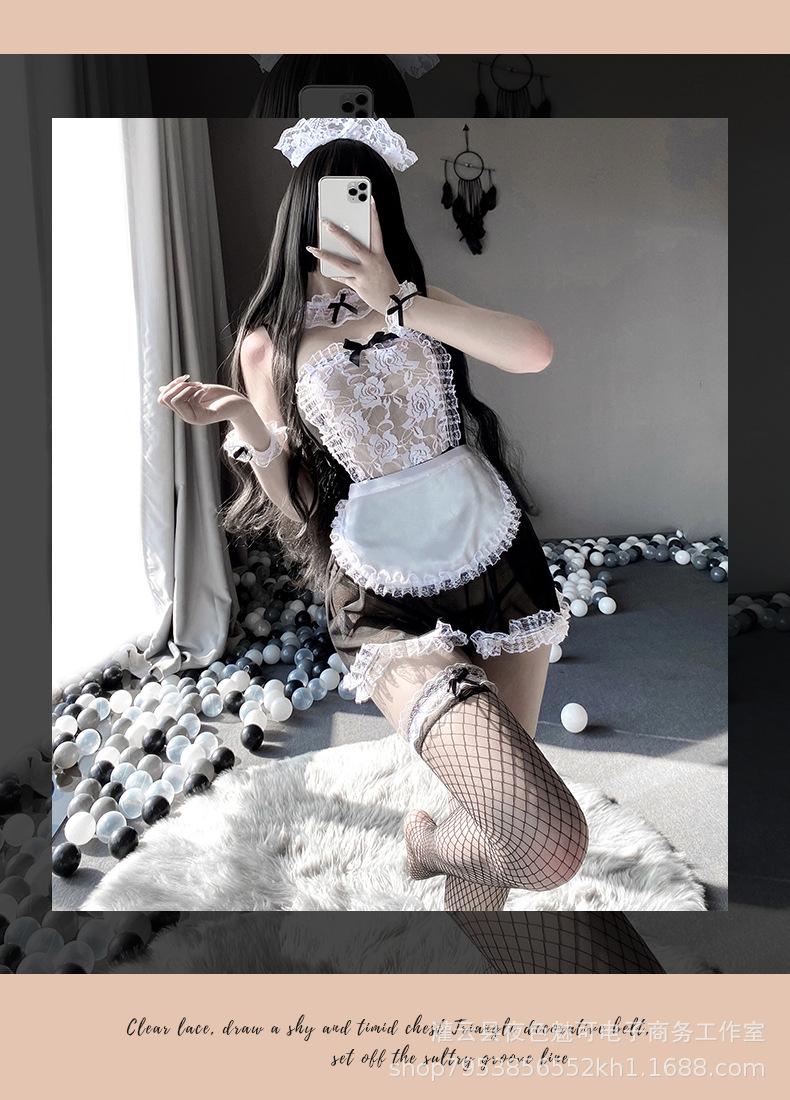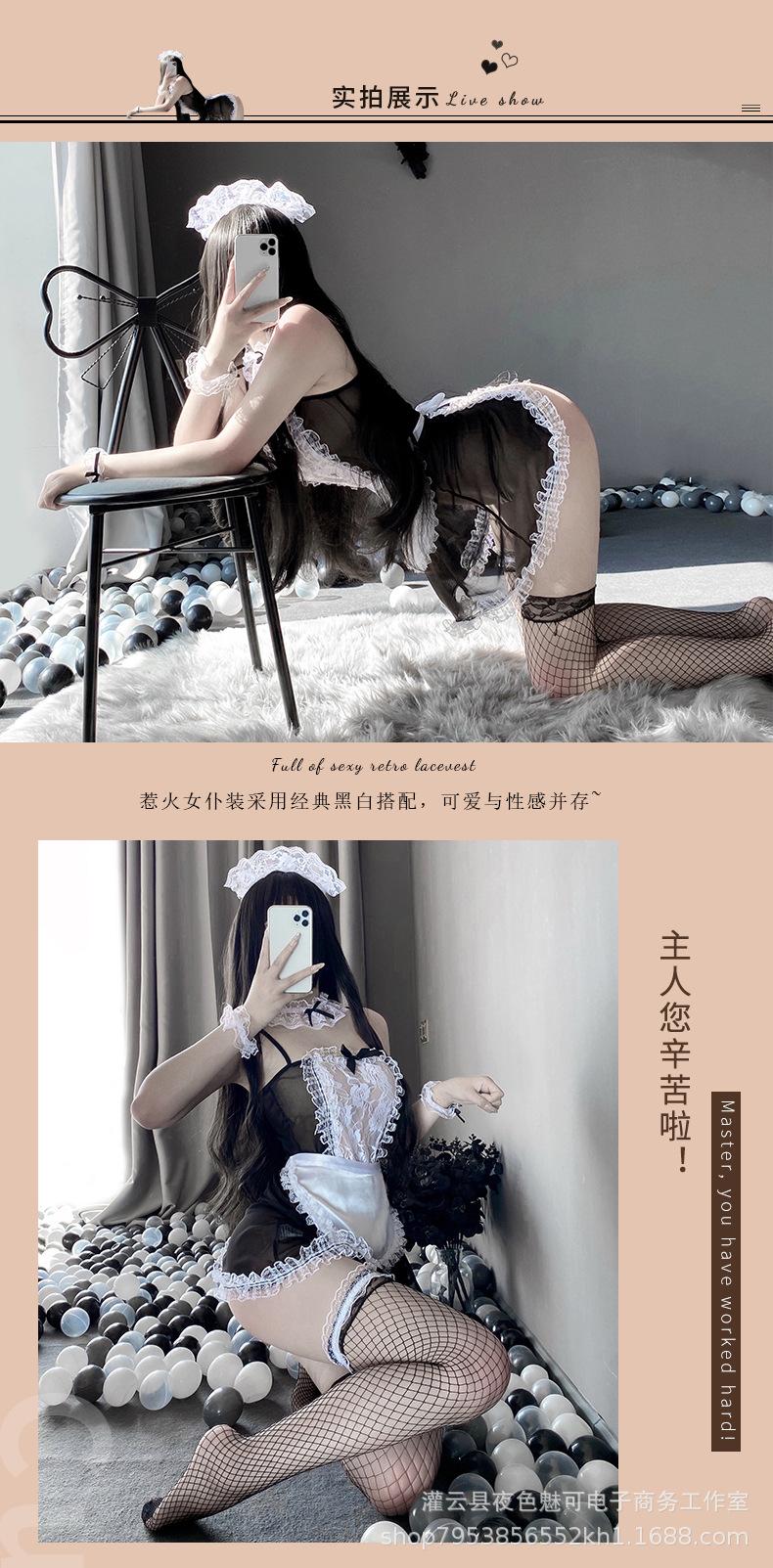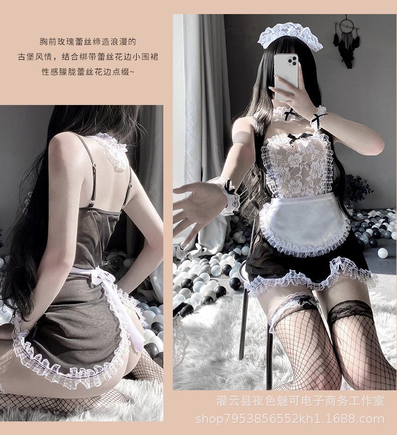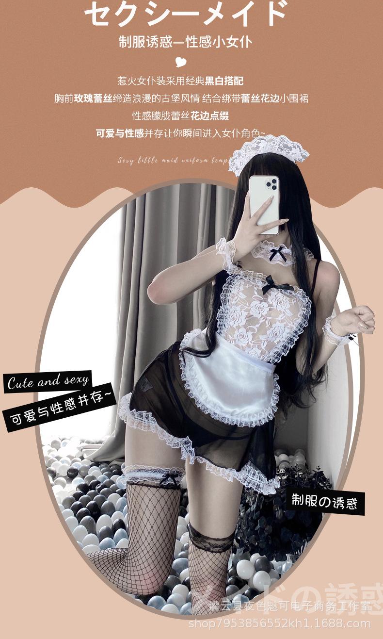 Lencería Sexy Juego de Roles Uniforme Sexy Tentación Talla Extra Traje de Sirvienta Europeo y Americano 1298 Dropshipping Encantador
