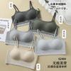 Ropa interior cómoda de grosor medio sin marcas con hilo de color contrastante, push-up para busto pequeño, con tira de gelatina, soporte suave, sin aros