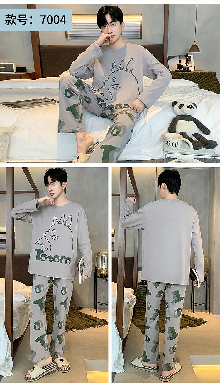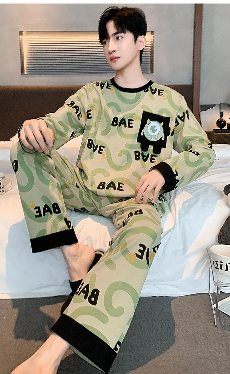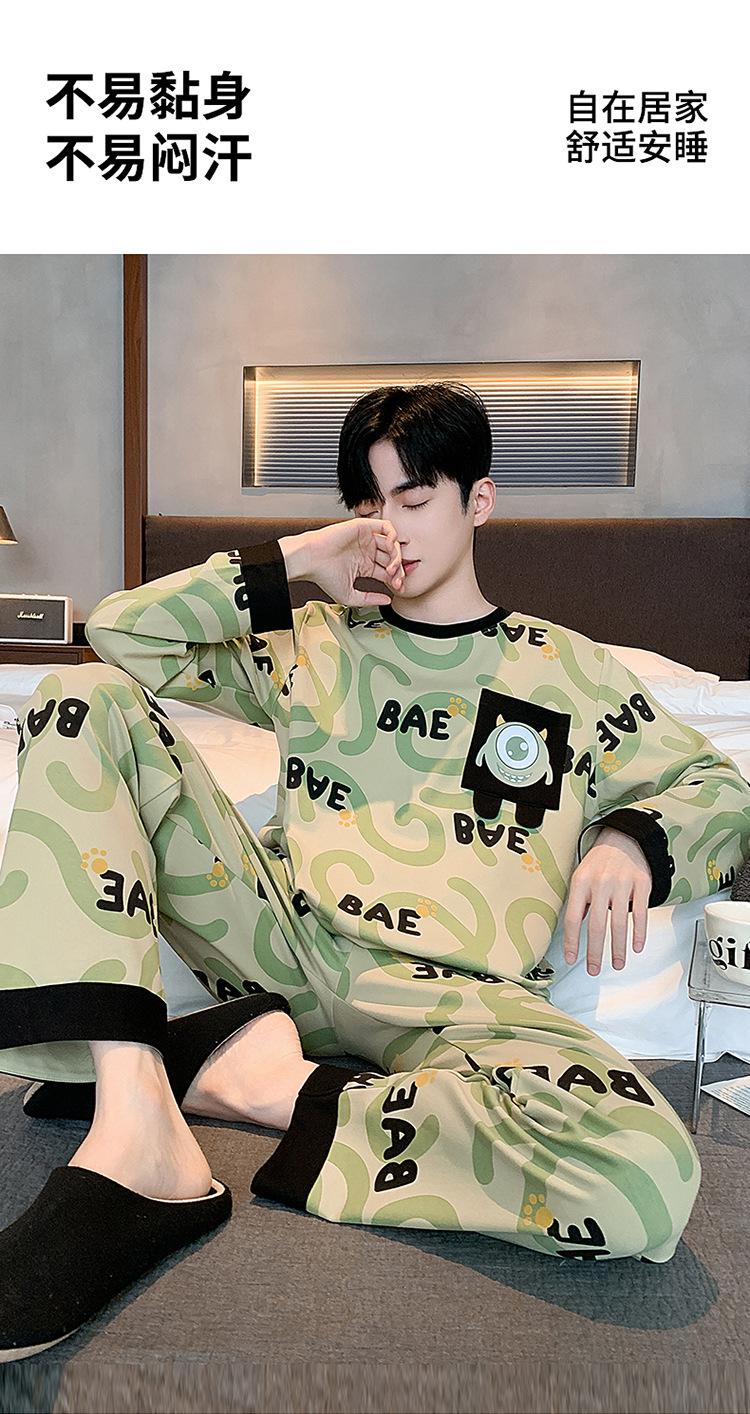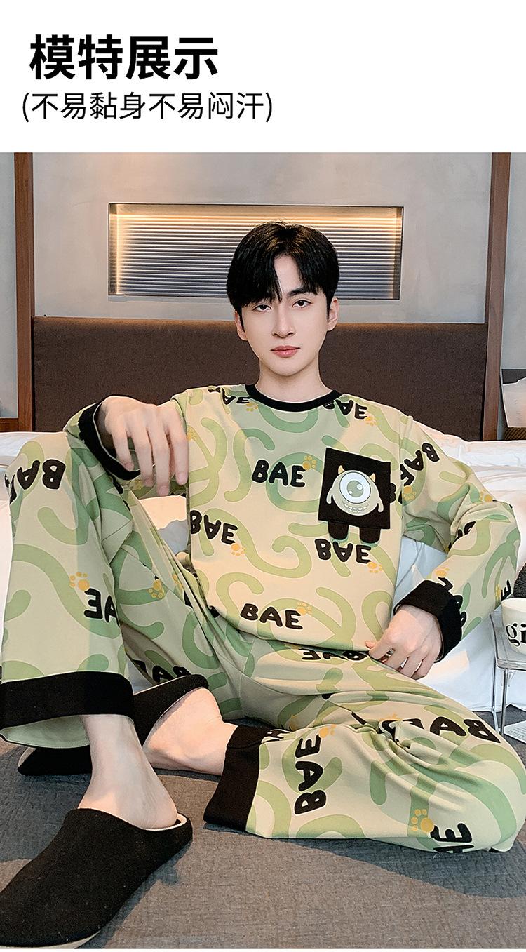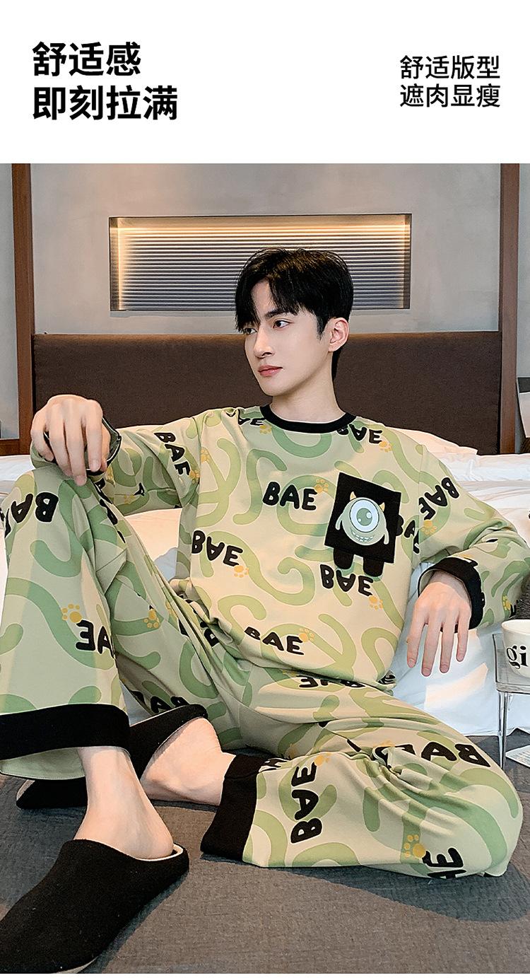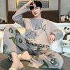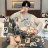 Pijama para hombre de nueva llegada 2024 Primavera y Otoño Dibujos animados Estilo coreano Casual Cuello redondo Ropa para el hogar Suelto Talla grande Traje para usar en el exterior