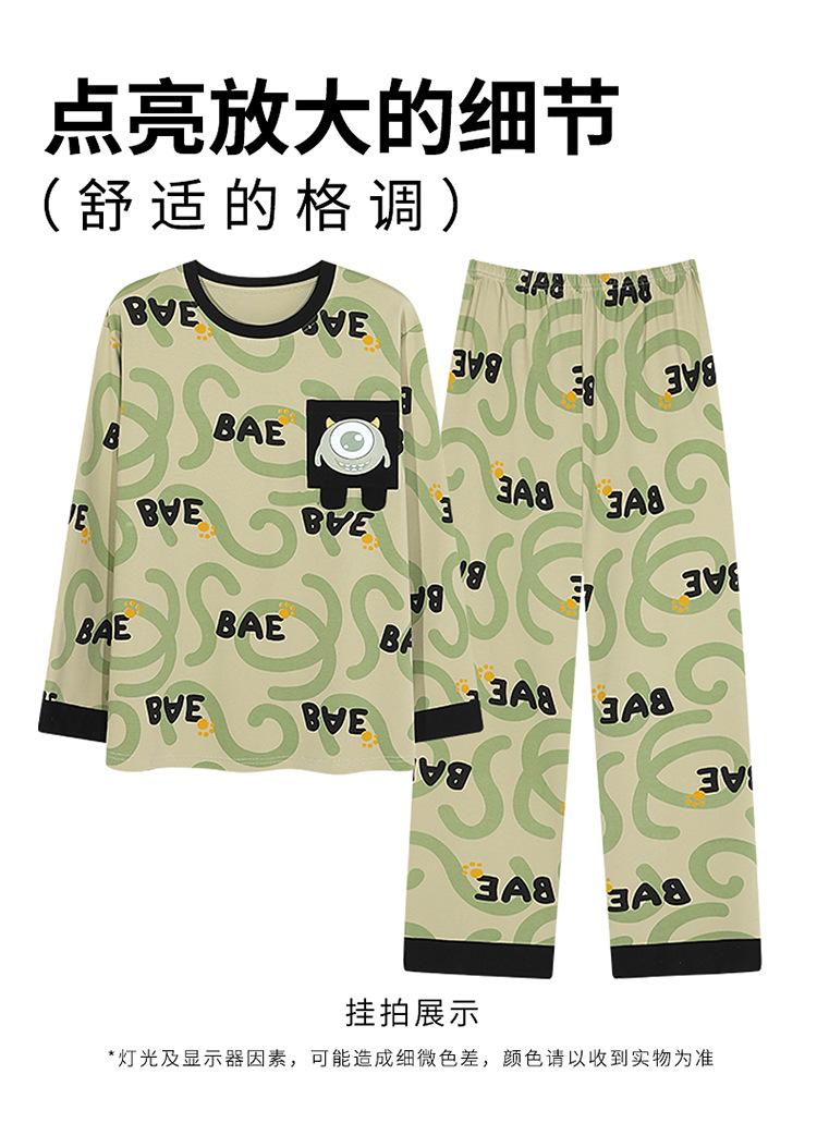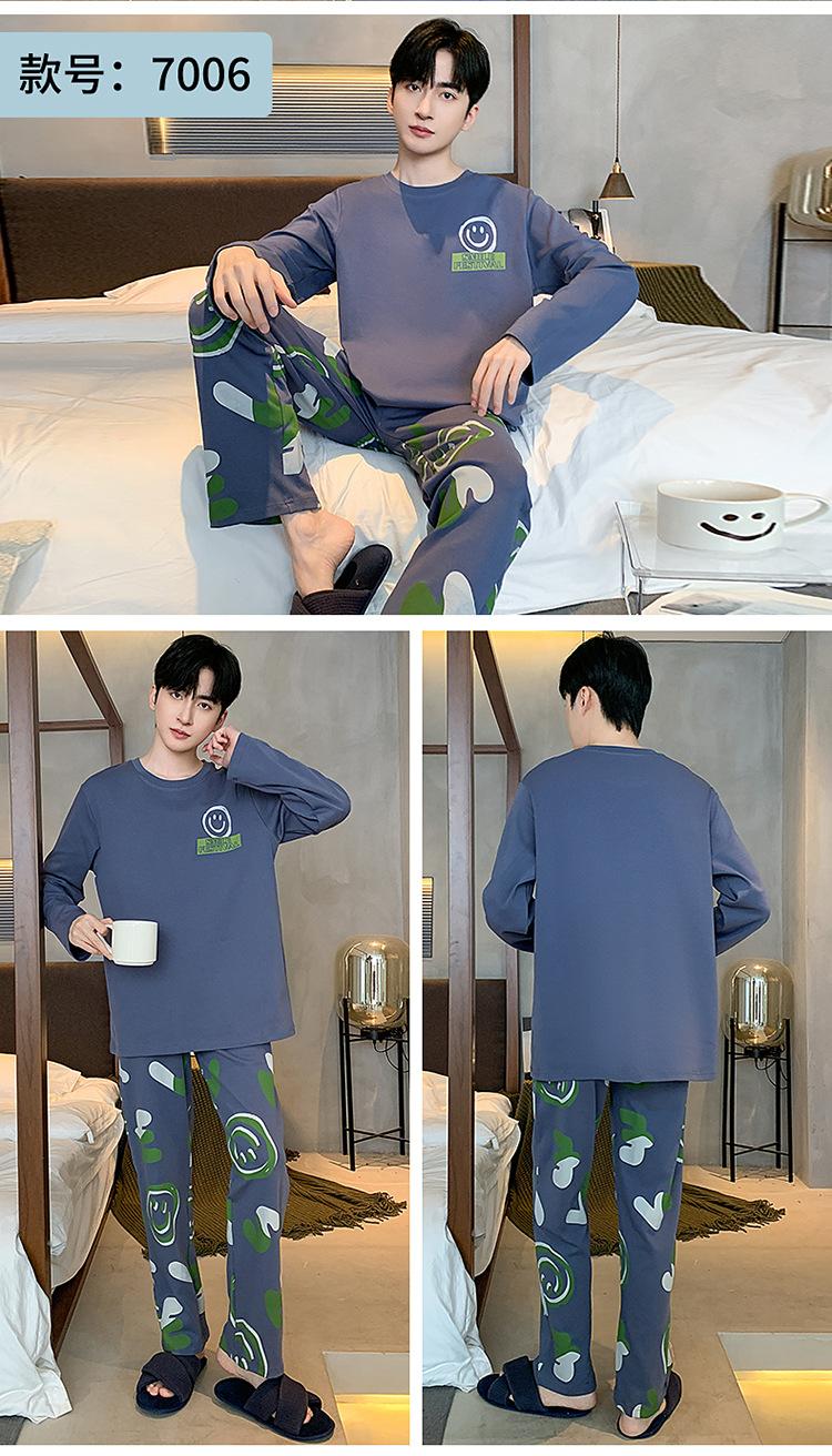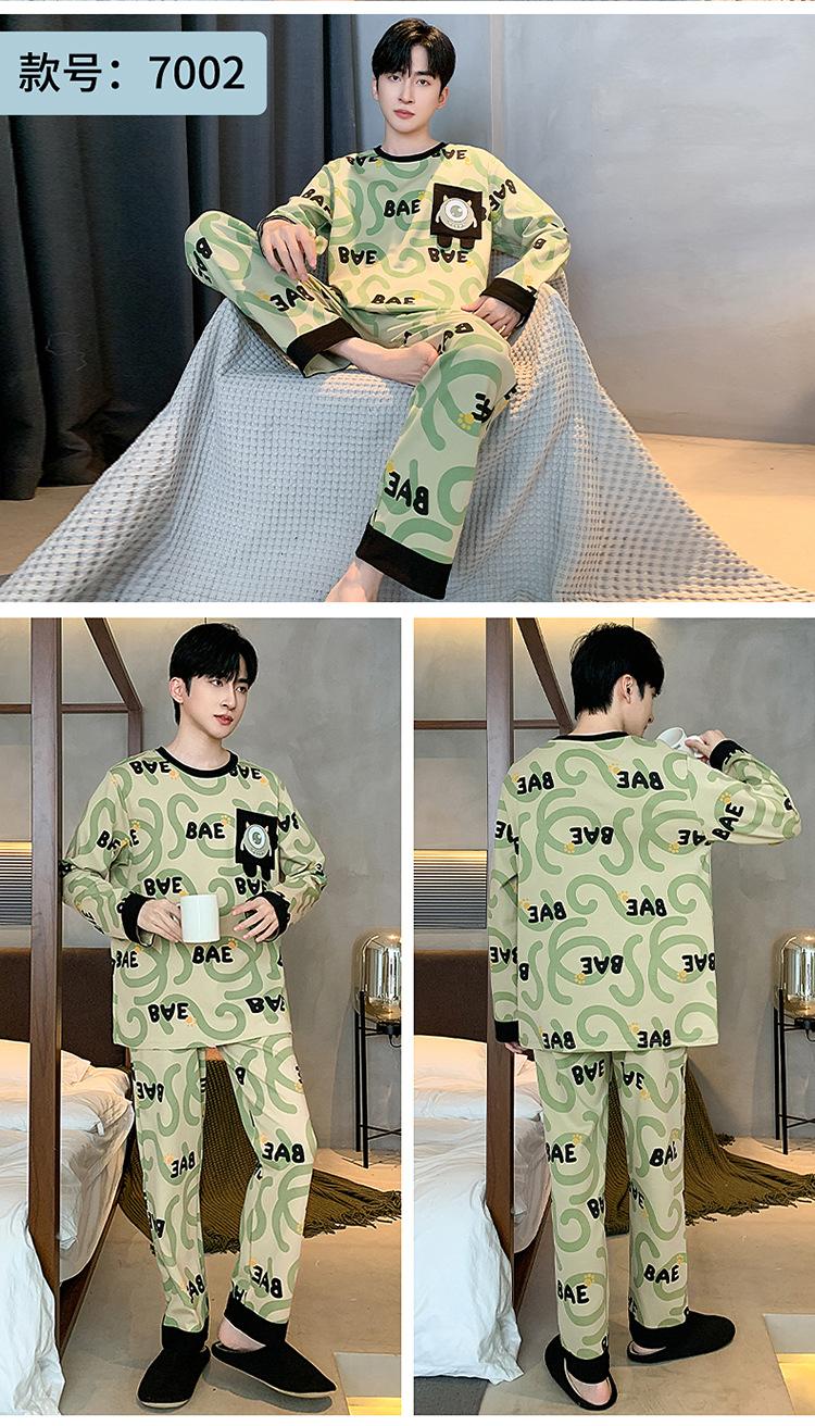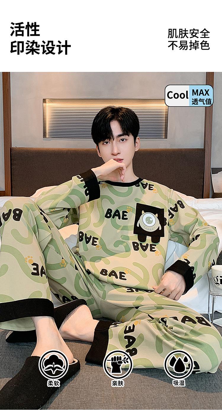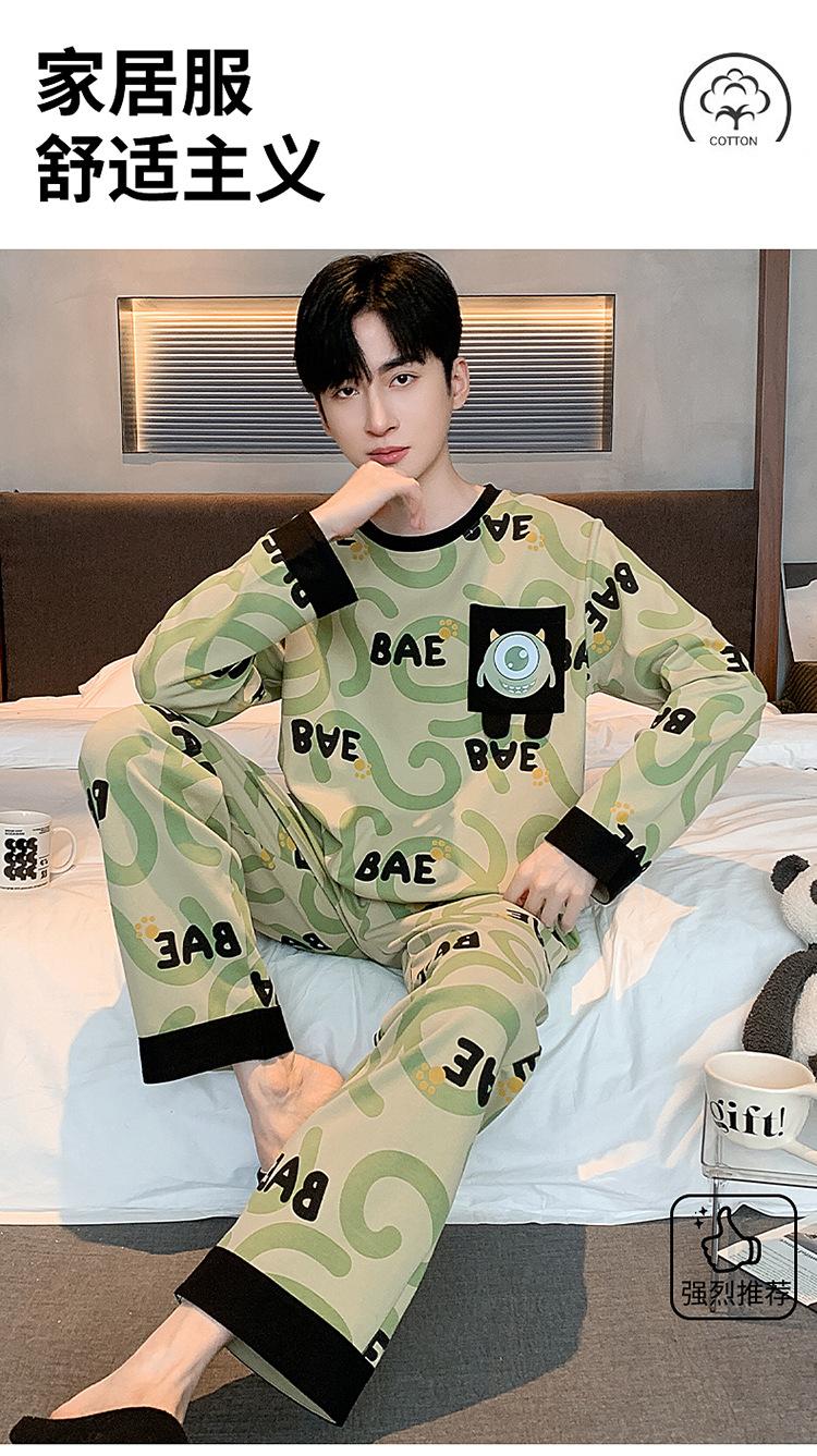 Pijama para hombre de nueva llegada 2024 Primavera y Otoño Dibujos animados Estilo coreano Casual Cuello redondo Ropa para el hogar Suelto Talla grande Traje para usar en el exterior