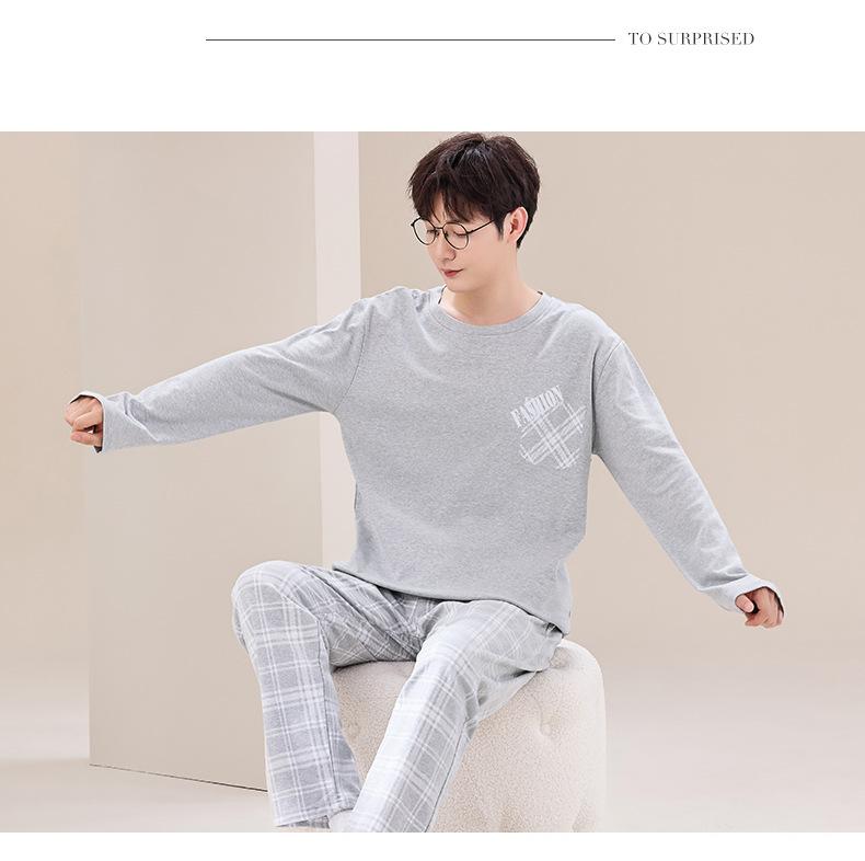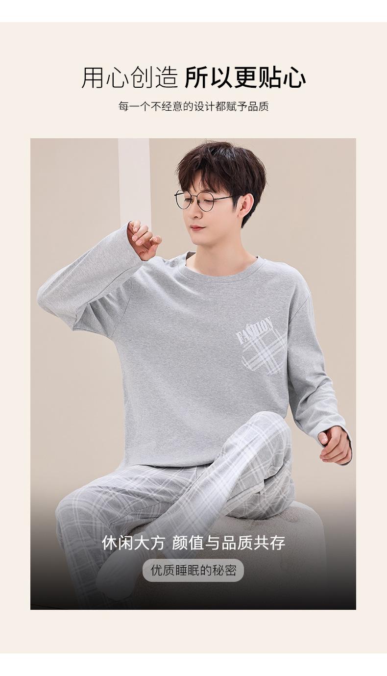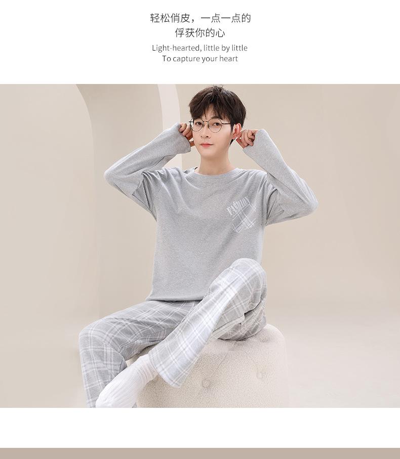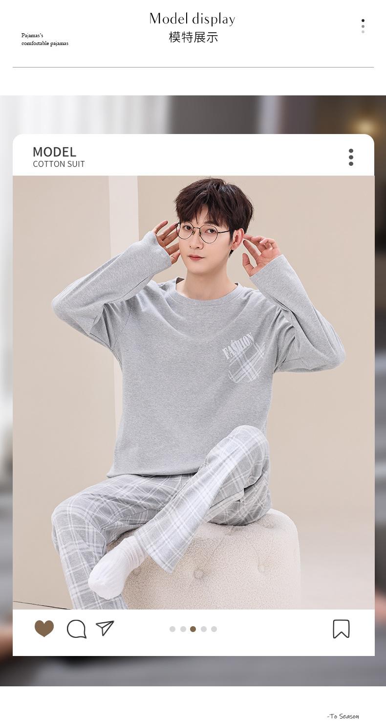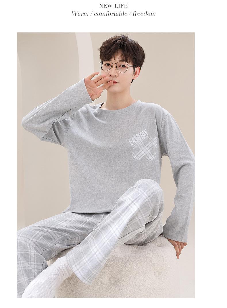 Compra Pijama de algodón de manga larga para hombre, traje de primavera, ropa de casa, algodón juvenil, jersey de algodón grueso para otoño y primavera. al por mayor en Joom.pro