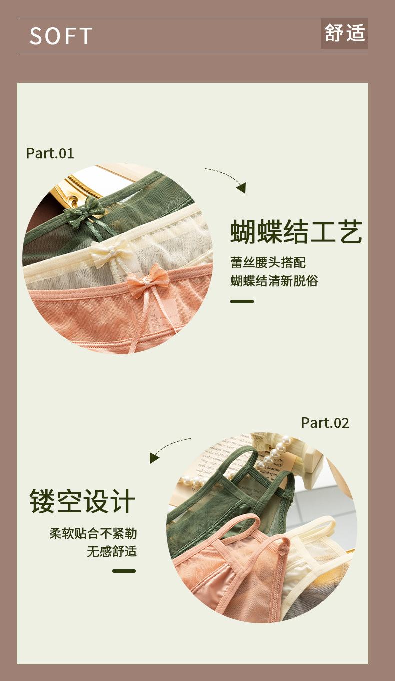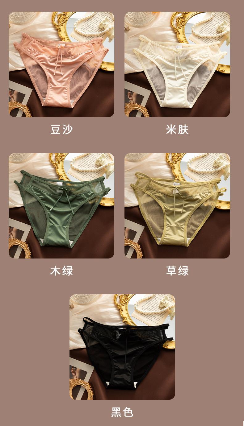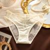 Ropa interior estilo Pure Desire, ropa interior de seda helada para niña, calzoncillos finos de cintura media, transpirables, ahuecados, cómodos, sin costuras, con encaje