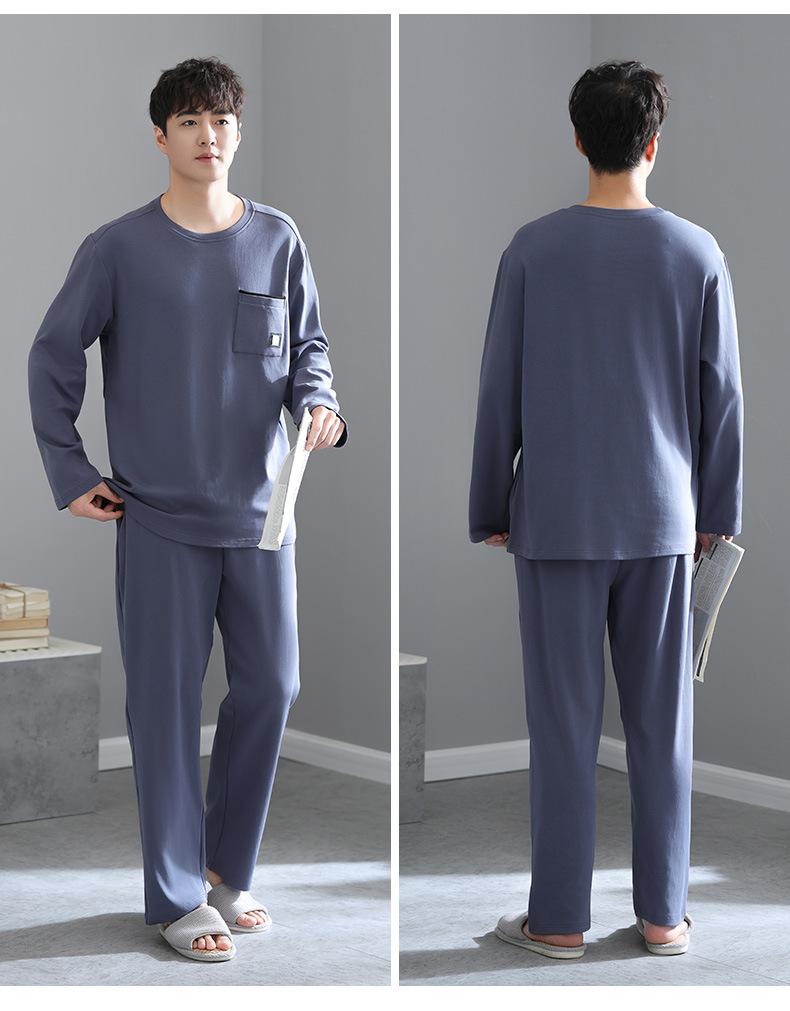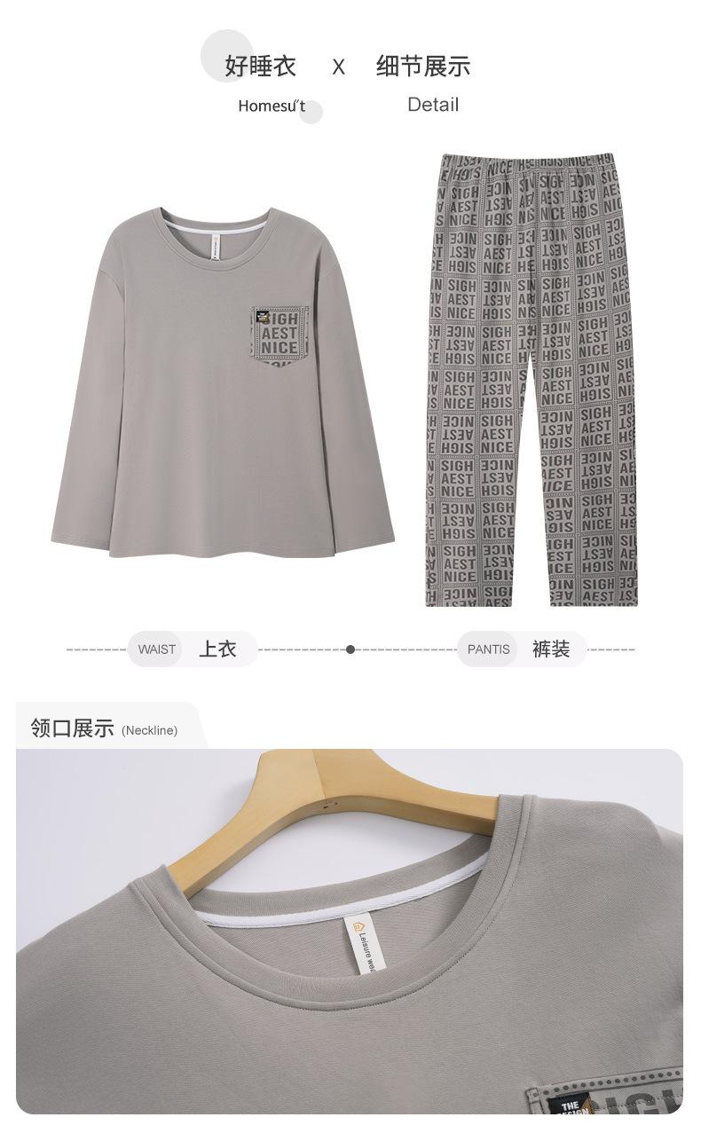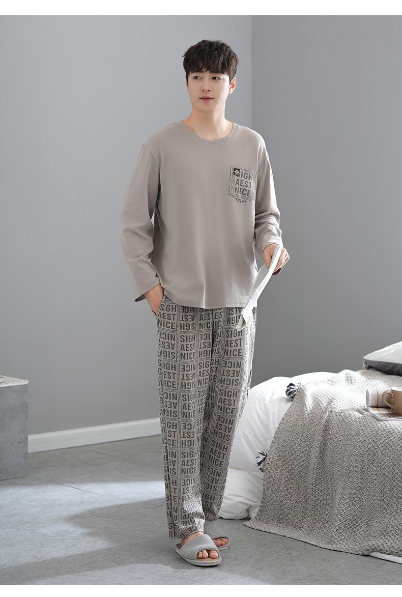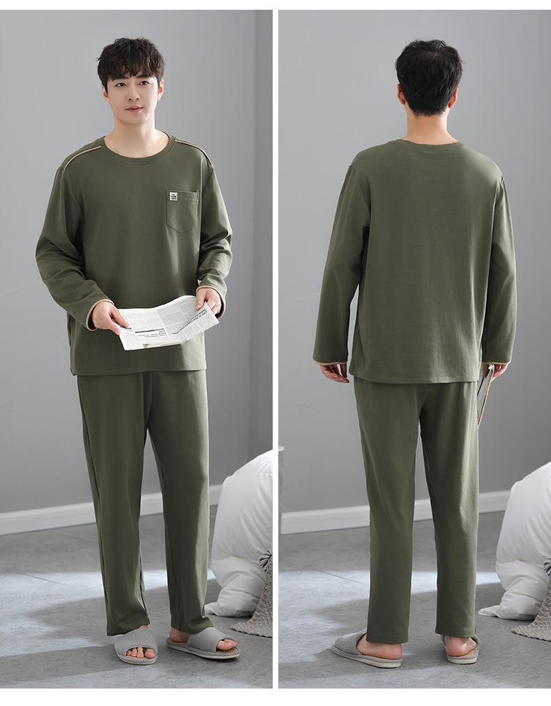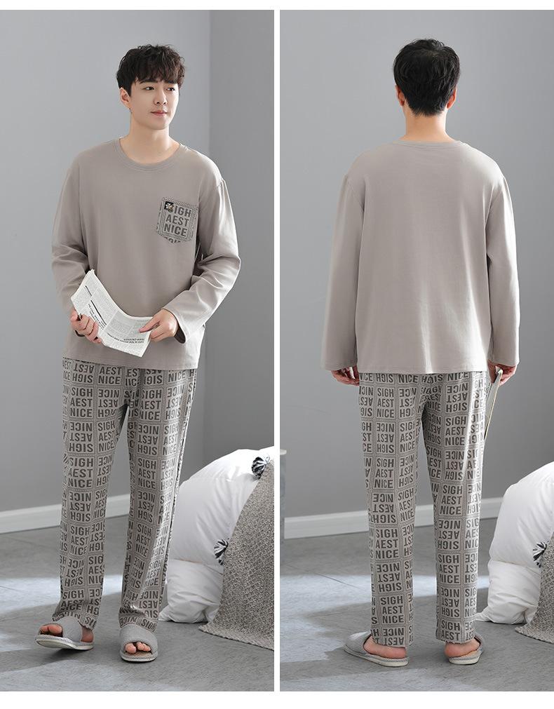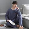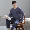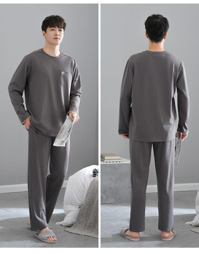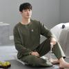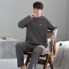 Primavera y Otoño Nuevo Estilo Algodón Manga Larga Holgado Cuello Redondo Pijama para Hombre para Jóvenes Exterior Sencillo Ropa de Casa para Traje Hombre