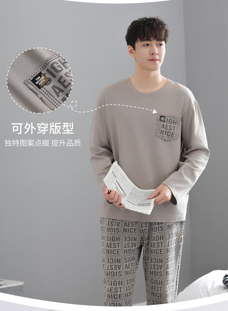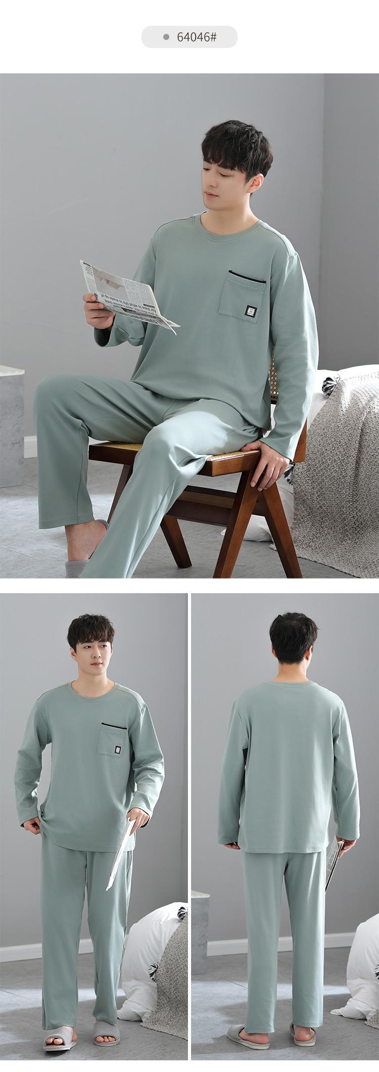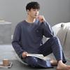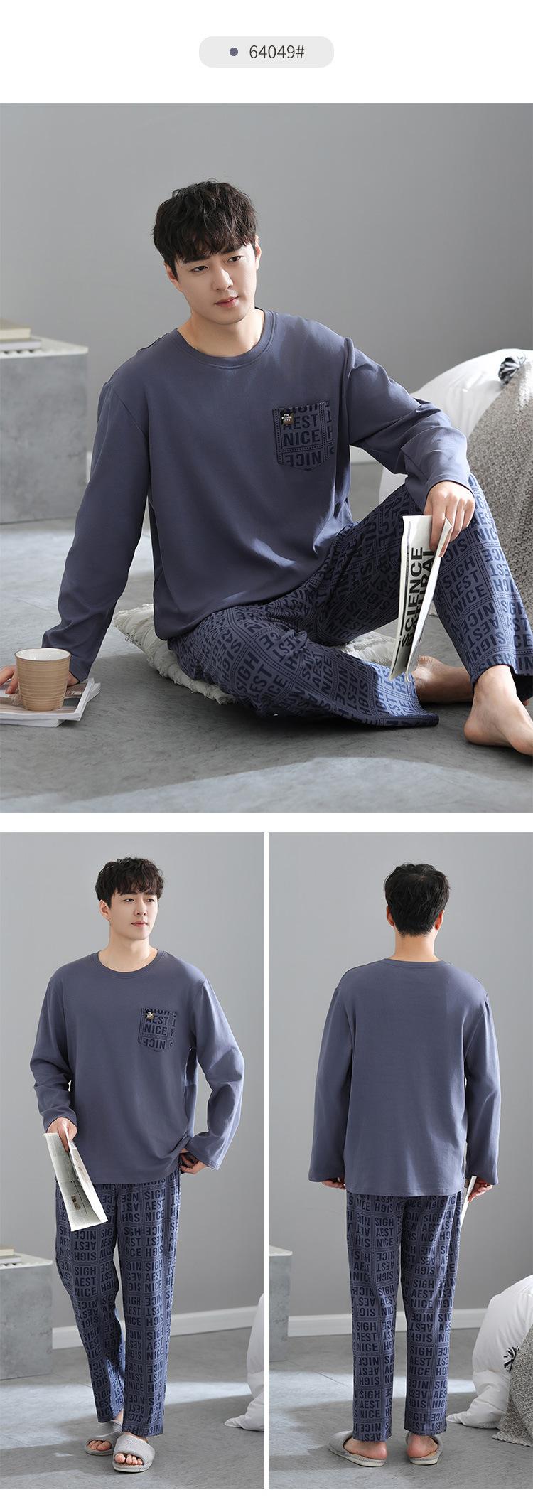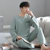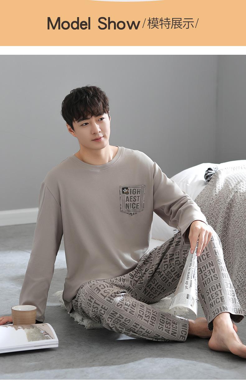 Primavera y Otoño Nuevo Estilo Algodón Manga Larga Holgado Cuello Redondo Pijama para Hombre para Jóvenes Exterior Sencillo Ropa de Casa para Traje Hombre