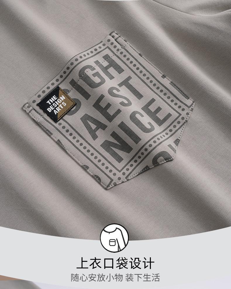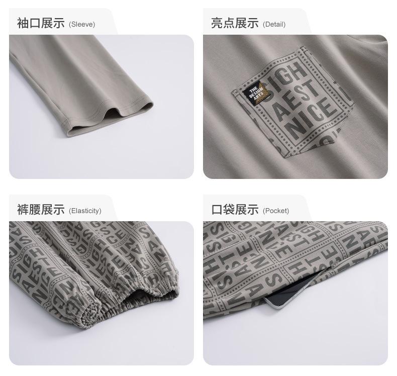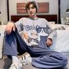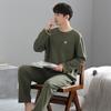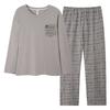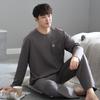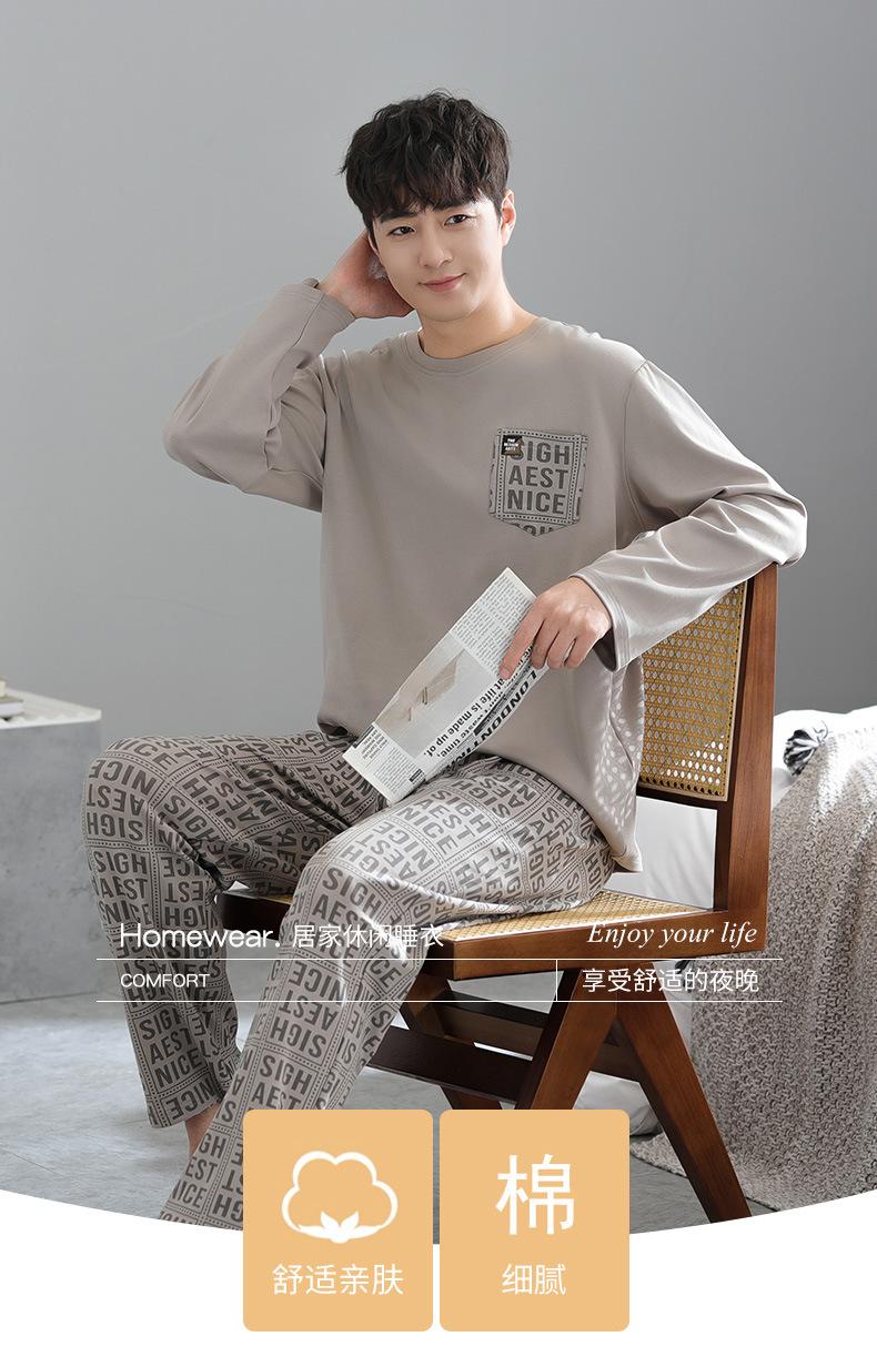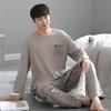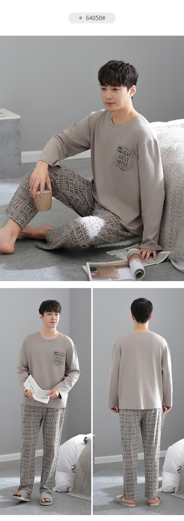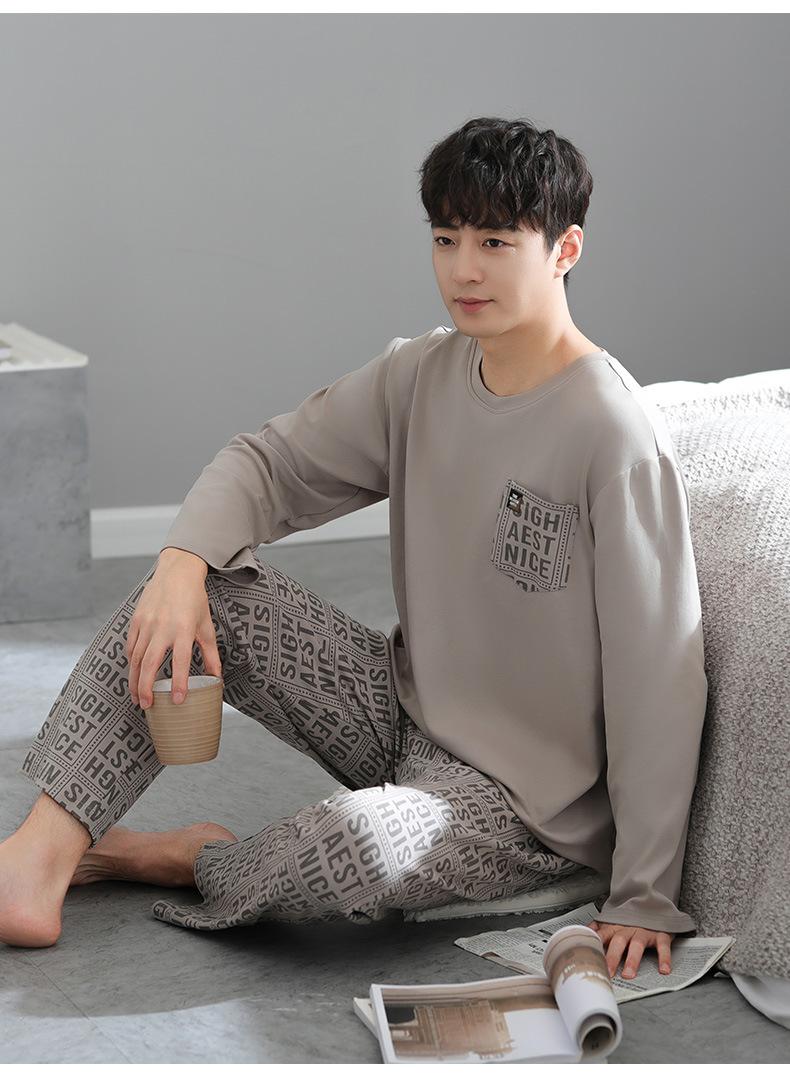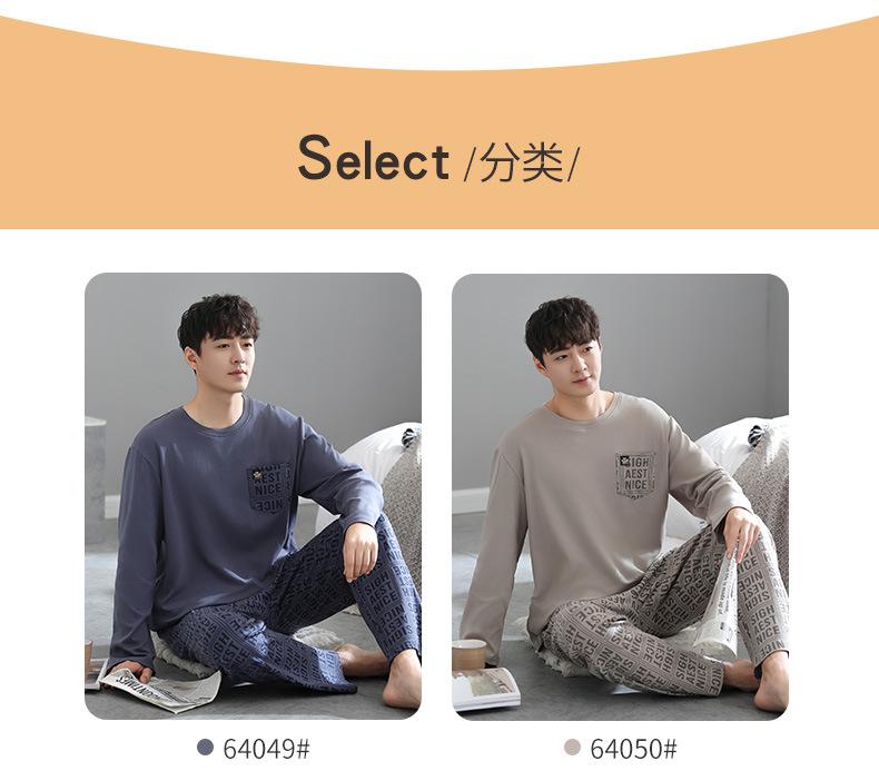 Primavera y Otoño Nuevo Estilo Algodón Manga Larga Holgado Cuello Redondo Pijama para Hombre para Jóvenes Exterior Sencillo Ropa de Casa para Traje Hombre