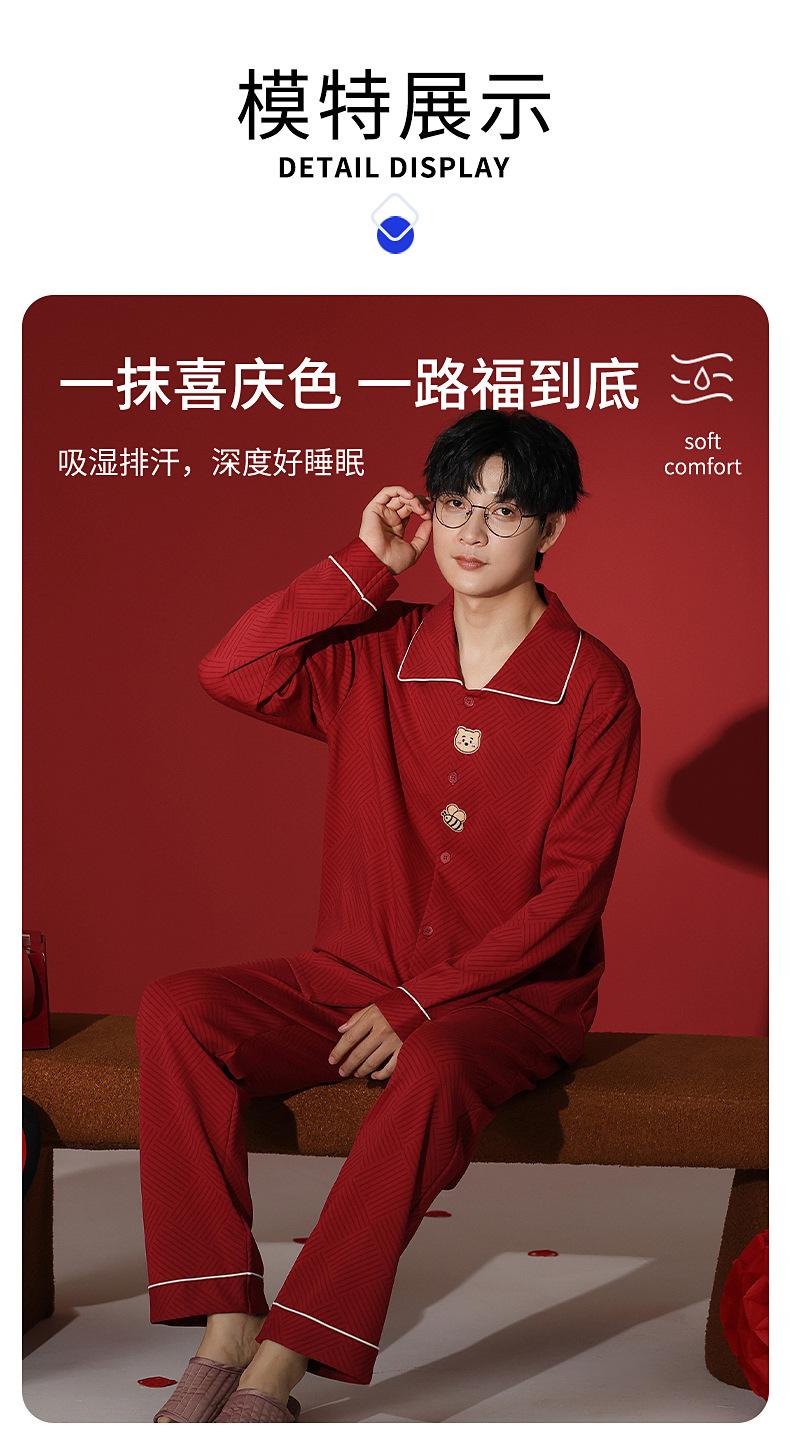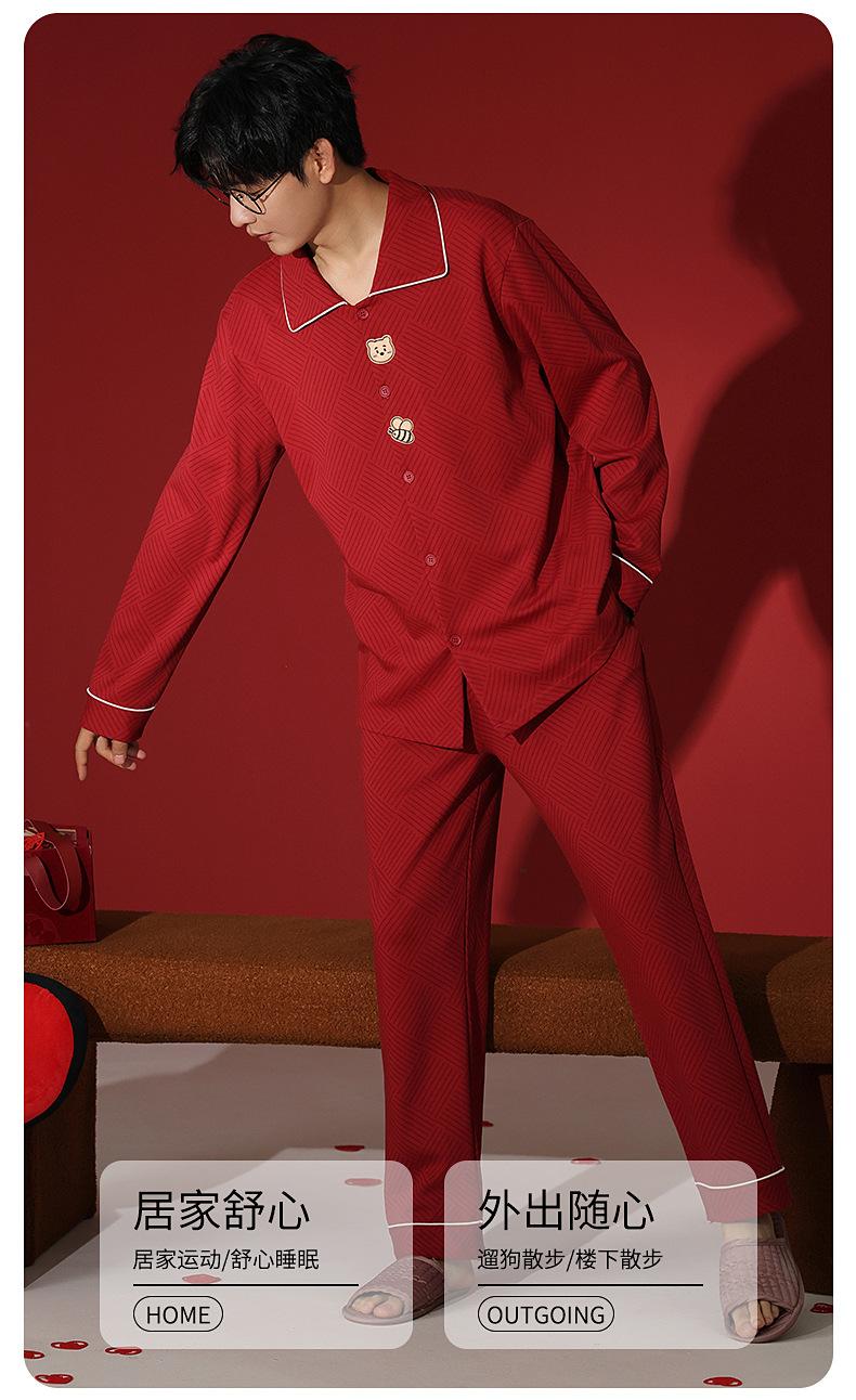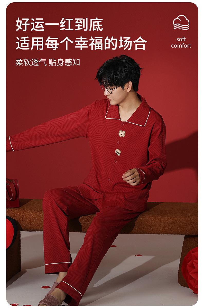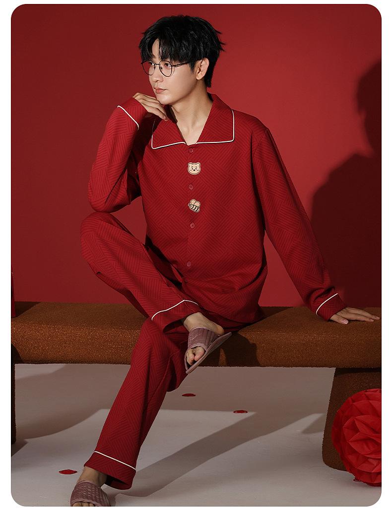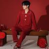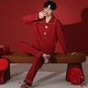 Compra Pijama de hombre de algodón puro, primavera, otoño e invierno, cárdigan de manga larga, ropa de casa, cárdigan rojo de dos piezas. al por mayor en Joom.pro