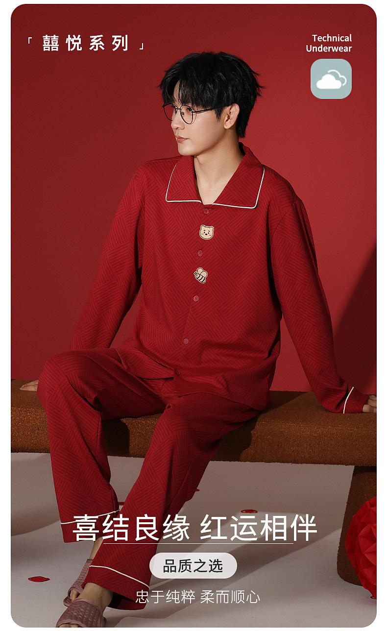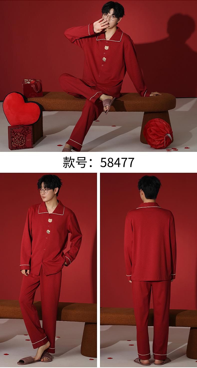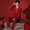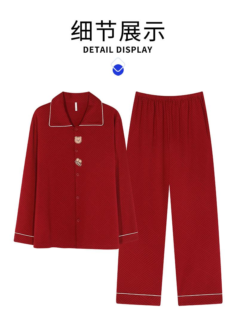 Compra Pijama de hombre de algodón puro, primavera, otoño e invierno, cárdigan de manga larga, ropa de casa, cárdigan rojo de dos piezas. al por mayor en Joom.pro