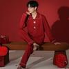 Pijama de hombre de algodón puro, primavera, otoño e invierno, cárdigan de manga larga, ropa de casa, cárdigan rojo de dos piezas.