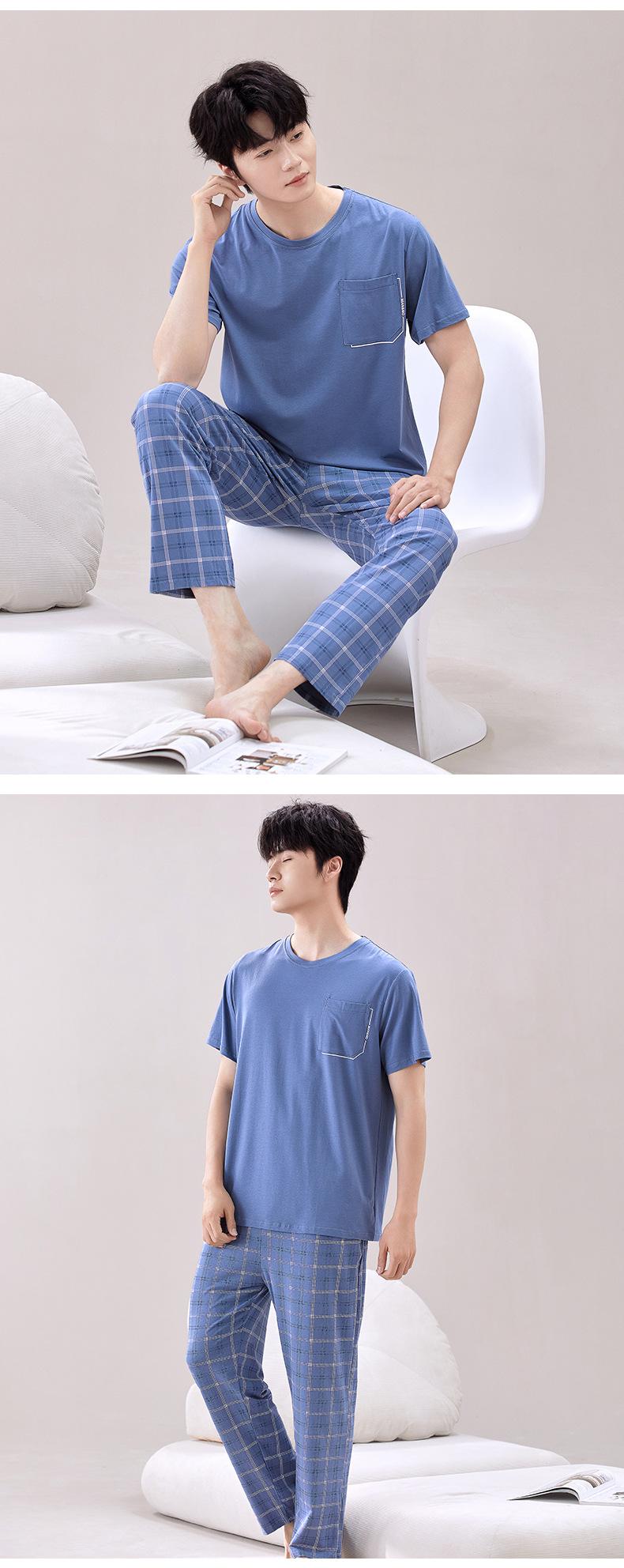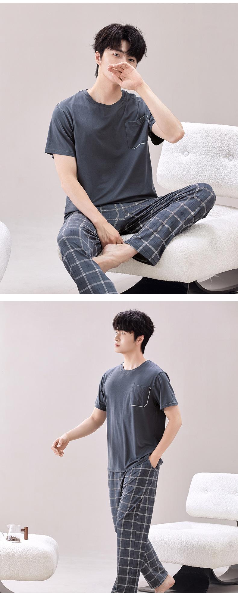 Pijama holgado de algodón modal antibacteriano de manga corta para hombre, traje informal de verano, ropa de casa, novedad de verano