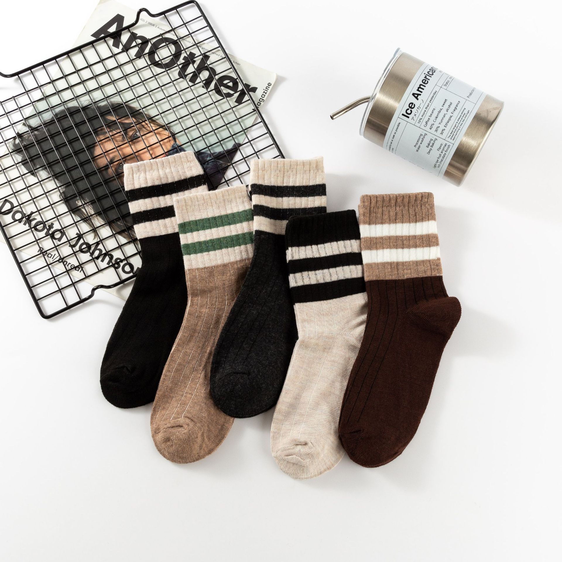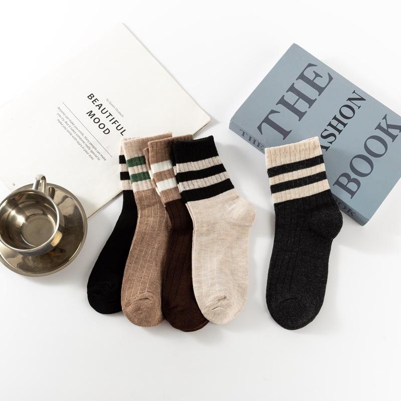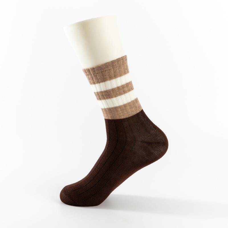Compra Calcetines a Rayas de Color Contrastante Maillard Gris Marrón para Mujer Otoño e Invierno Calcetines de Media Caña Calcetines de Algodón Ins Moda para Usar Calcetín al por mayor en Joom.pro