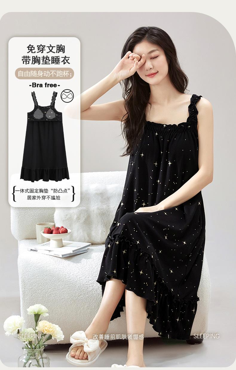 Compra Pijama de algodón de imitación para mujer, camisón fino de verano con almohadilla para el pecho, ropa informal para el hogar, traje de mujer al por mayor en Joom.pro