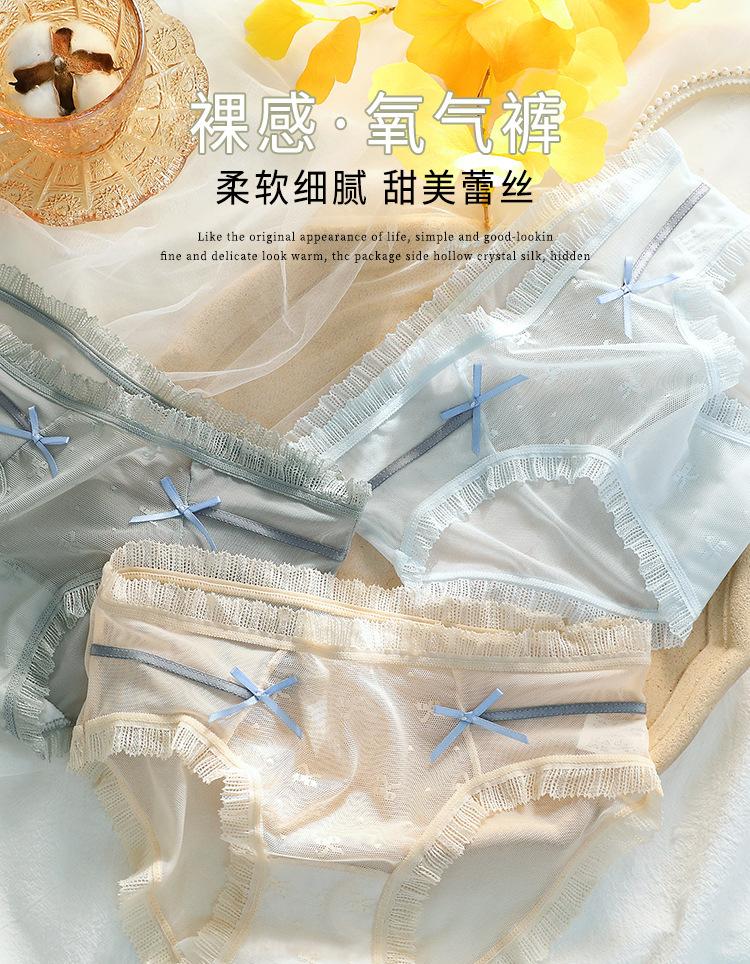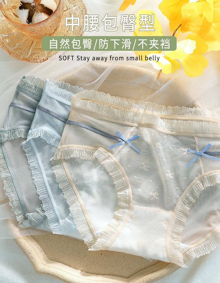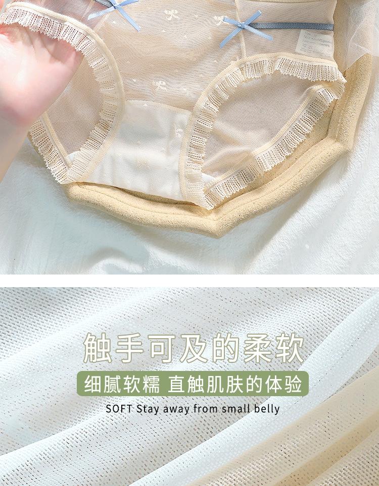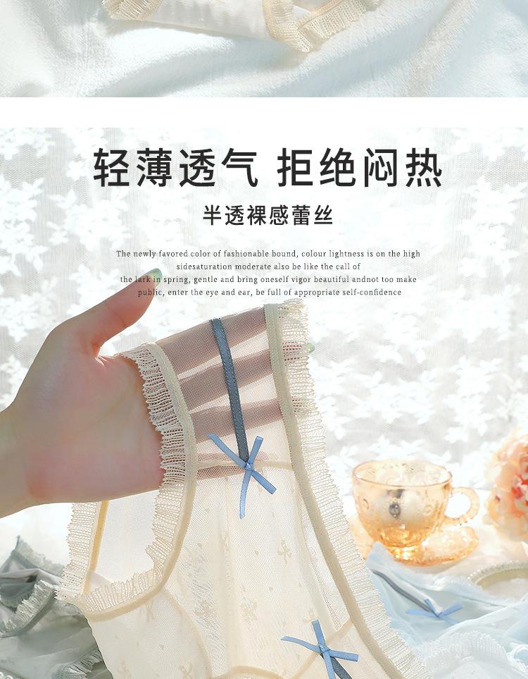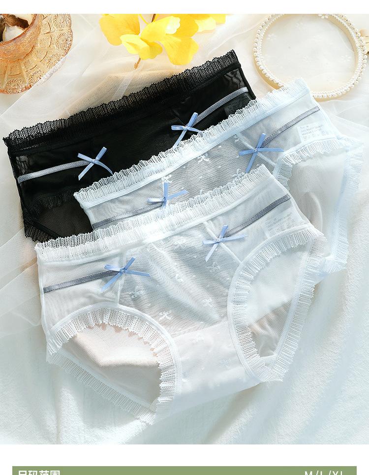 Ropa Interior de Estilo Japonés Sexy Malla Calzones de Algodón Entrepierna Transpirable Ropa Interior Deseo Puro Ropa Interior de Encaje para Mujer