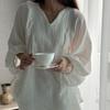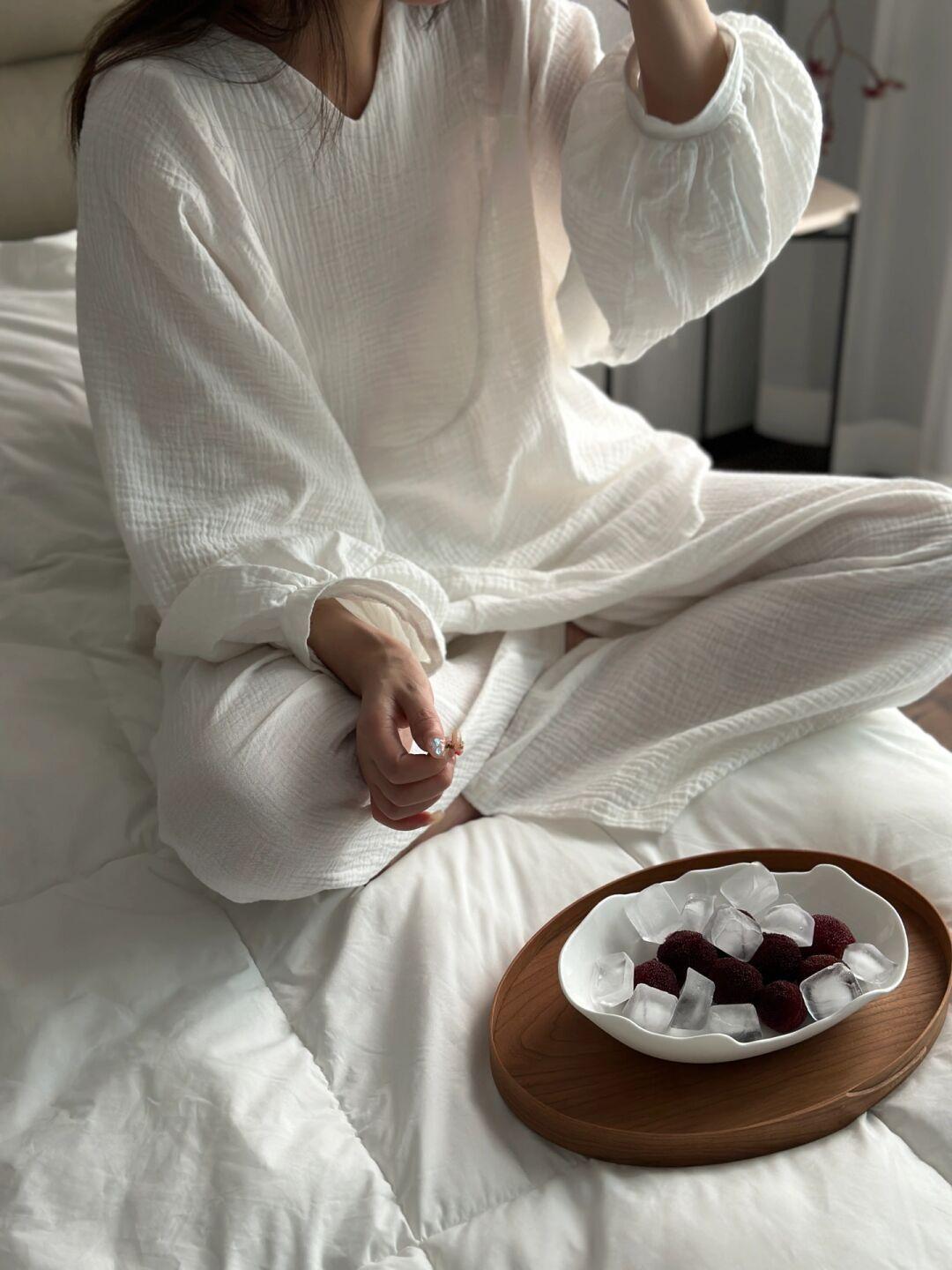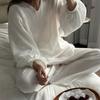 Pijamas de estilo coreano para mujer, estilo perezoso, primavera y otoño, sencillos, de color sólido, agradables para la piel, de manga larga, ropa para el hogar, traje de talla grande