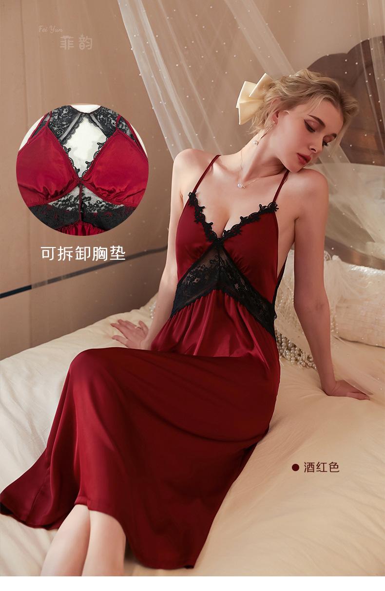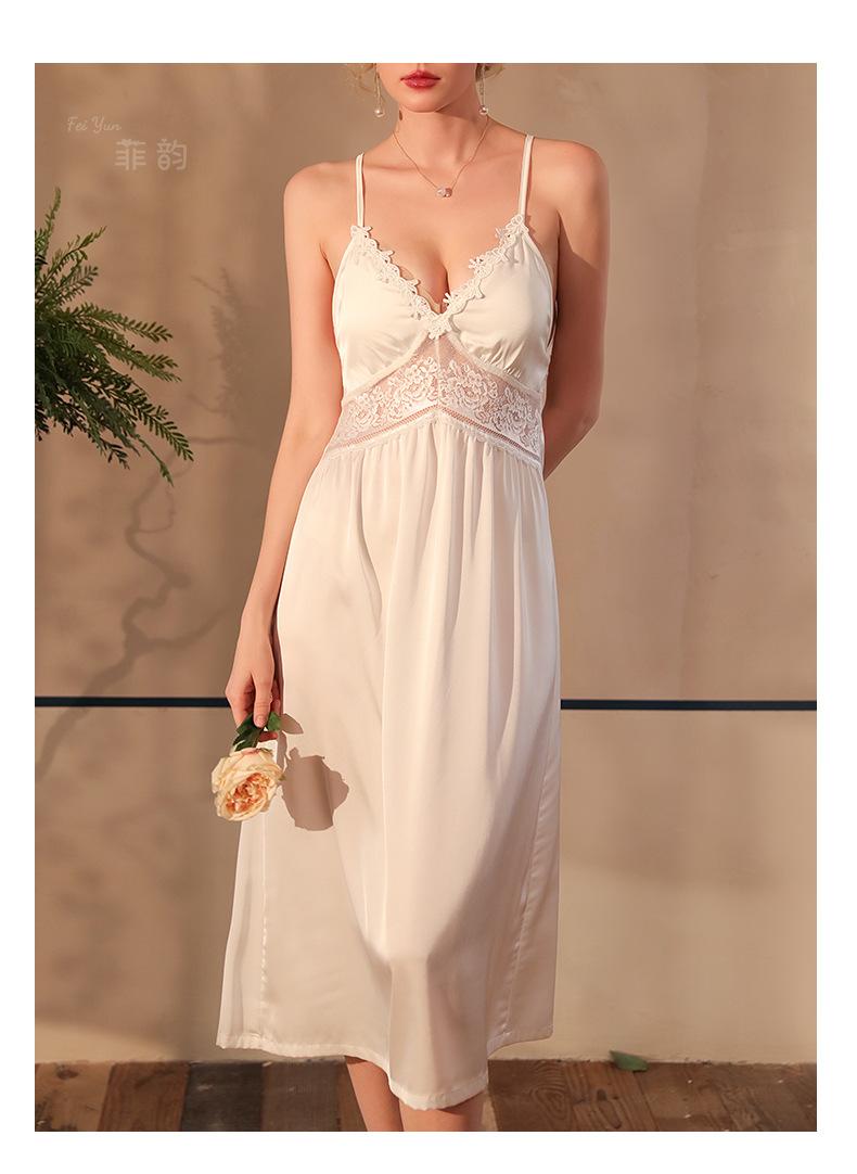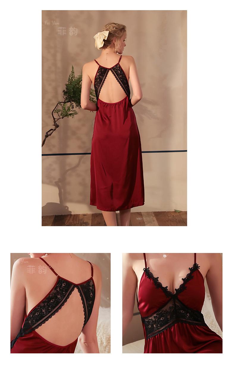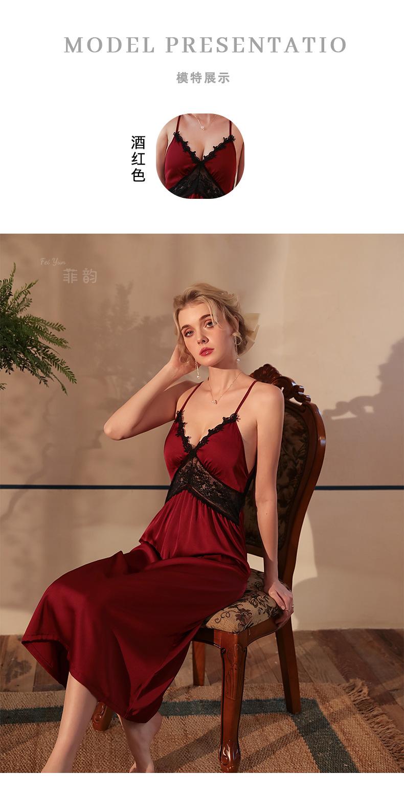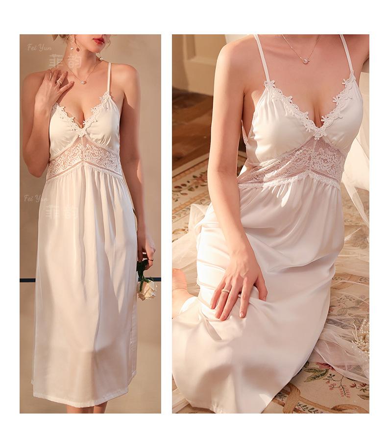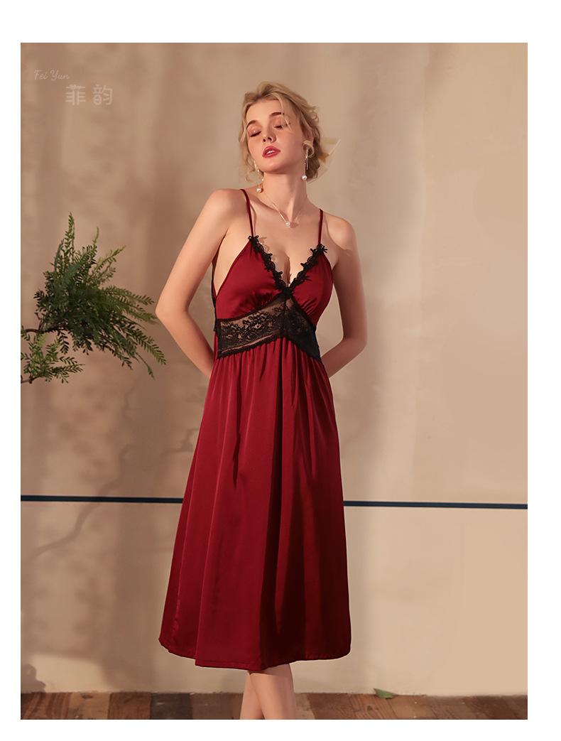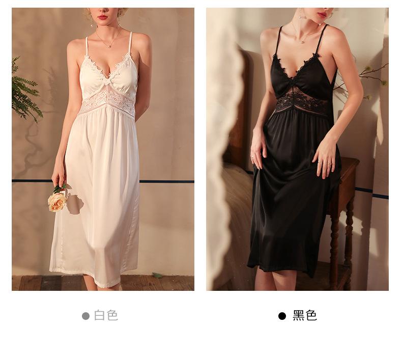 Mufei Sexy Camisón de Satén de Seda de Hielo con Cuello en V Profundo para Mujer, Largo sin Espalda Seductor Ajustado Amigable con la Piel Ropa de Dormir 516